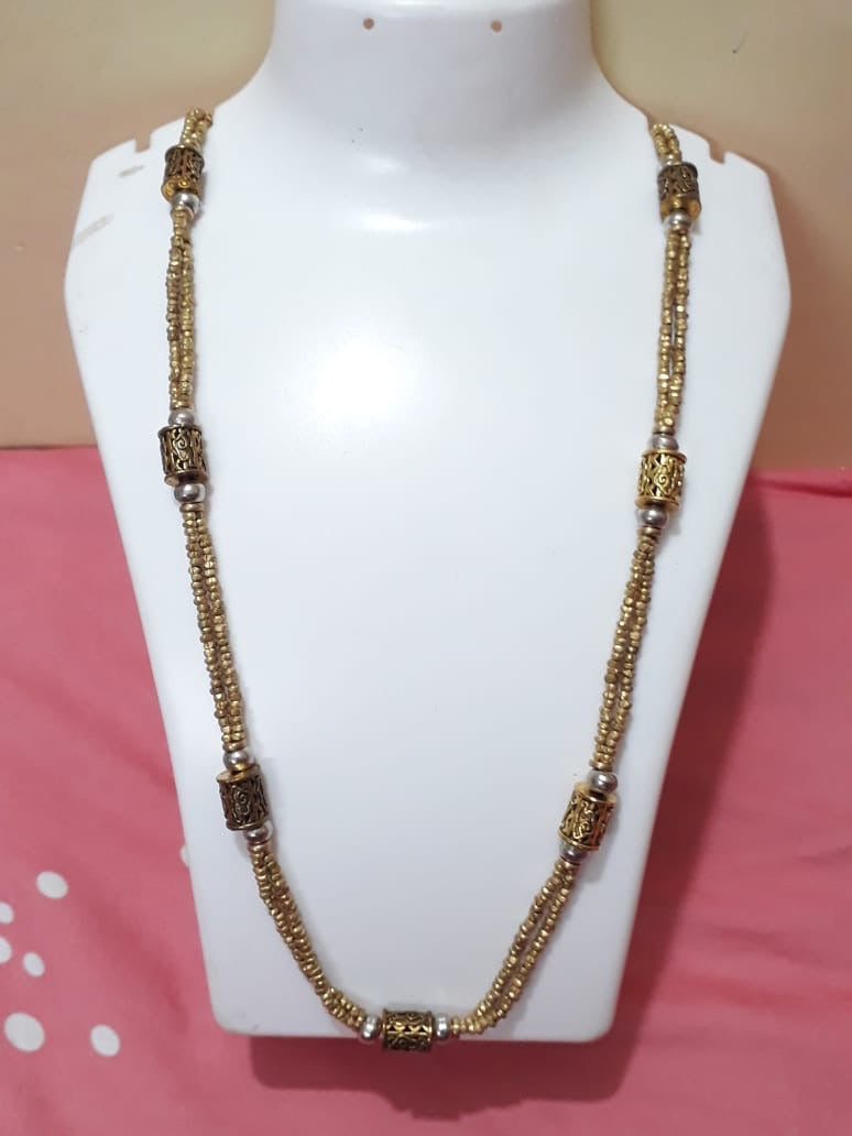 2 layers dokra brass beads with cylindrical beads - handcrafted neckpiece