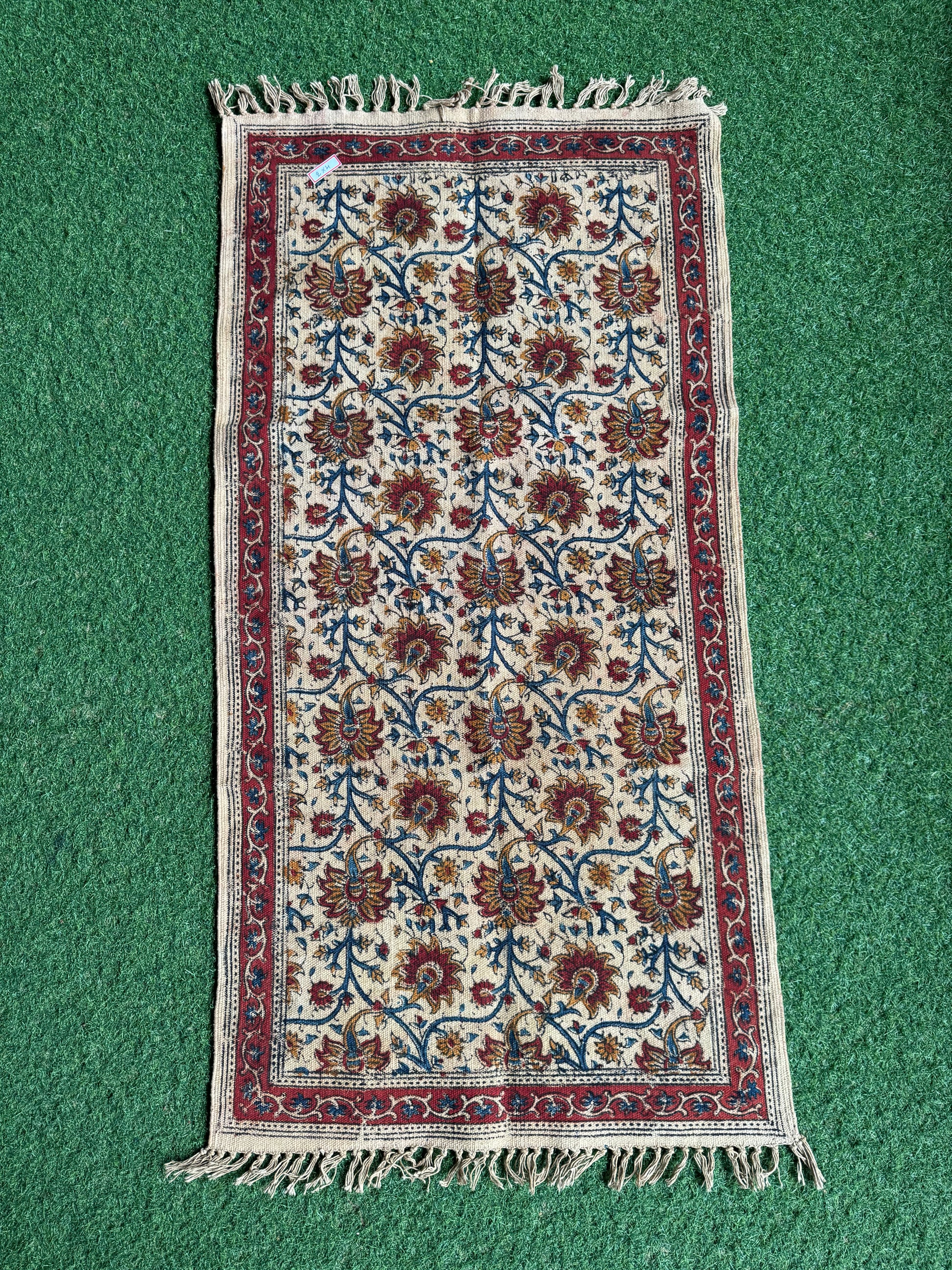 2 x 4 feet cotton Kalamkari hand block printed runner carpet / durrie