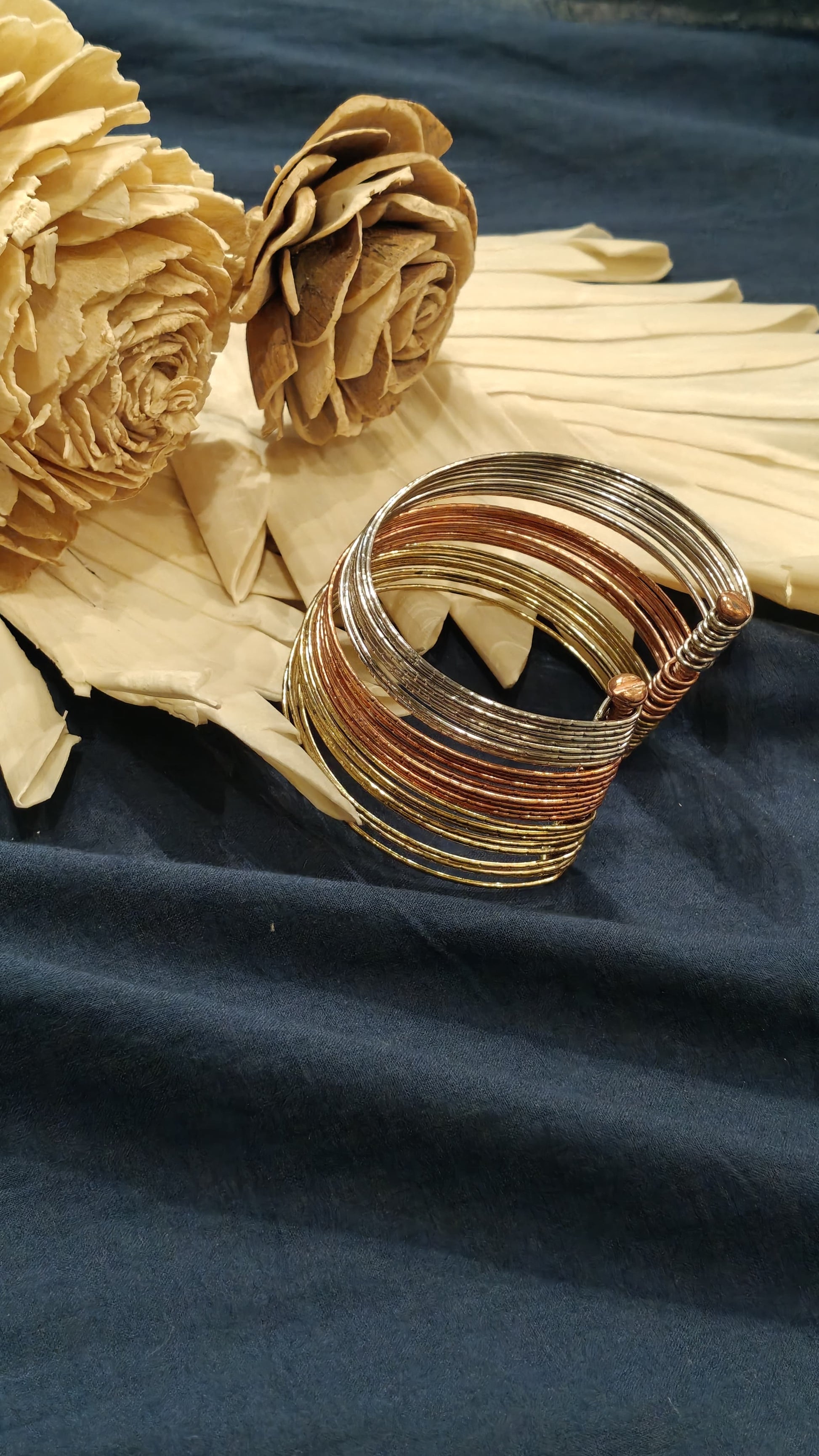 3 metallic tone brass bracelet kada - free size