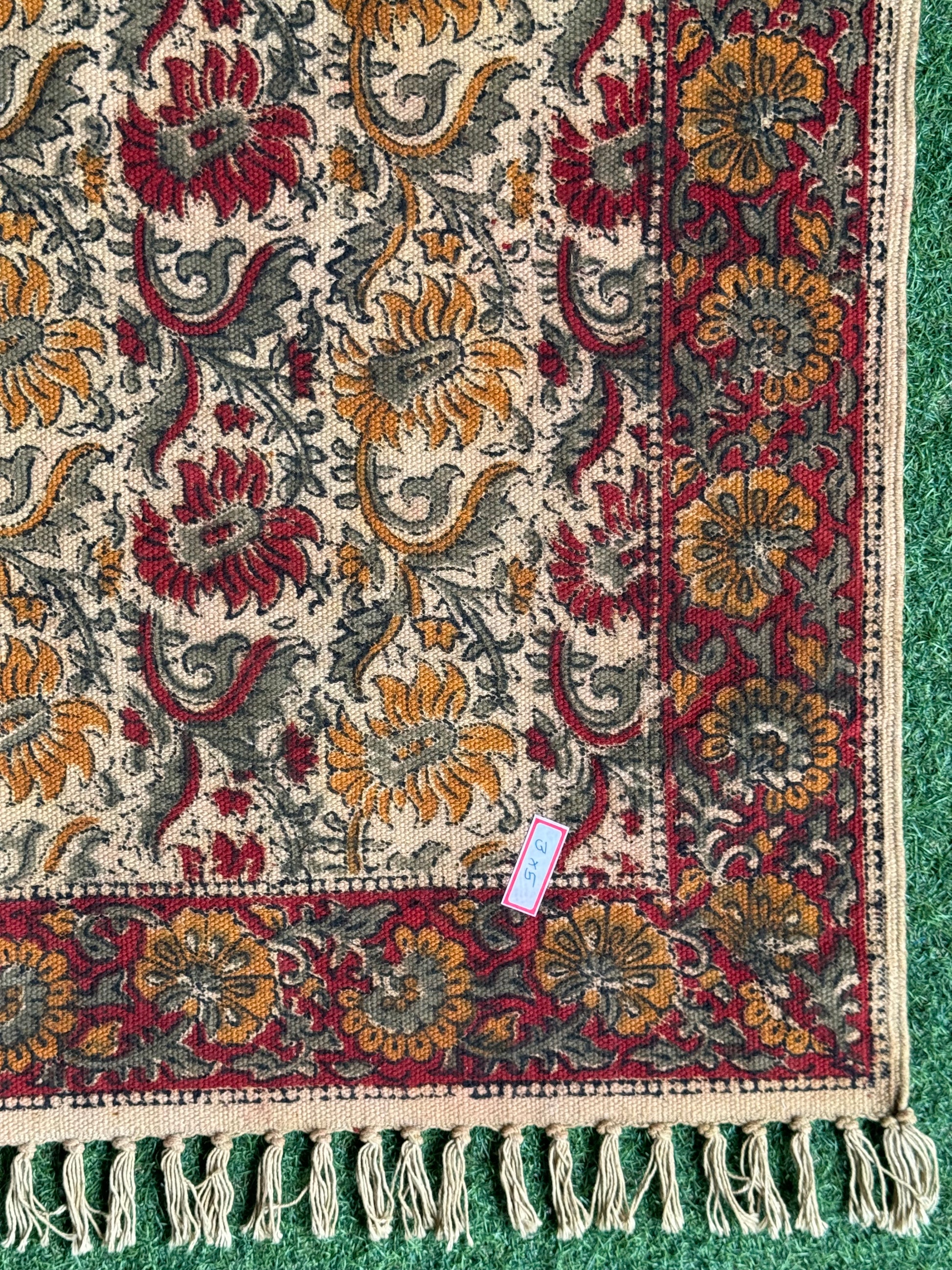 3 x 5 feet cotton Kalamkari hand block printed carpet