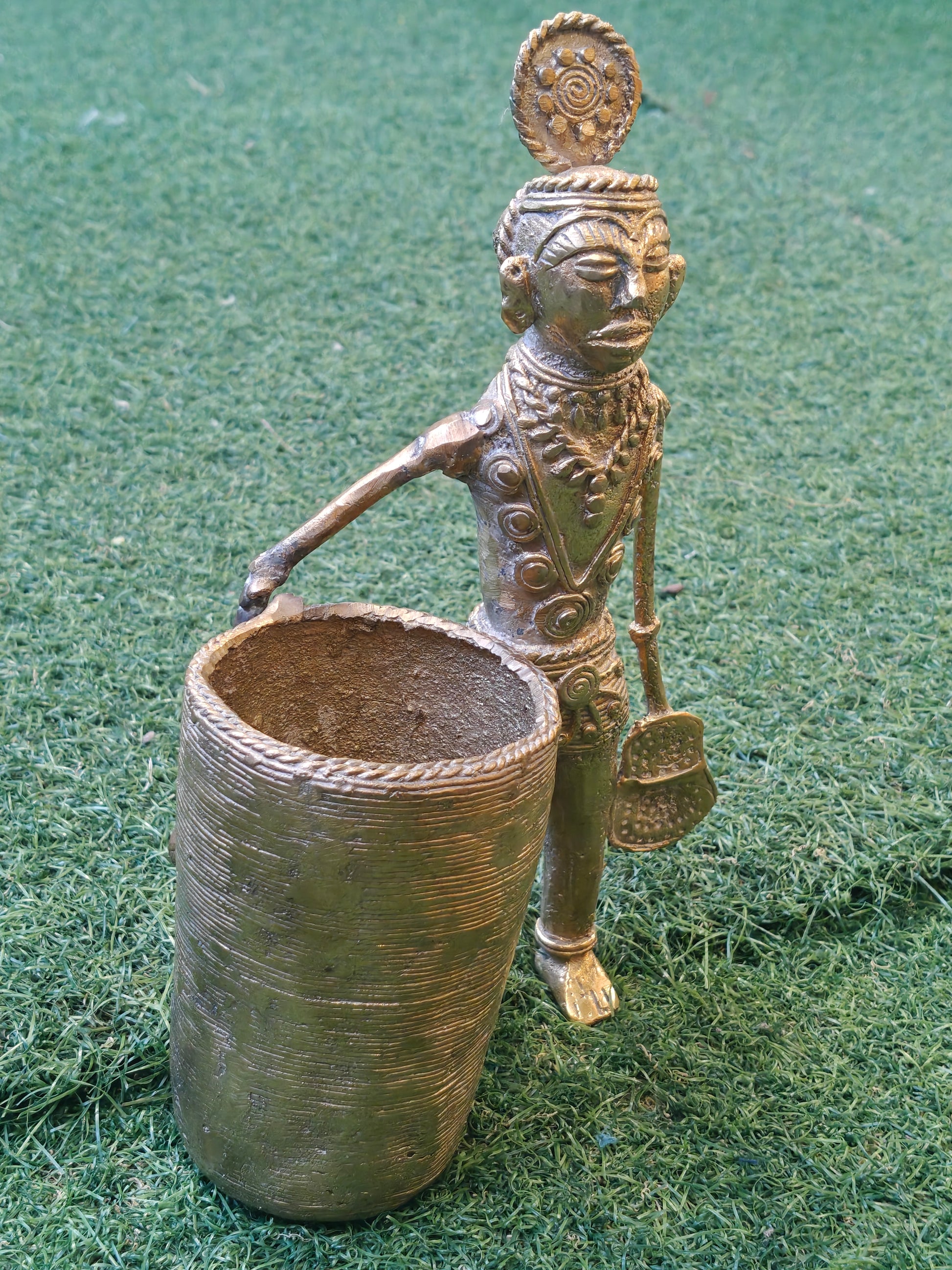 A man with a basket / pen stand / organizer - Dokra Brass handcrafted decor
