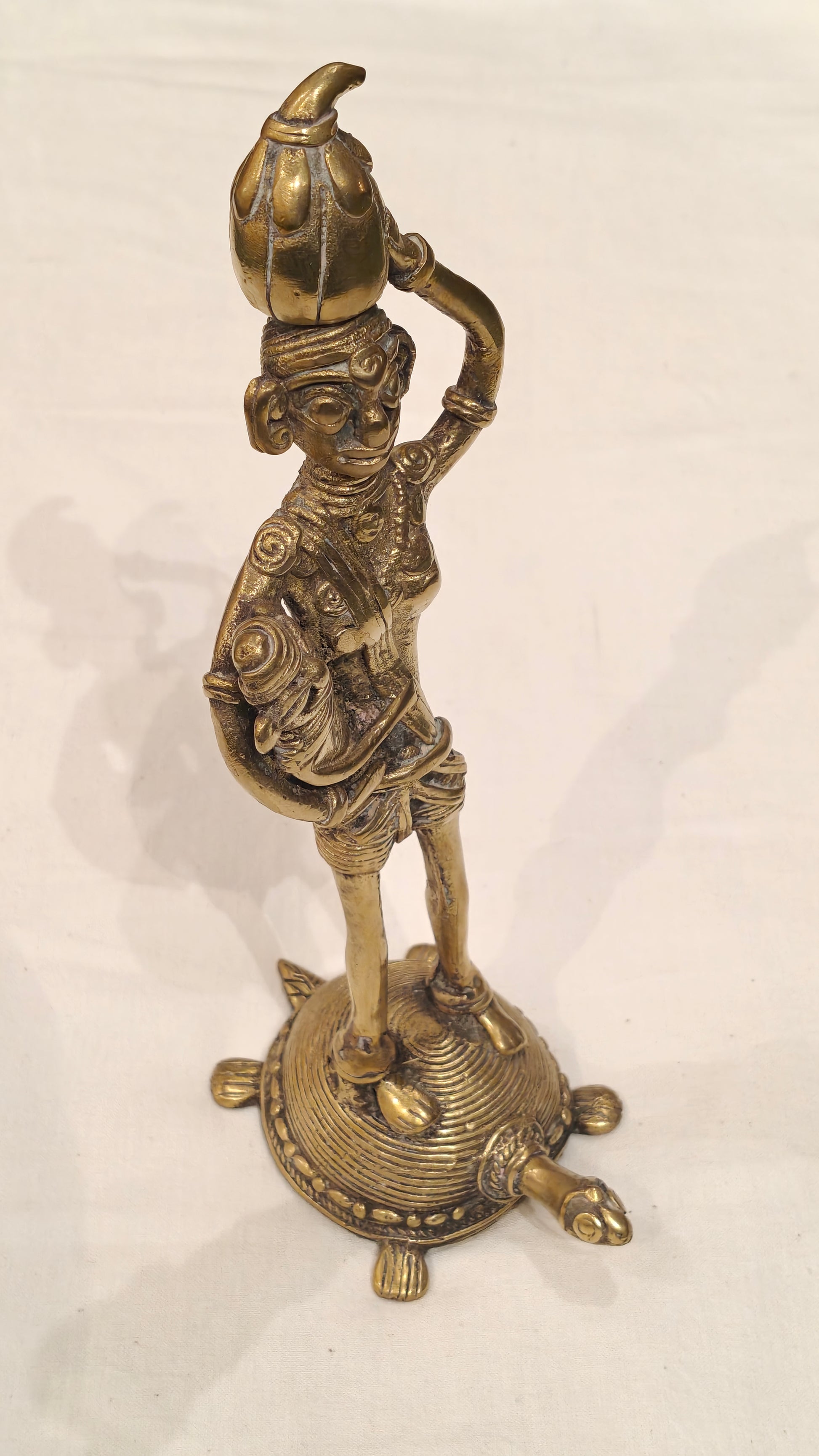 A Mother carrying her baby and standing on a tortoise - Handcrafted brass decor