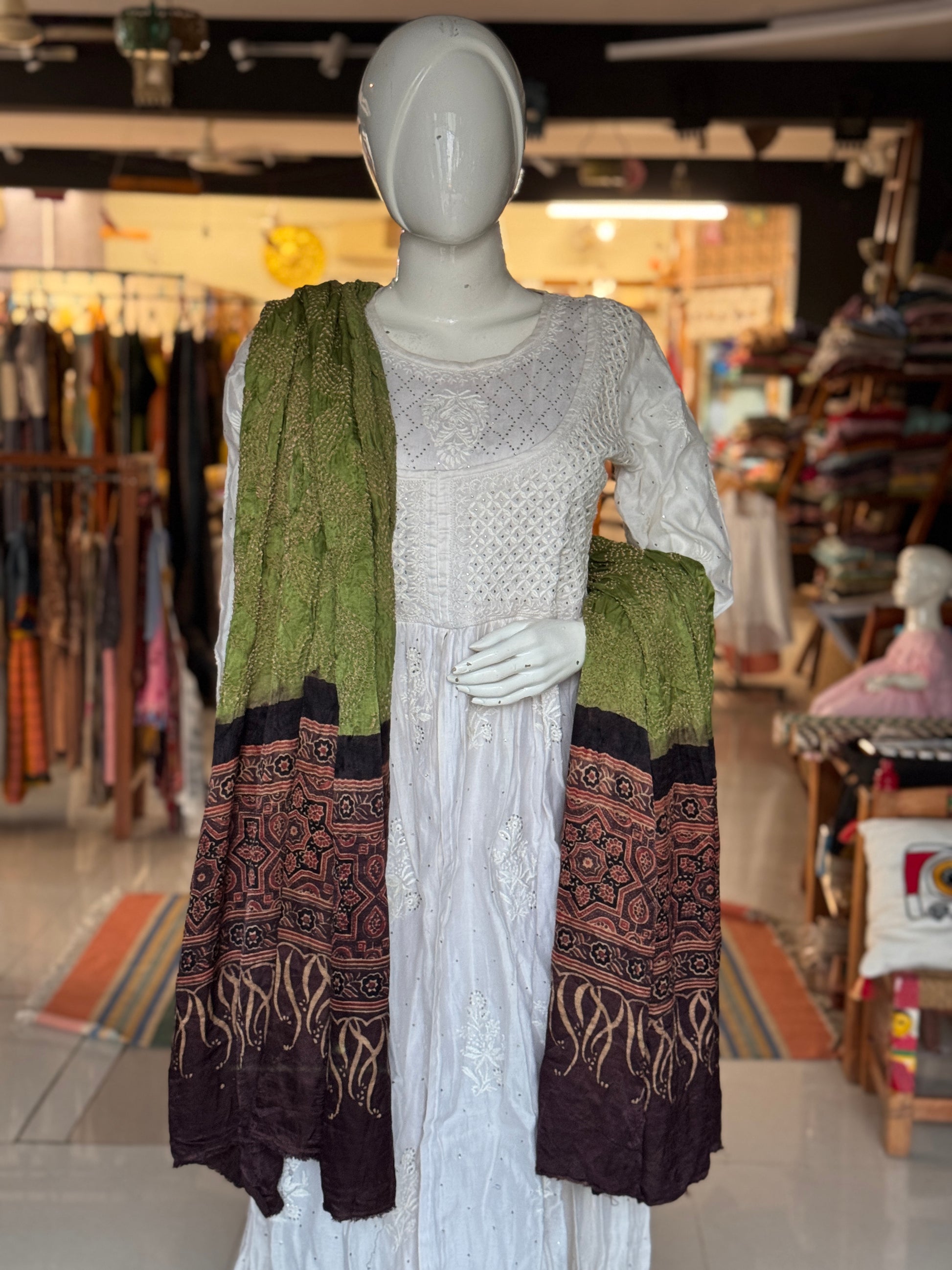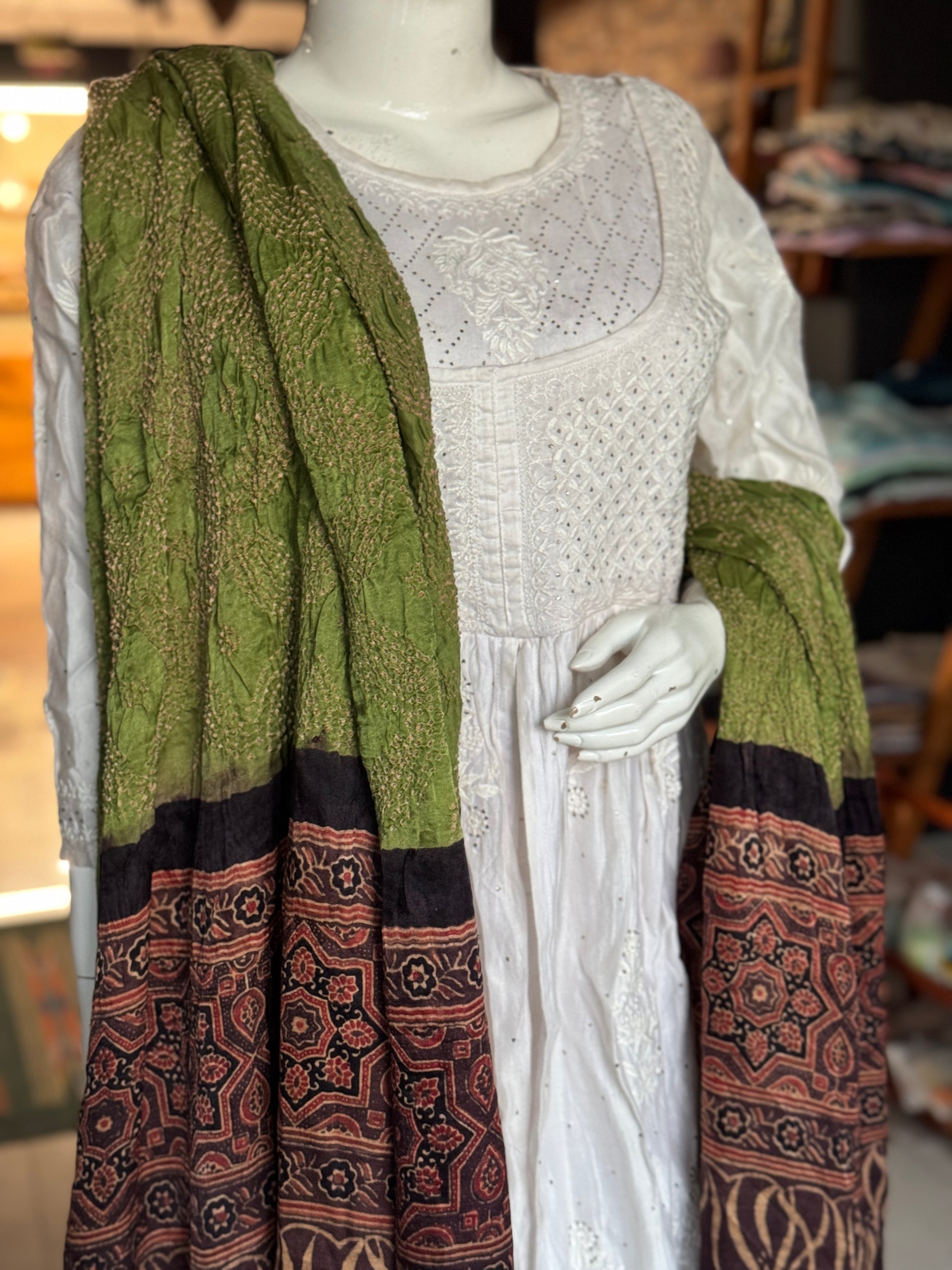 Ajrakh bandini tie dye gajji silk dupatta - fine Bandhej with hand block Ajrakh