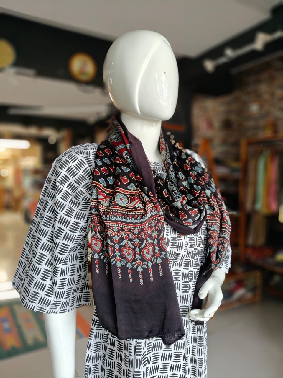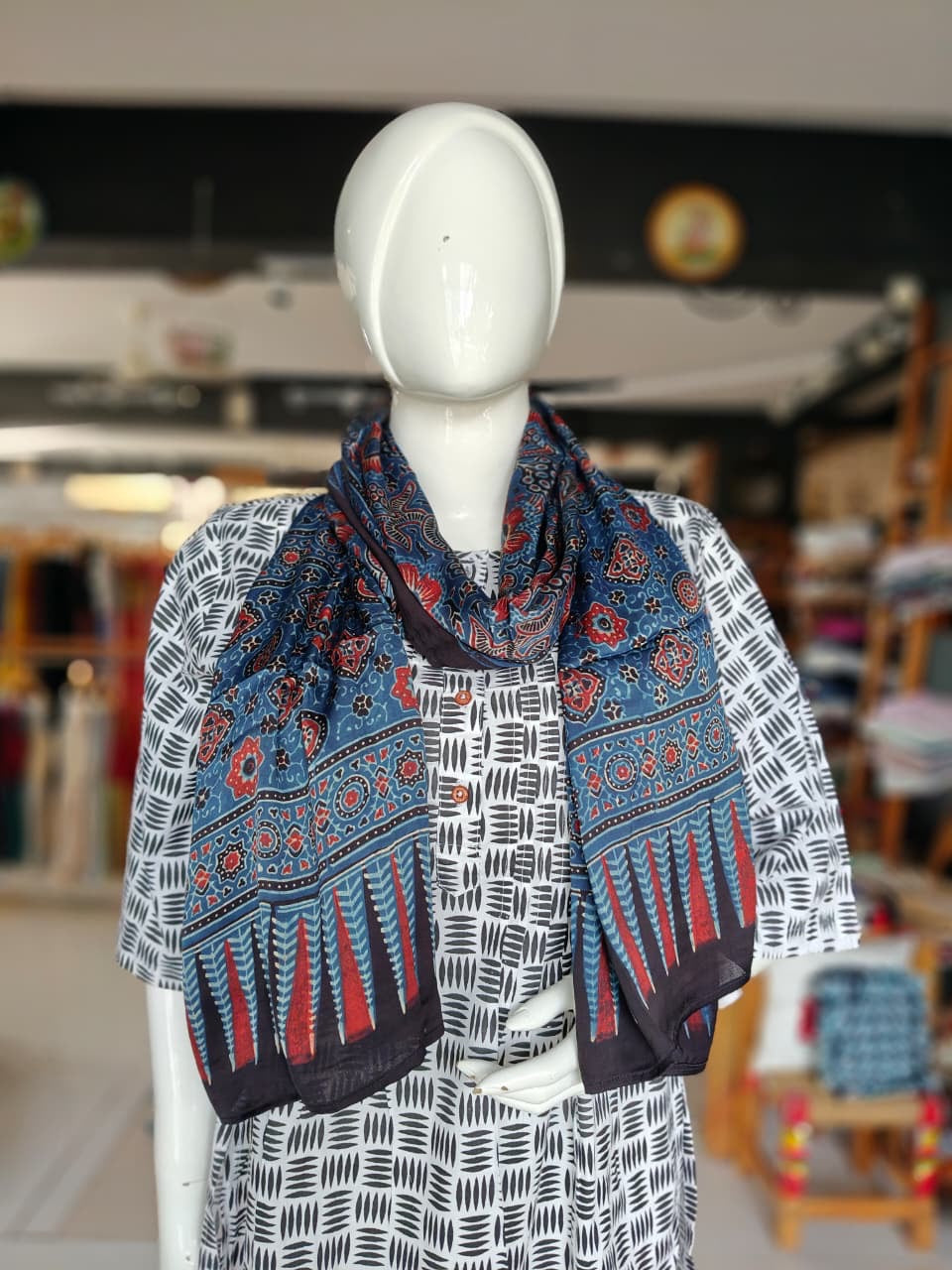Ajrakh hand block printed soft modal stole - click to see colors and designs