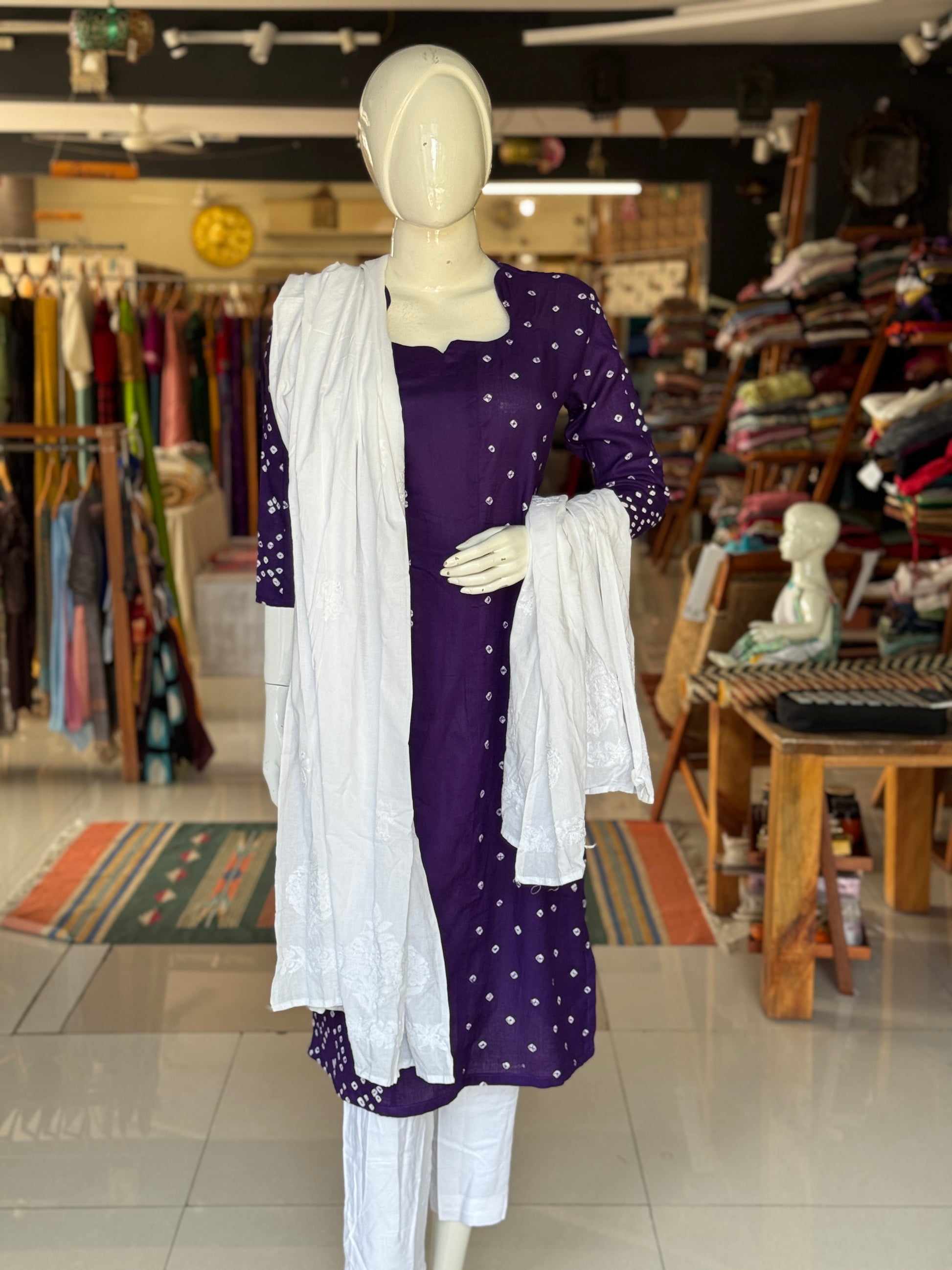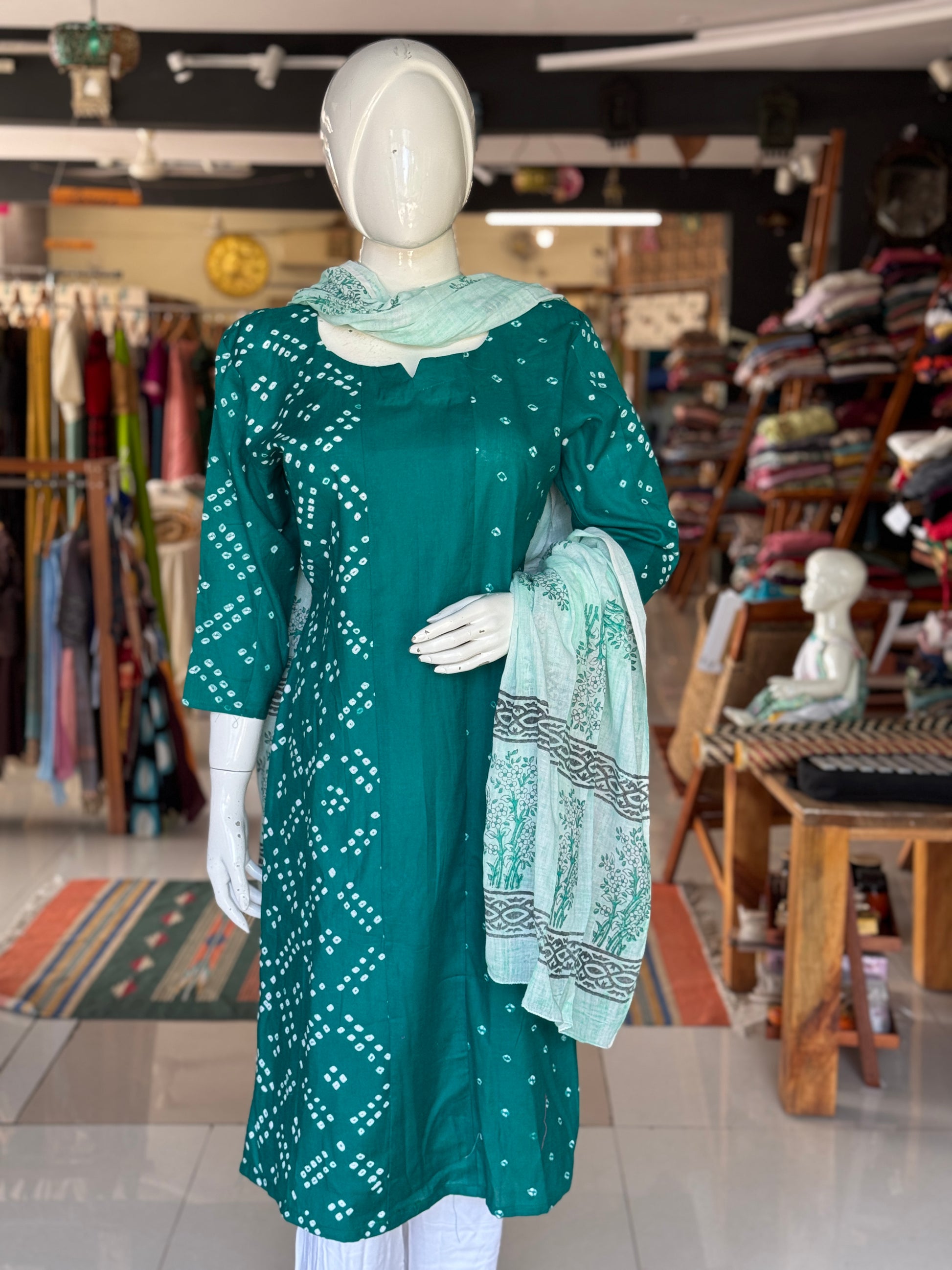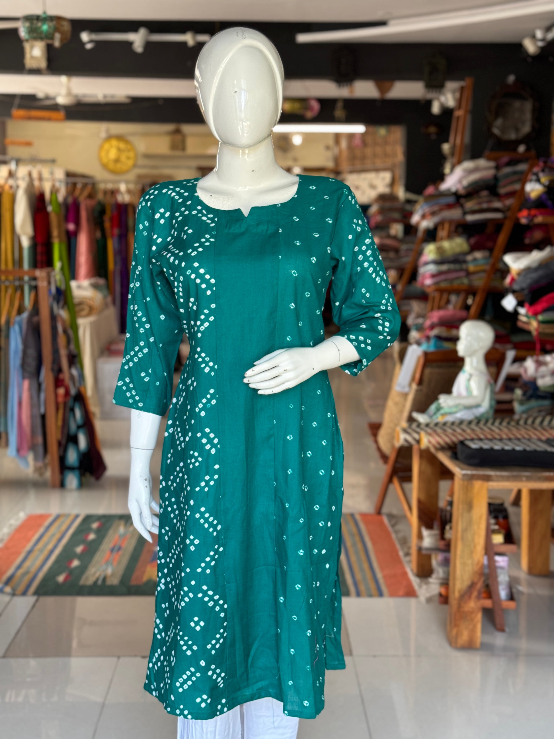 Bandini cotton straight kurti with half n half design - color options available