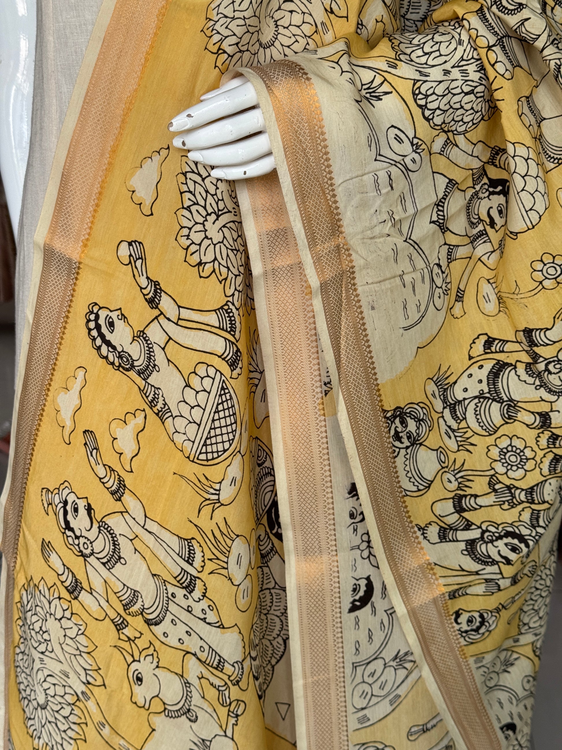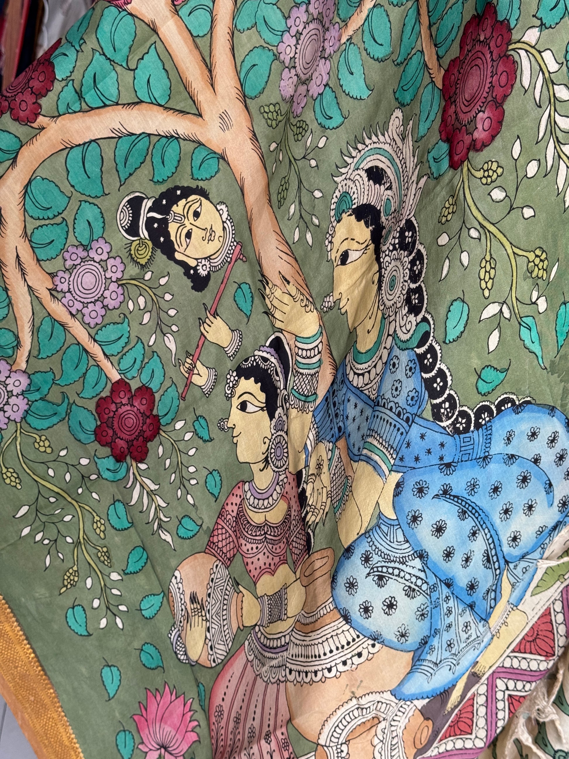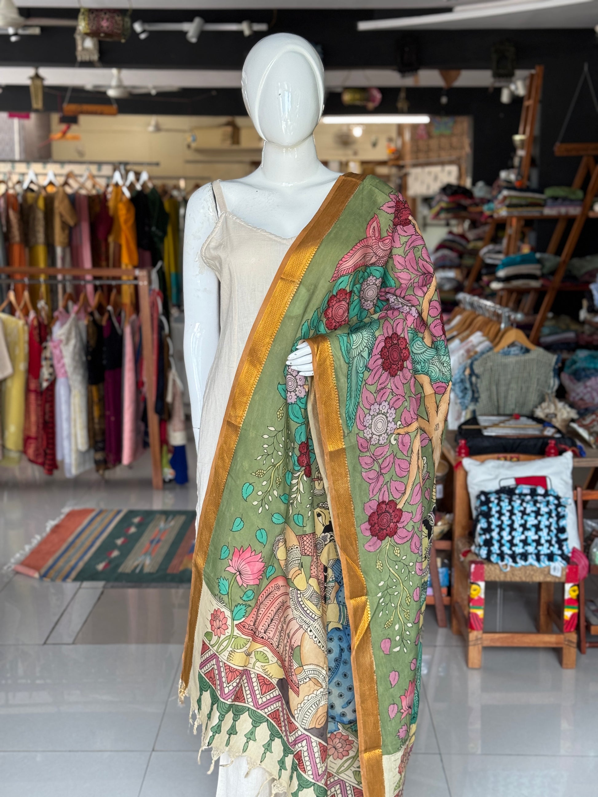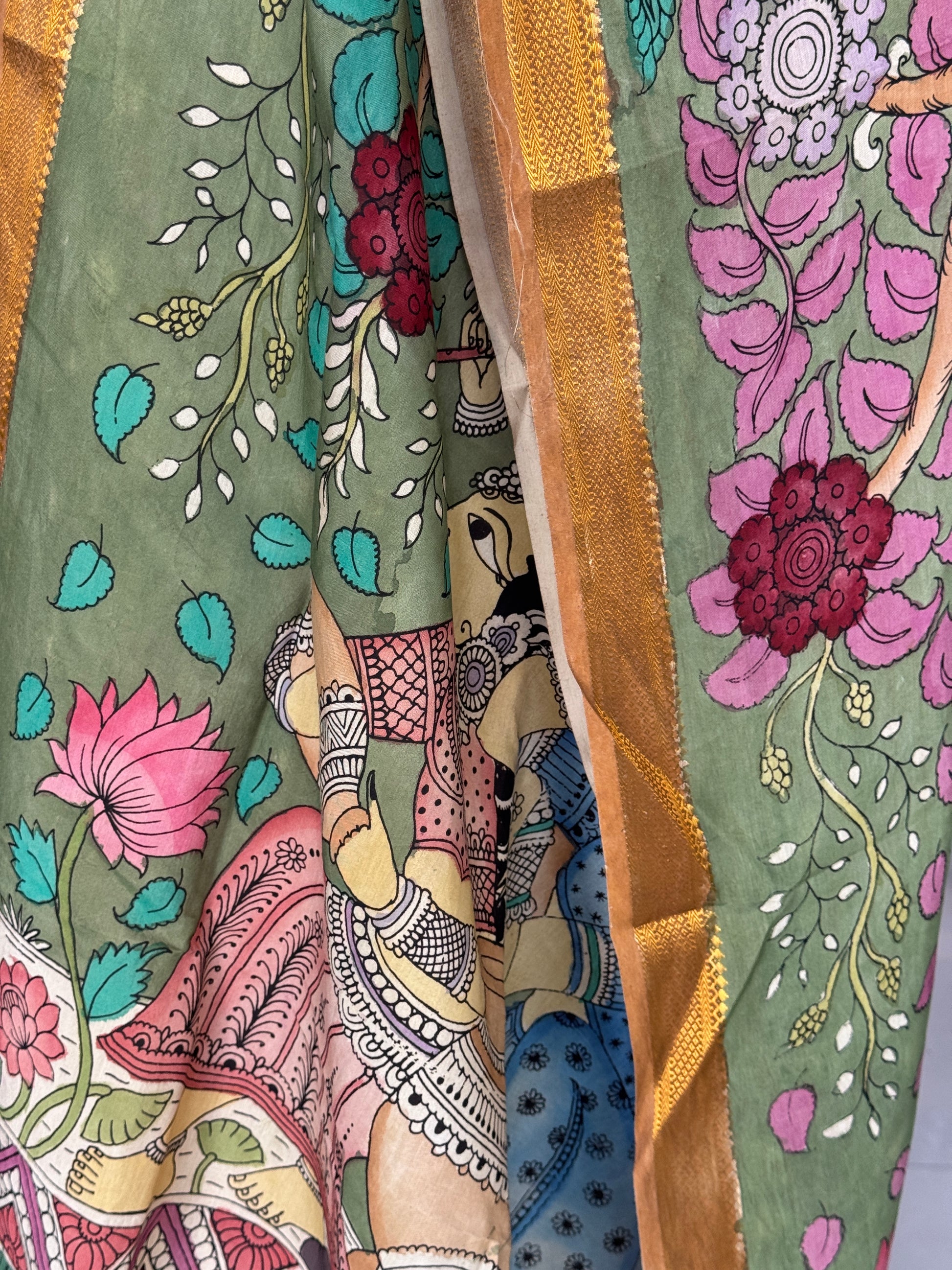 Bangalore Silk hand painted floral pen Kalamkari dupatta