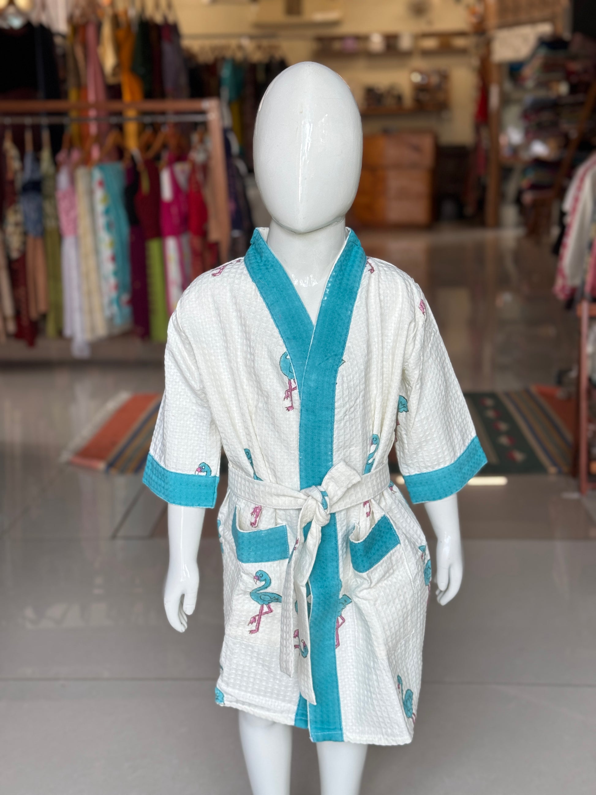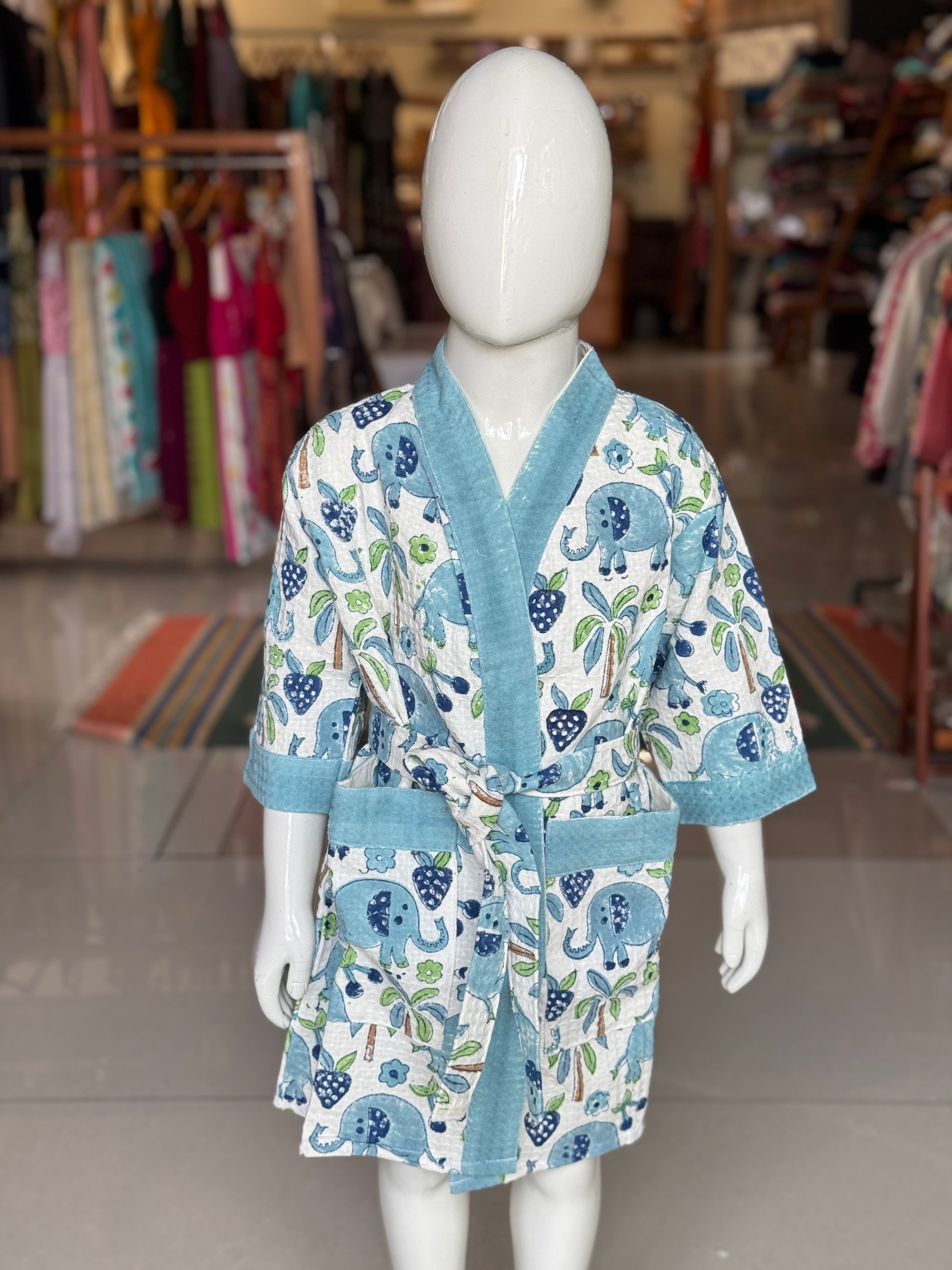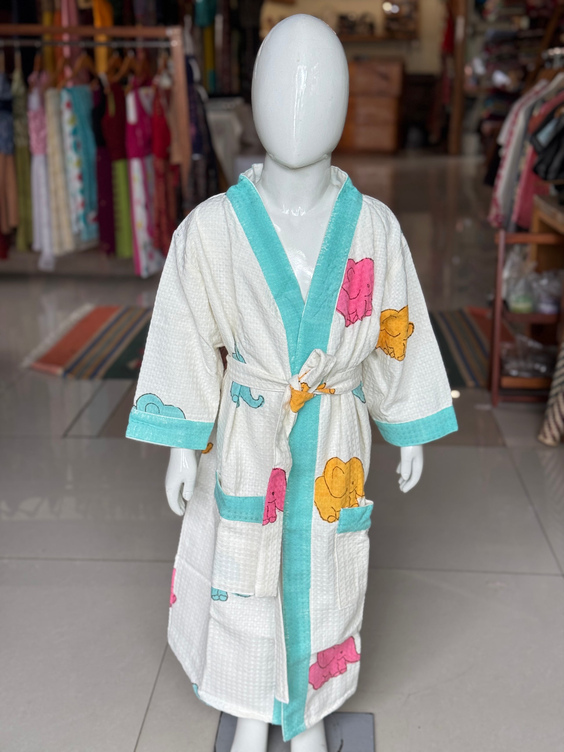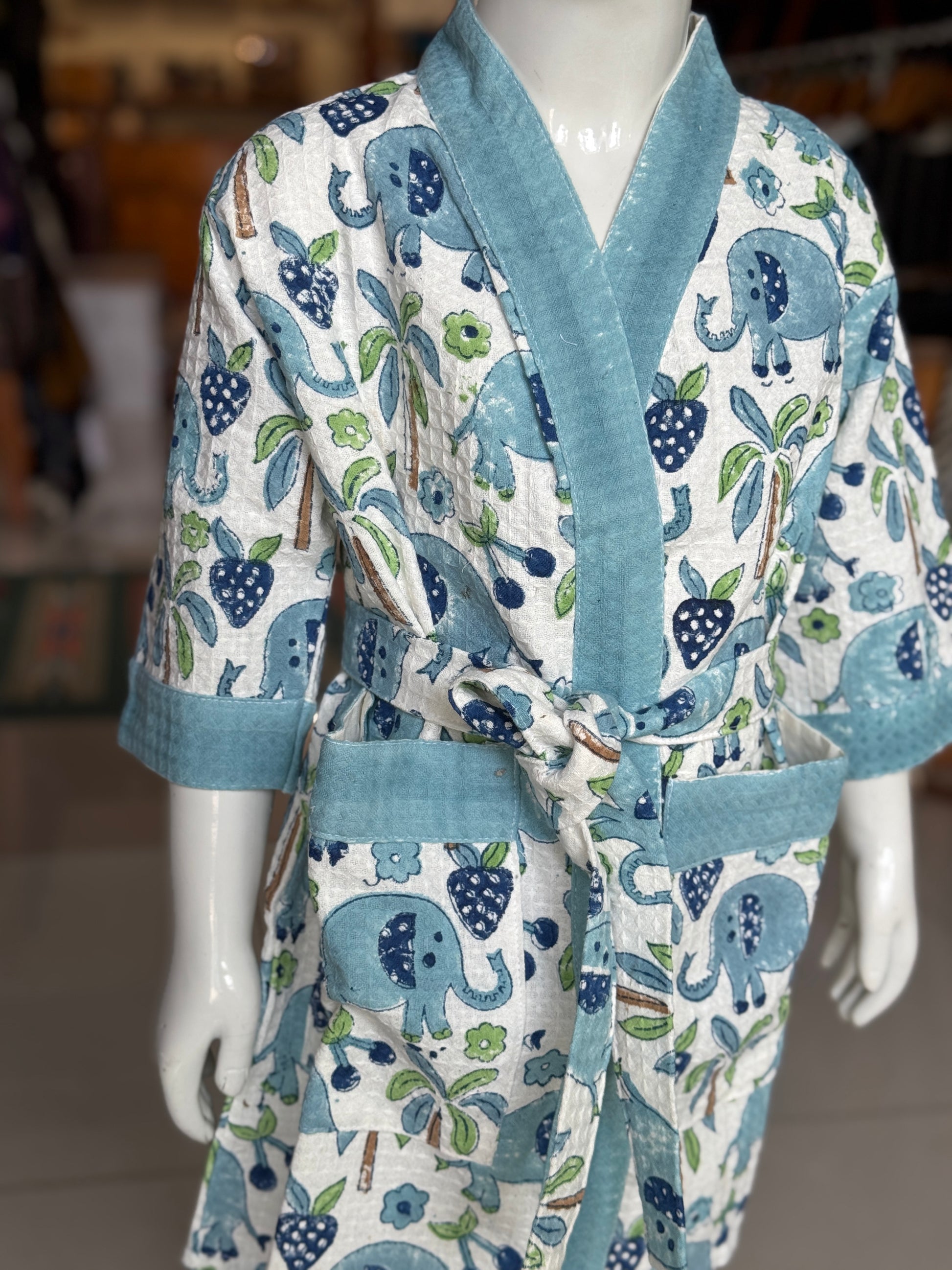 Bath robe / swim suit cover up for children - hand block printed waffle cotton - multiple prints and sizes