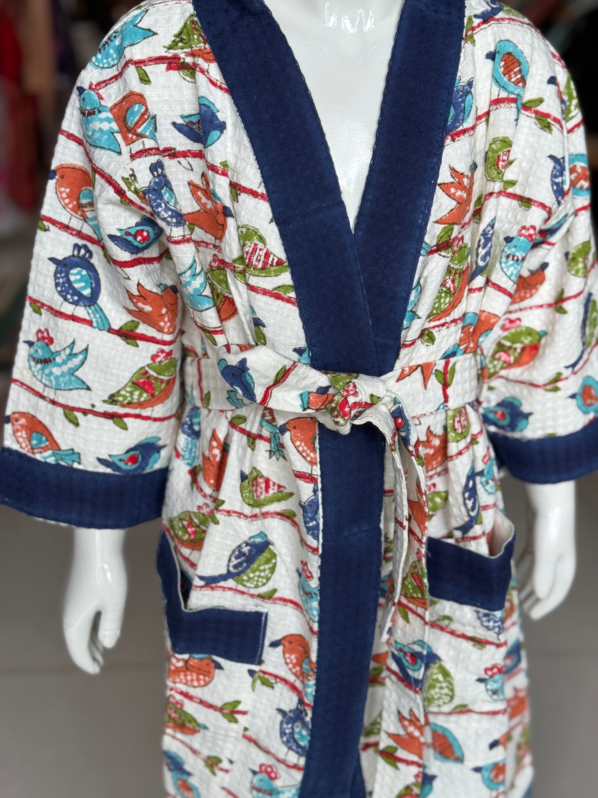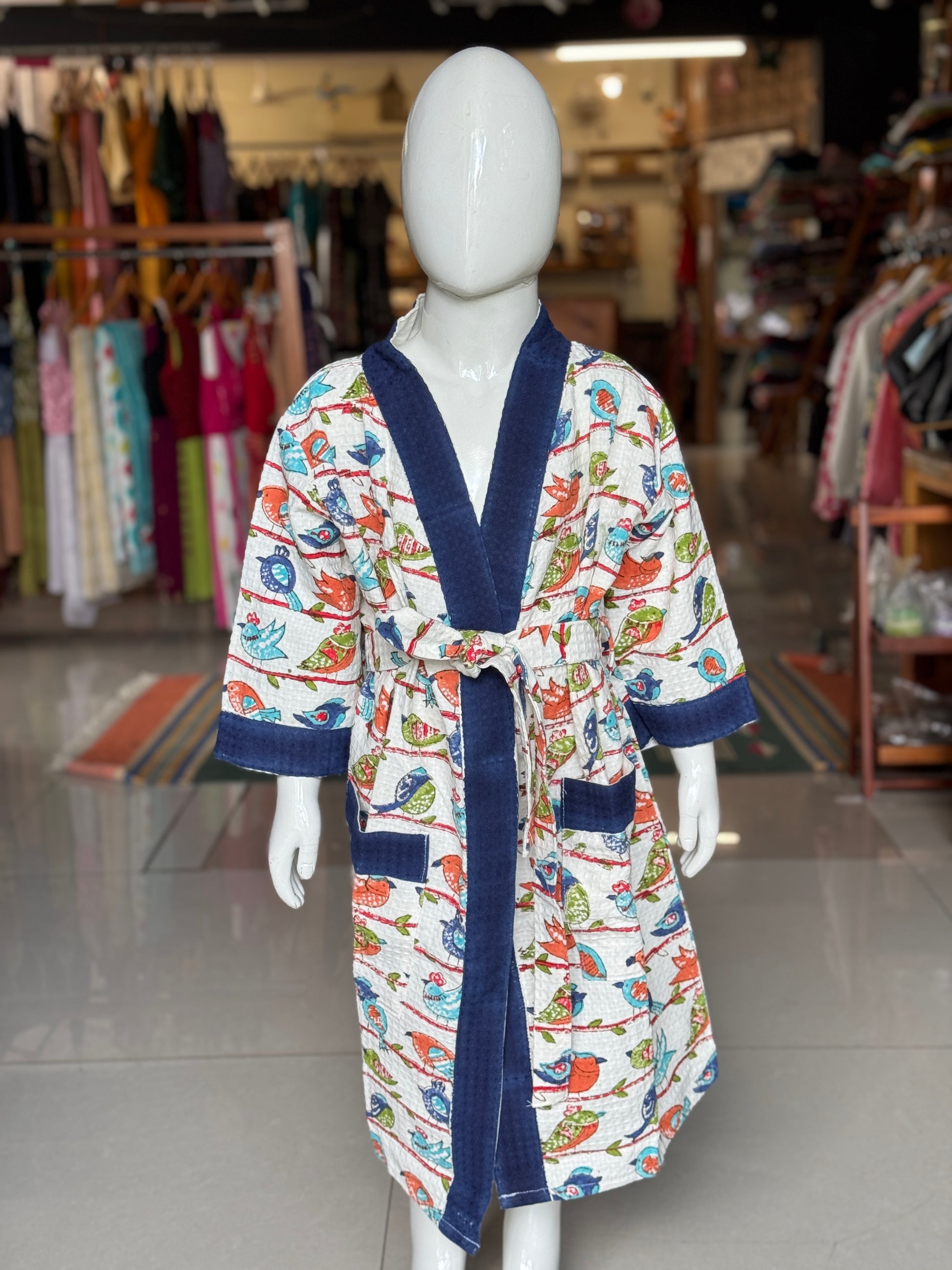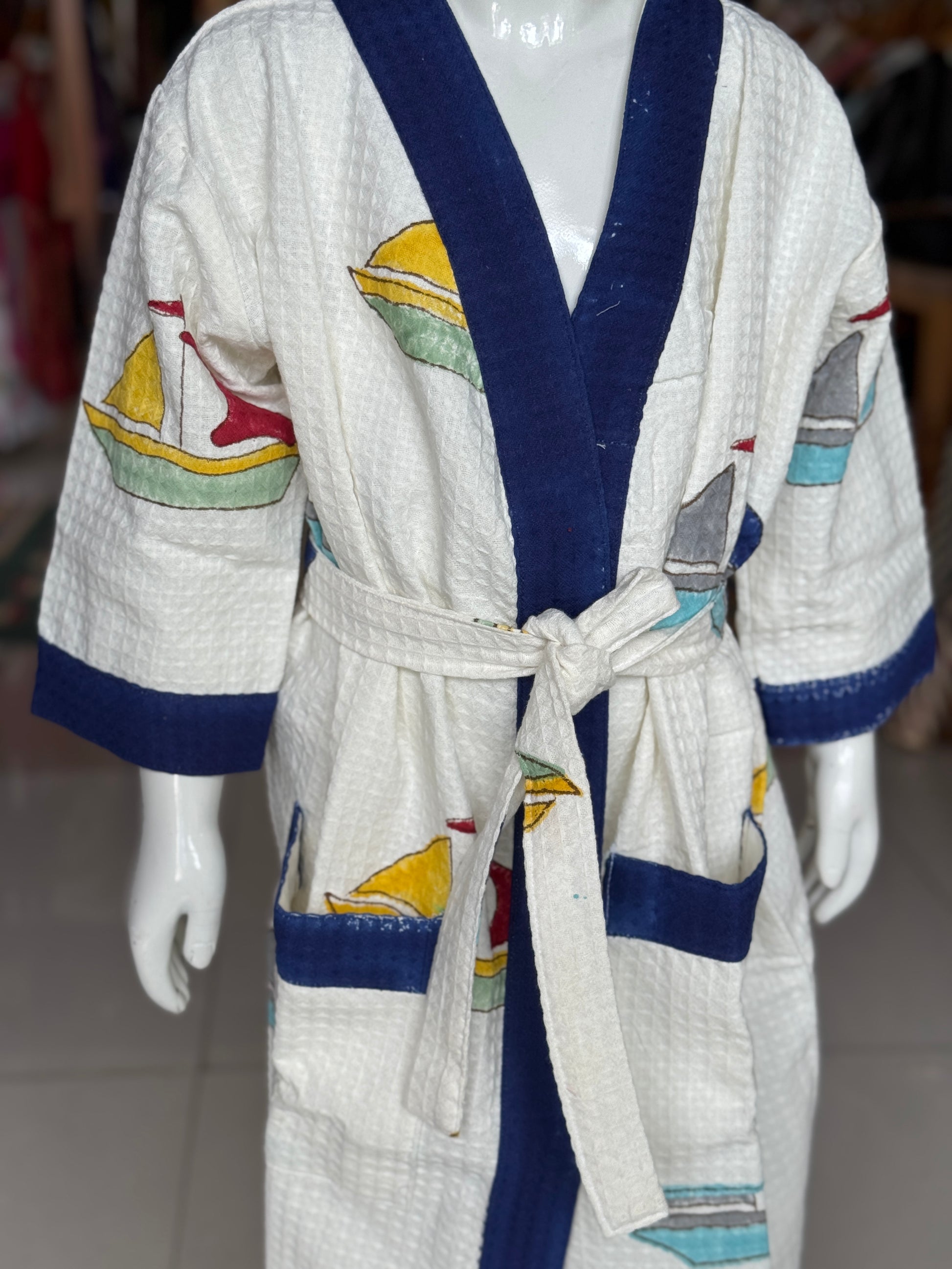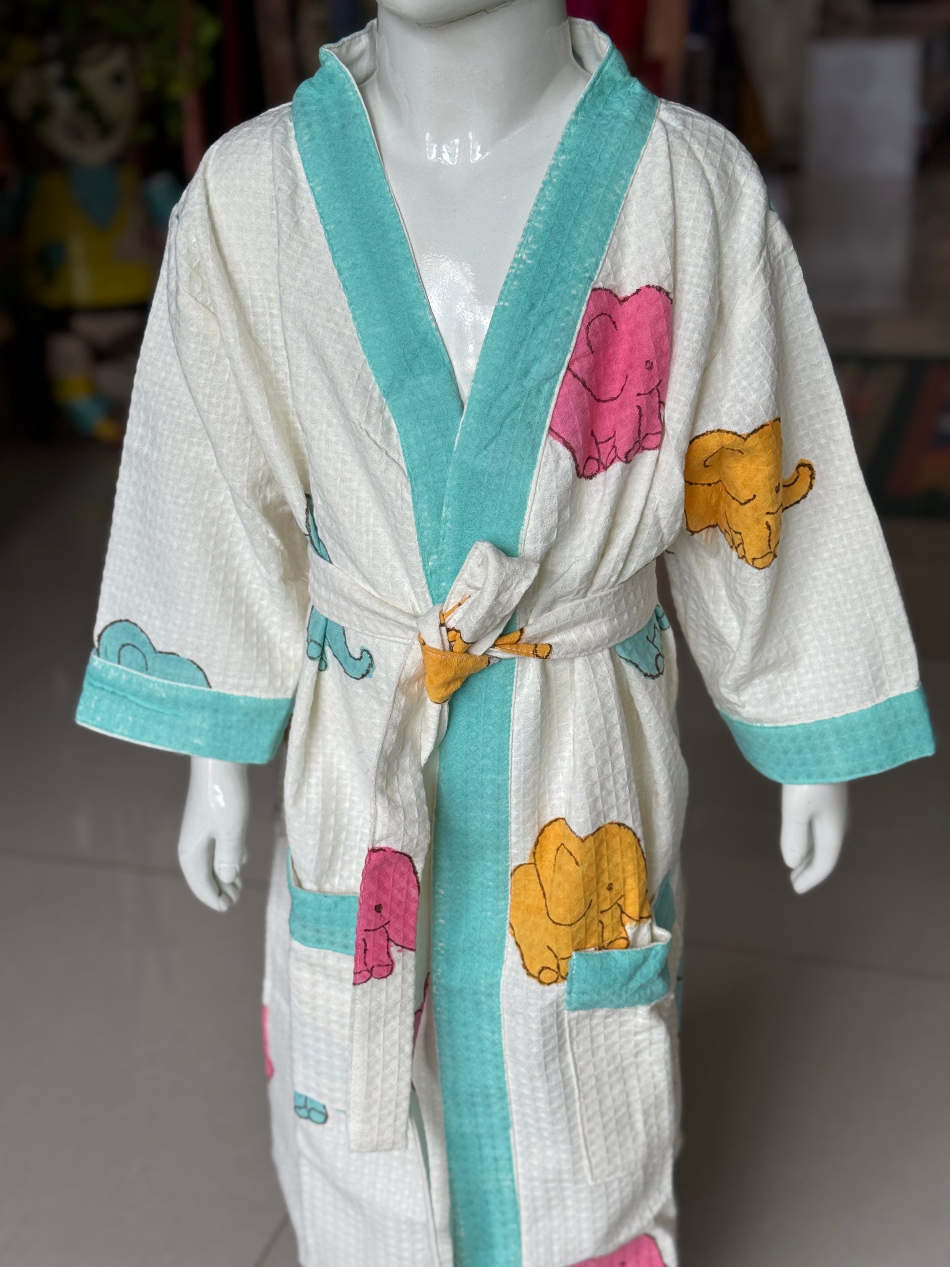 Bath robe / swim suit cover up for children - hand block printed waffle cotton - multiple prints and sizes