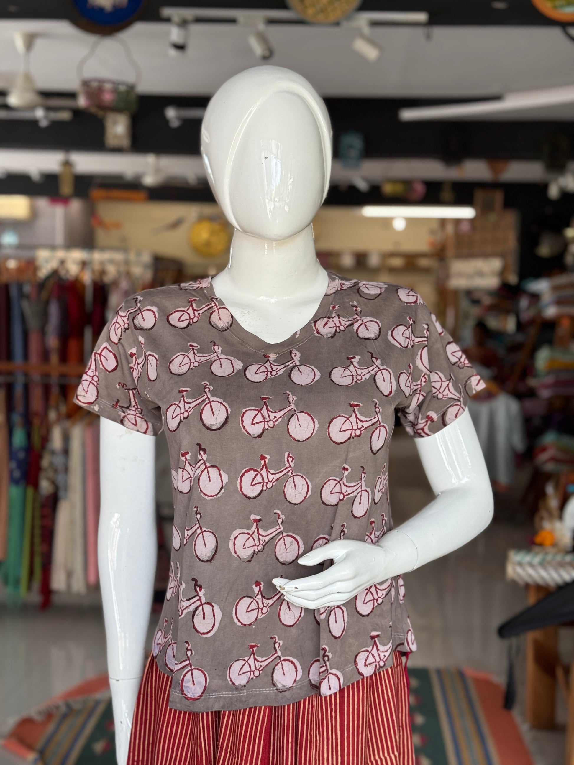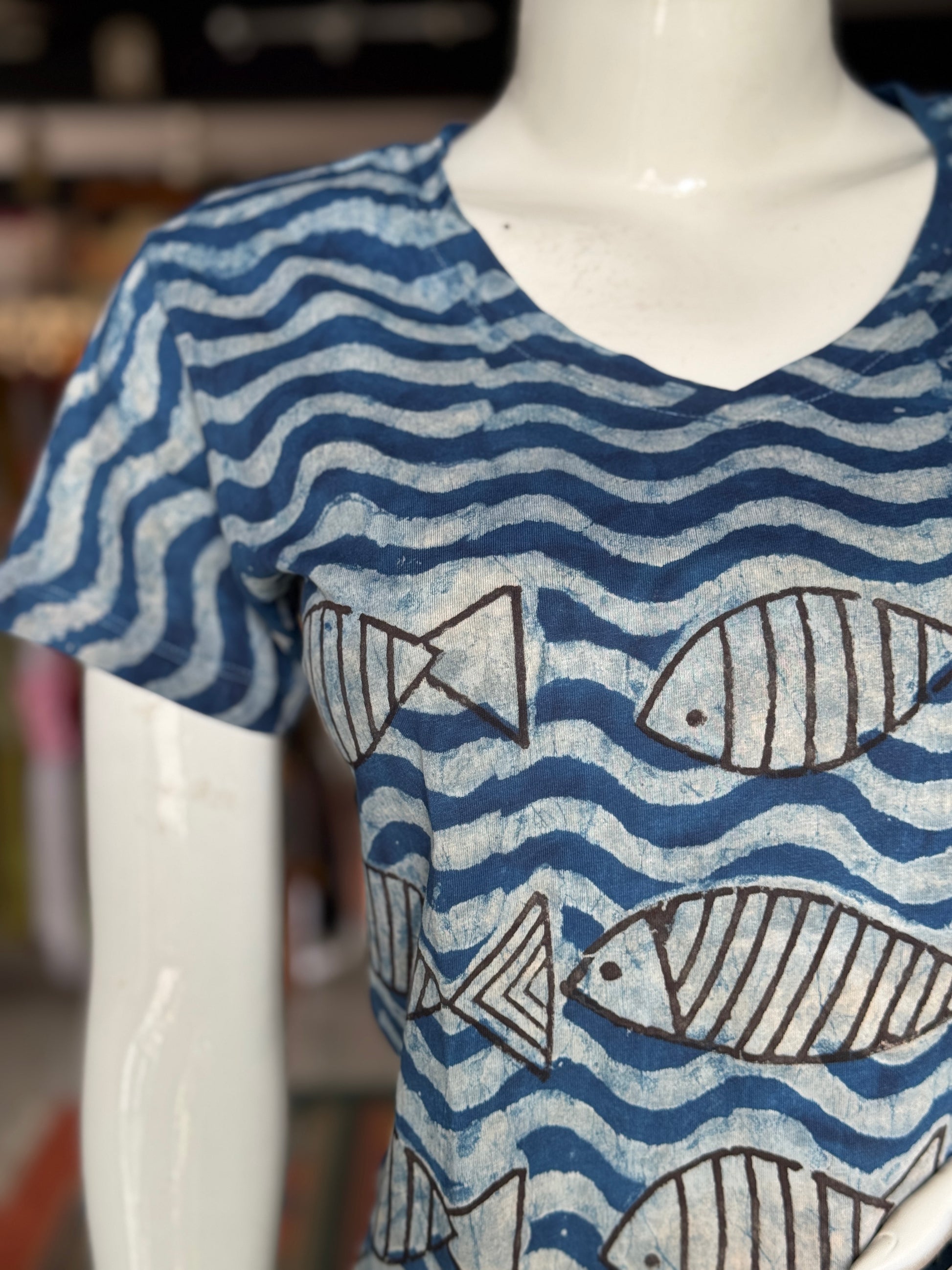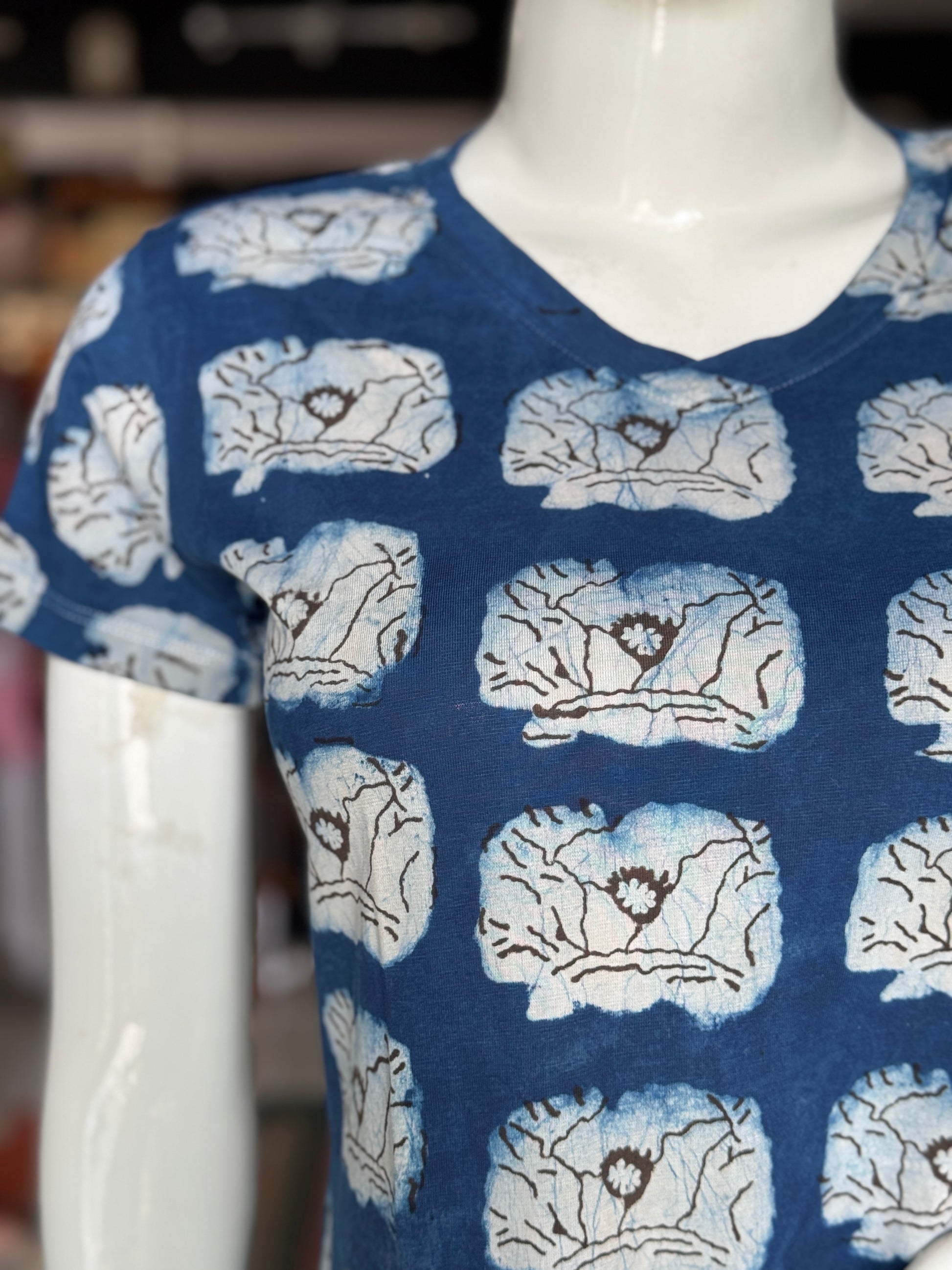 Beautiful cut womens tees - cotton, hand block printed, natural dyed tshirt for women - multiple designs and sizes