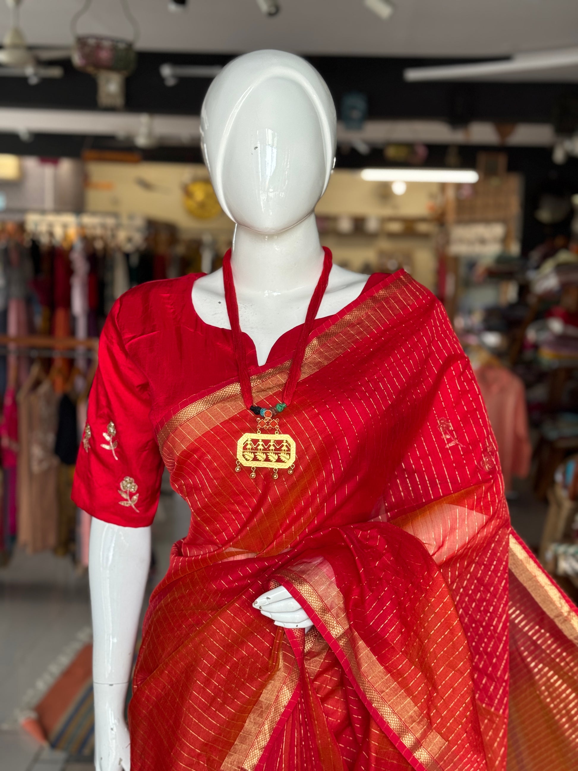 Birds and flowers hand embroidered on back and sleeves red silk blouse