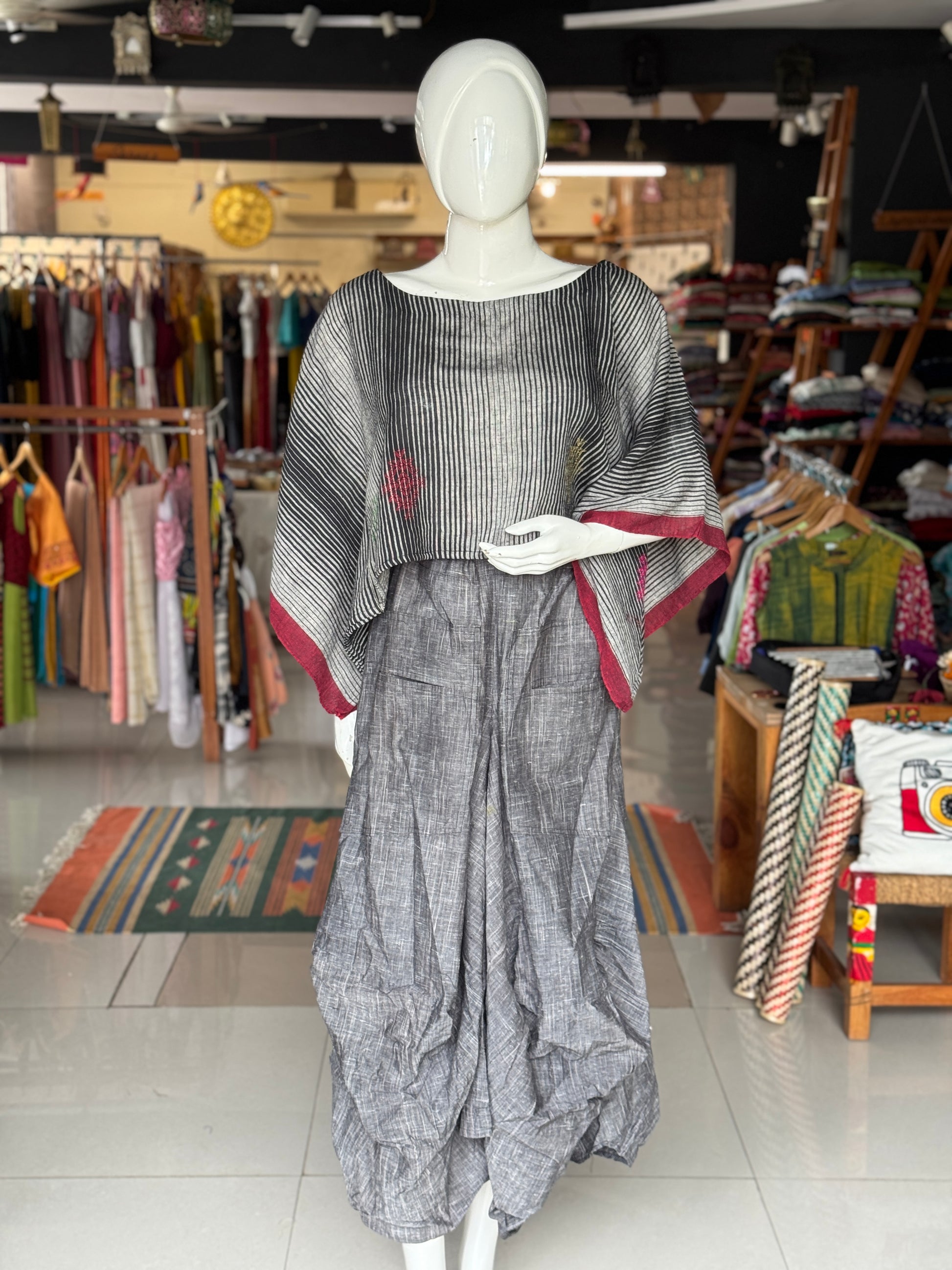 Black and grey handwoven kala cotton kaftan crop top / blouse