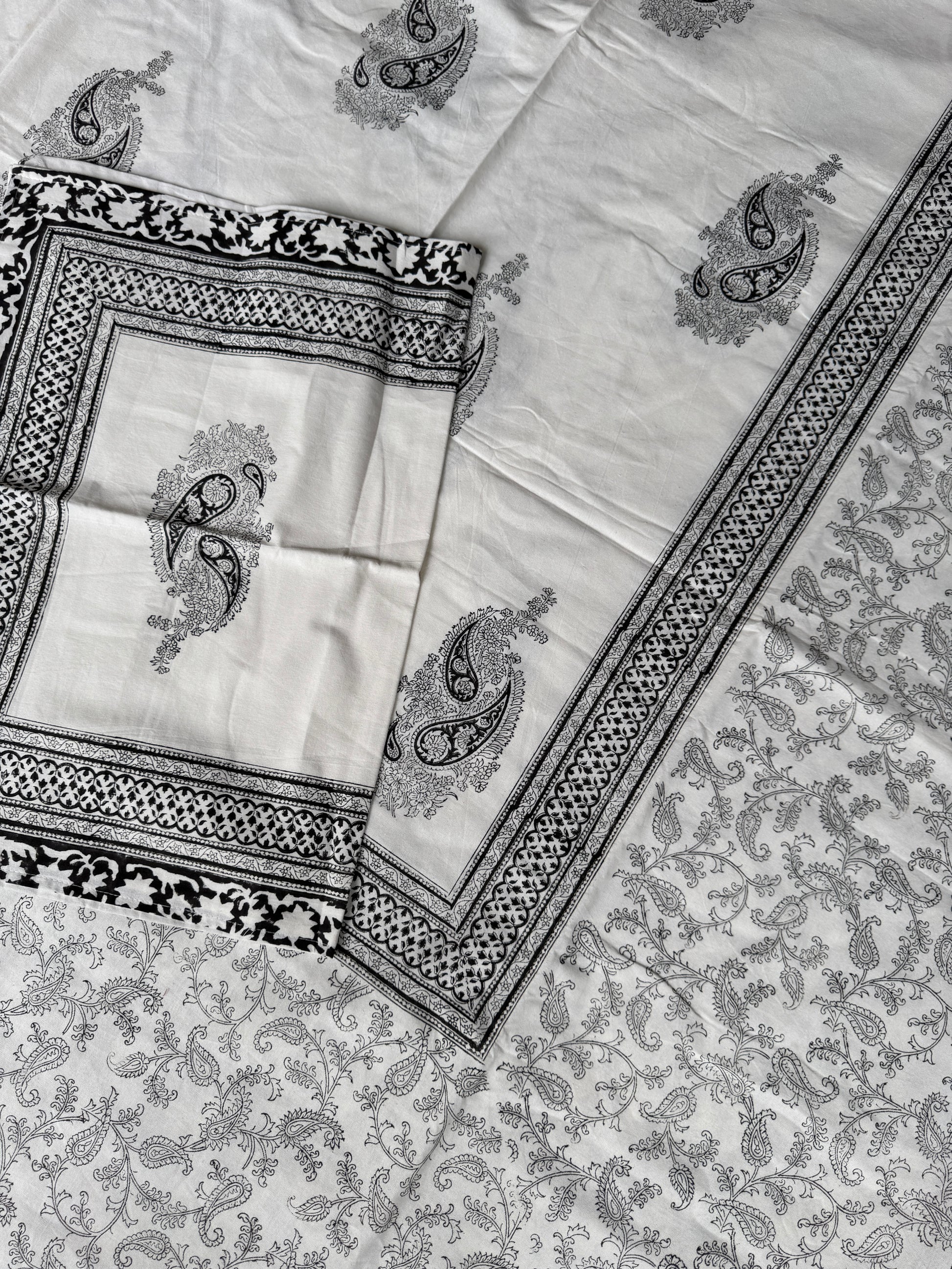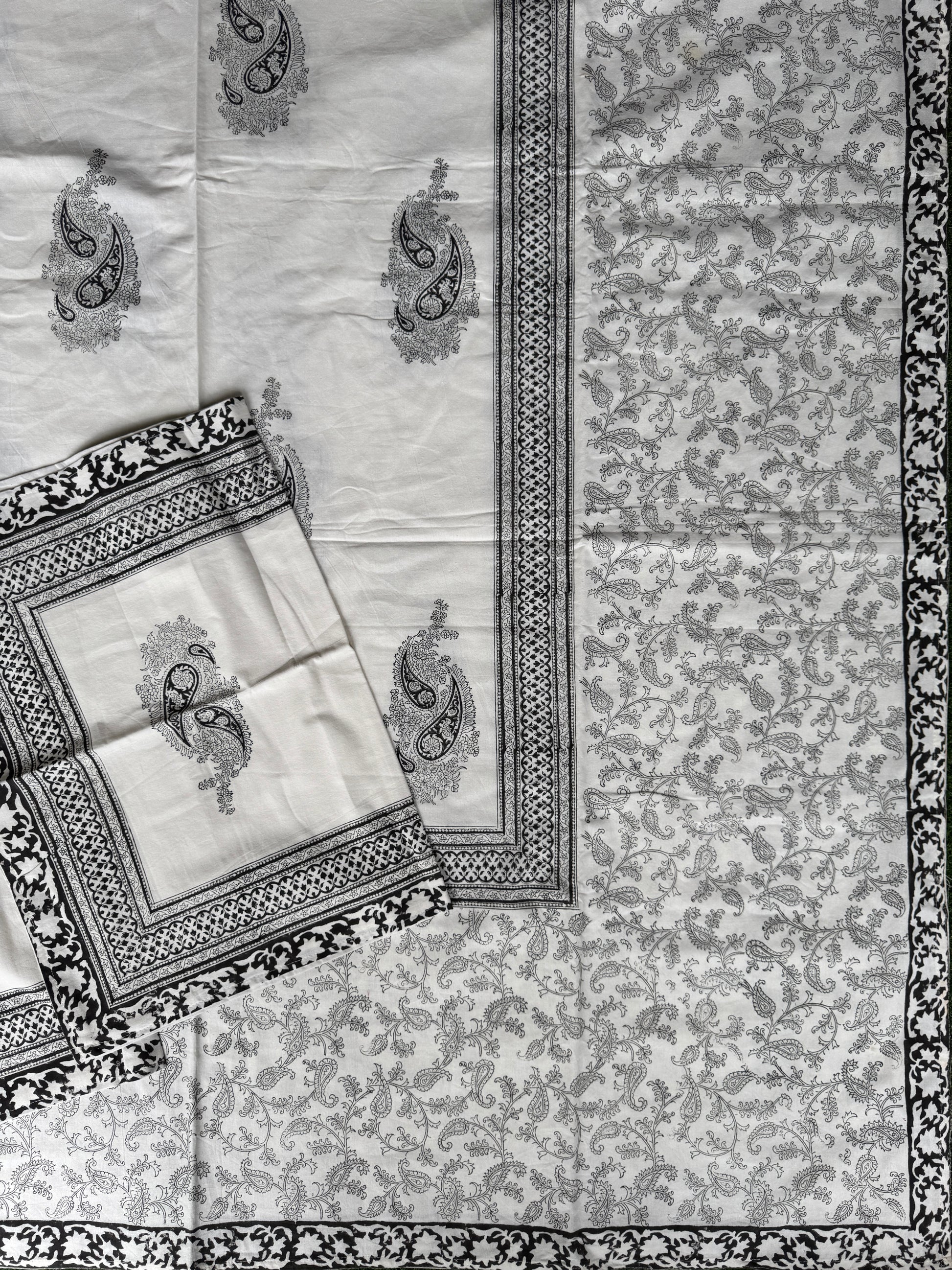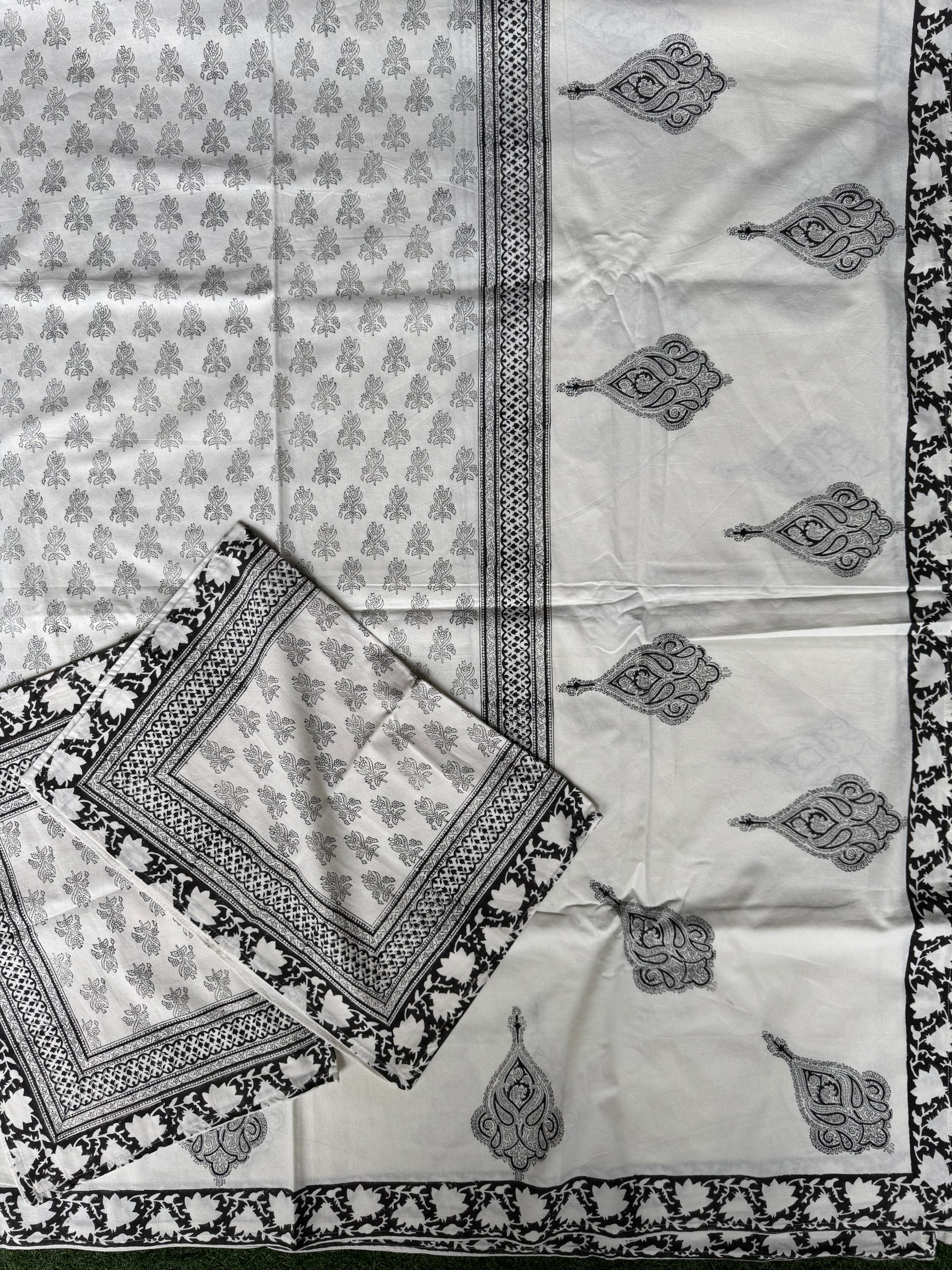 Black and white fine brass hand block prints on white base - pure cotton super king 108 x 108 inches size bedsheet - multiple designs available
