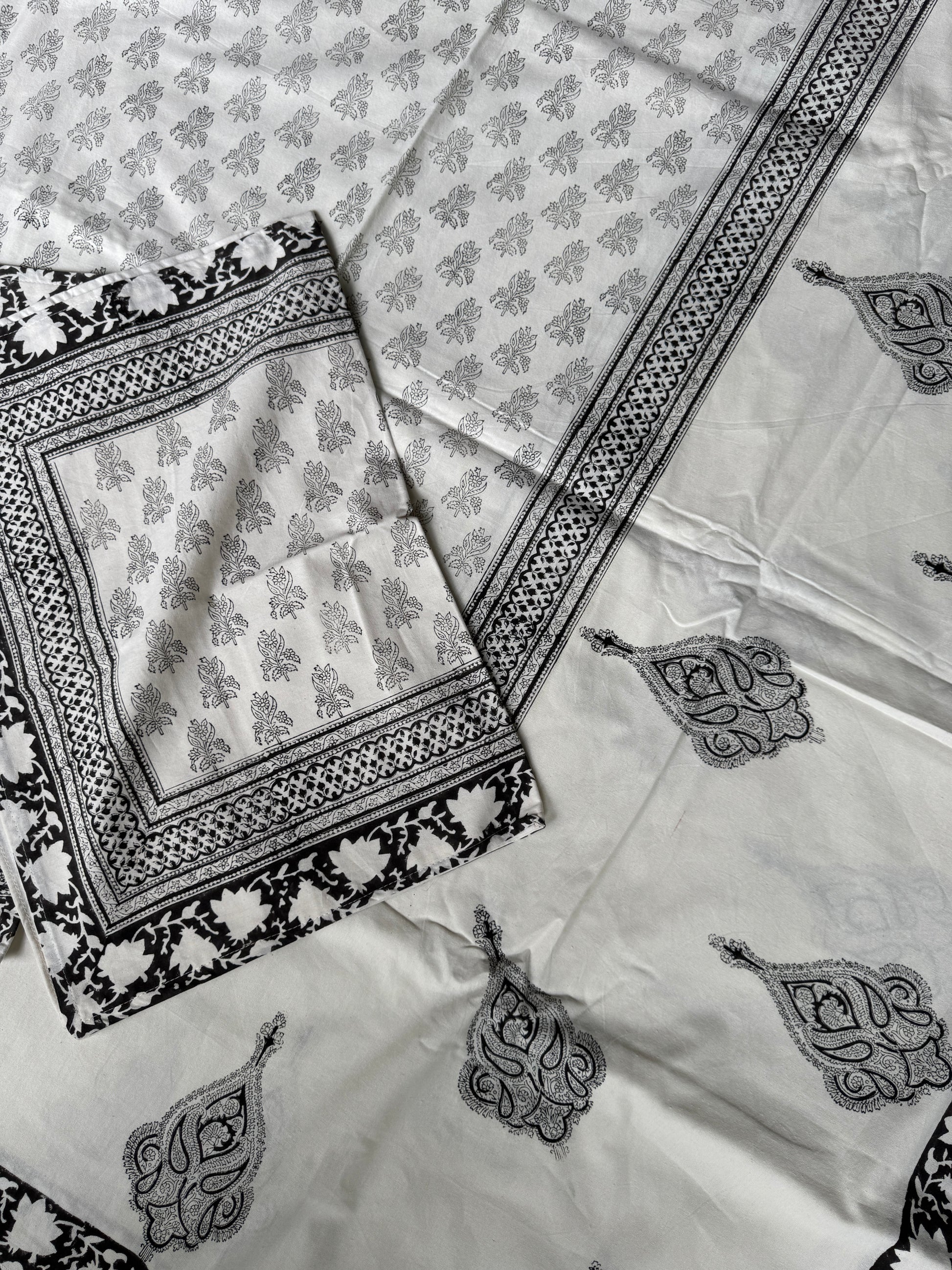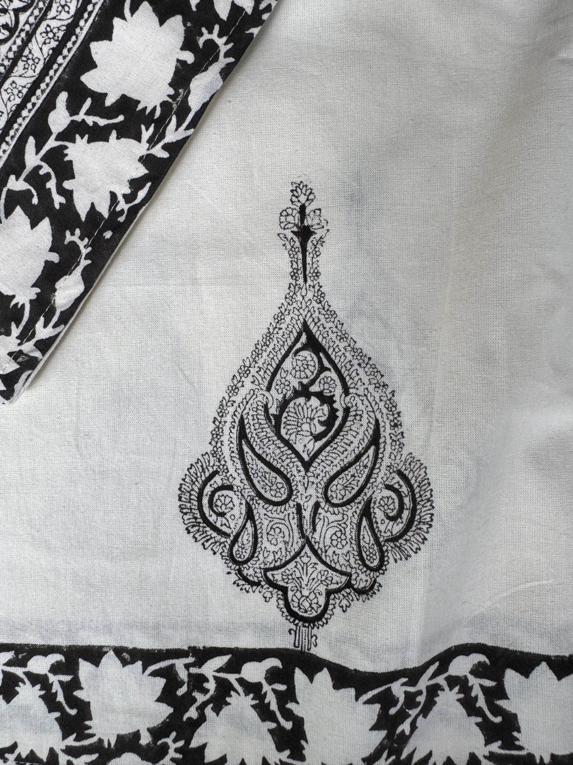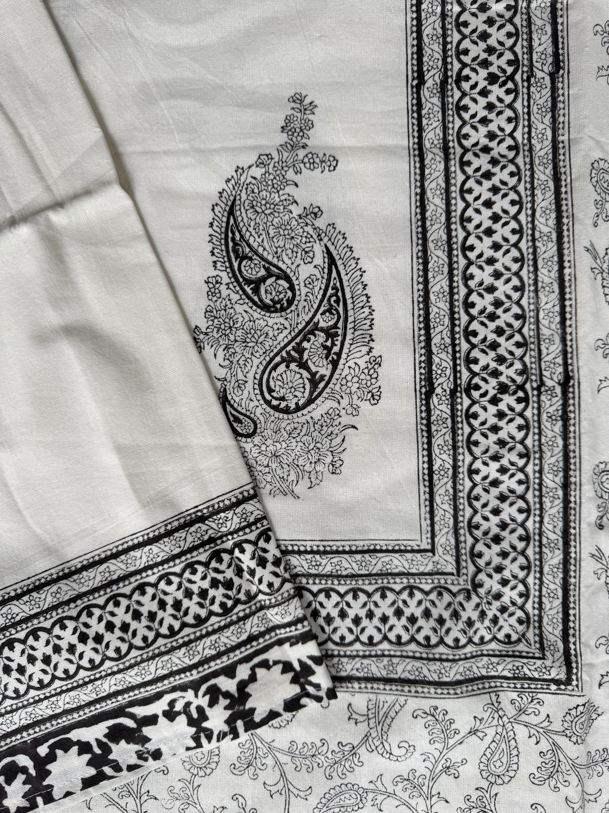 Black and white fine brass hand block prints on white base - pure cotton super king 108 x 108 inches size bedsheet - multiple designs available