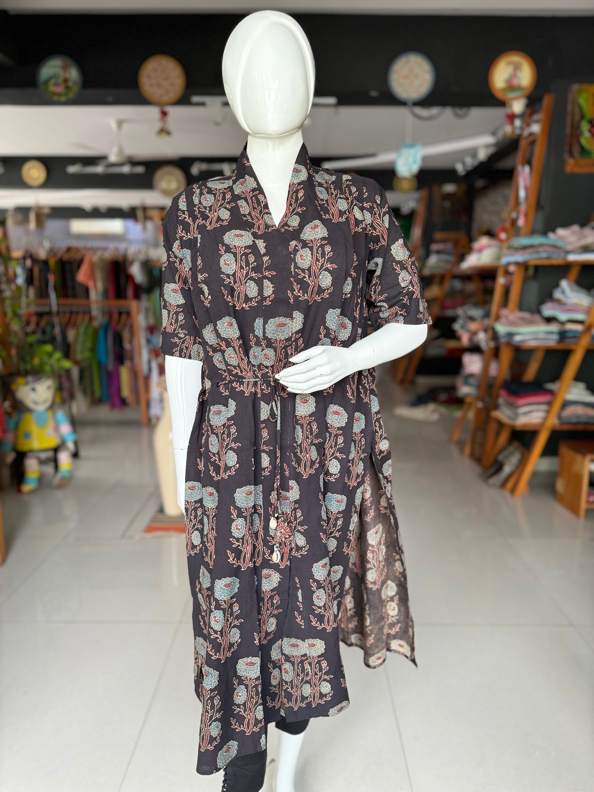 Black cotton Ajrakh hand block printed kaftan kurti