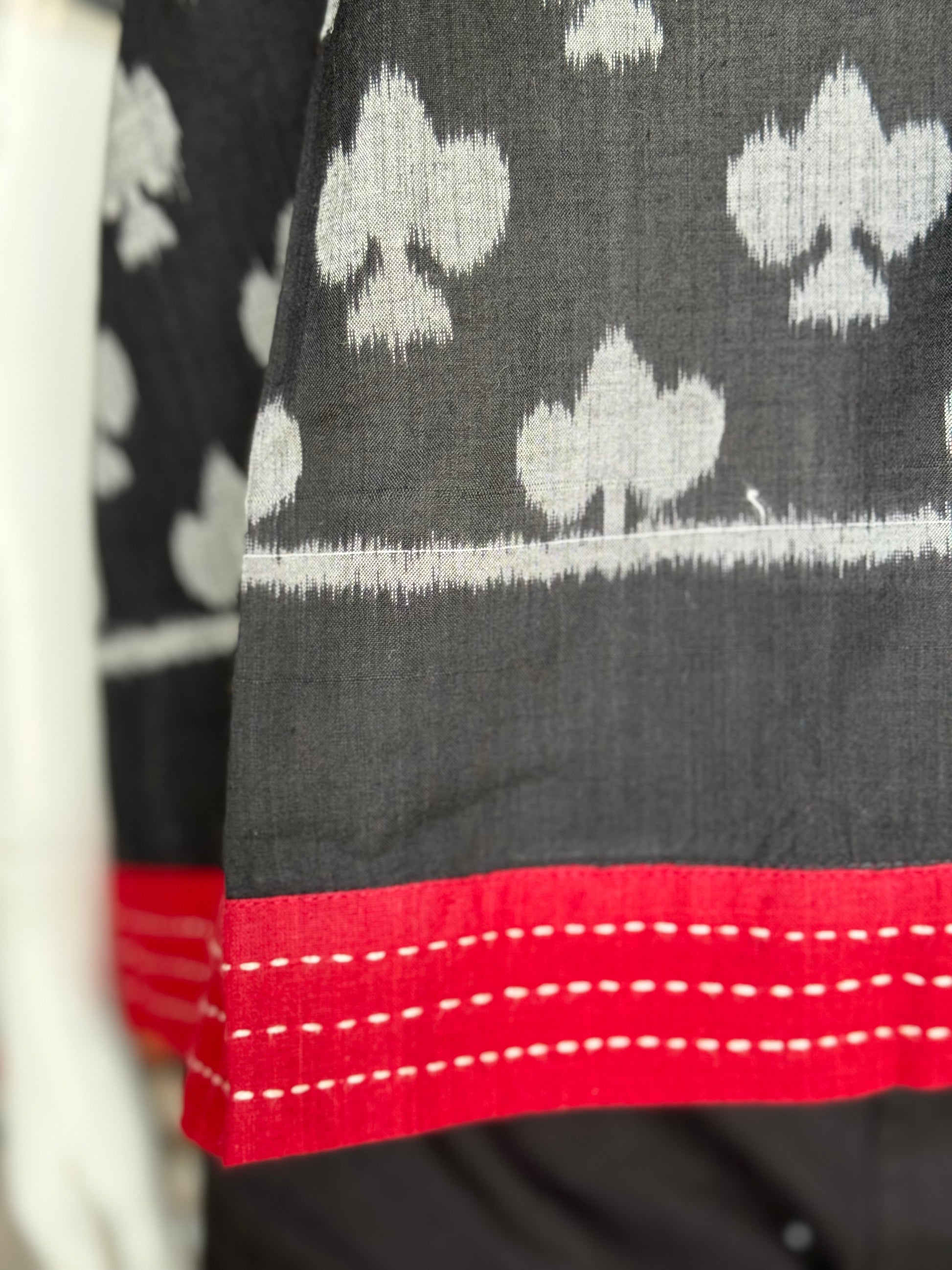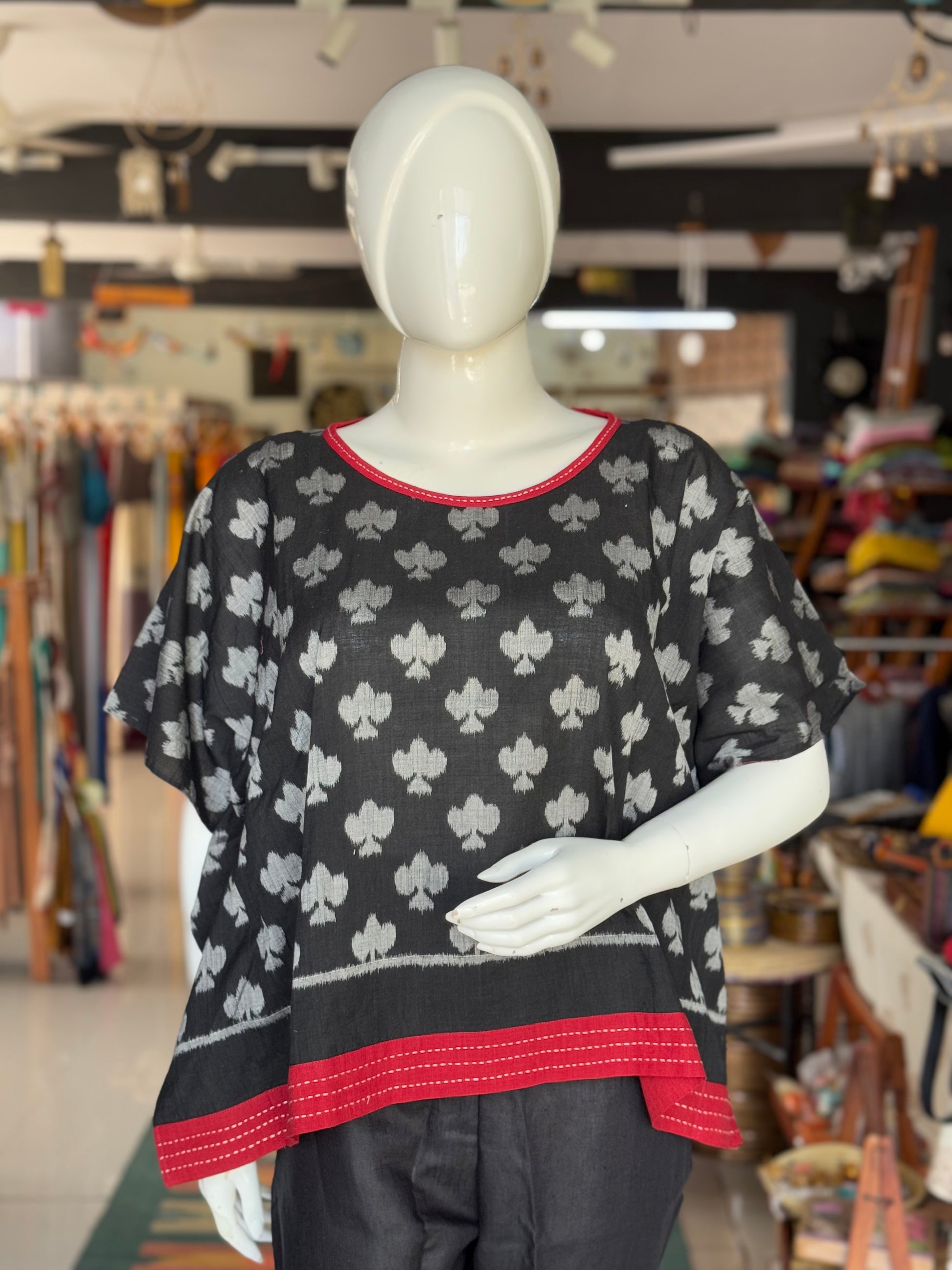 Black - Taash - King of club design cotton handloom soft ikat kaftan top with hand embroidery detailing