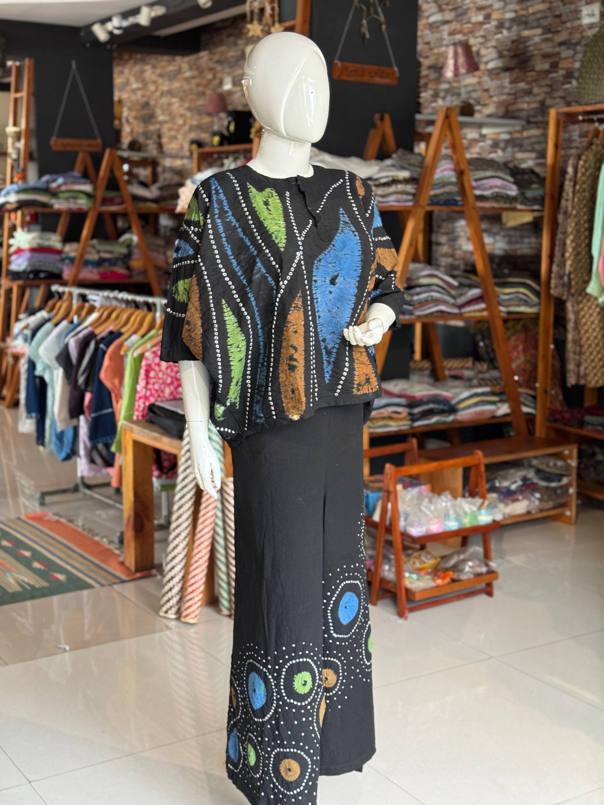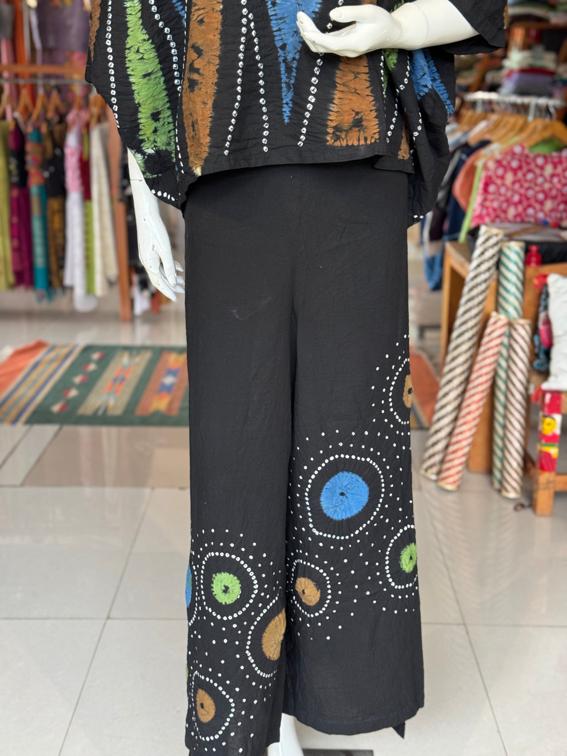 Black placement bandini cotton wrap pants with hand tie n dye design - free size