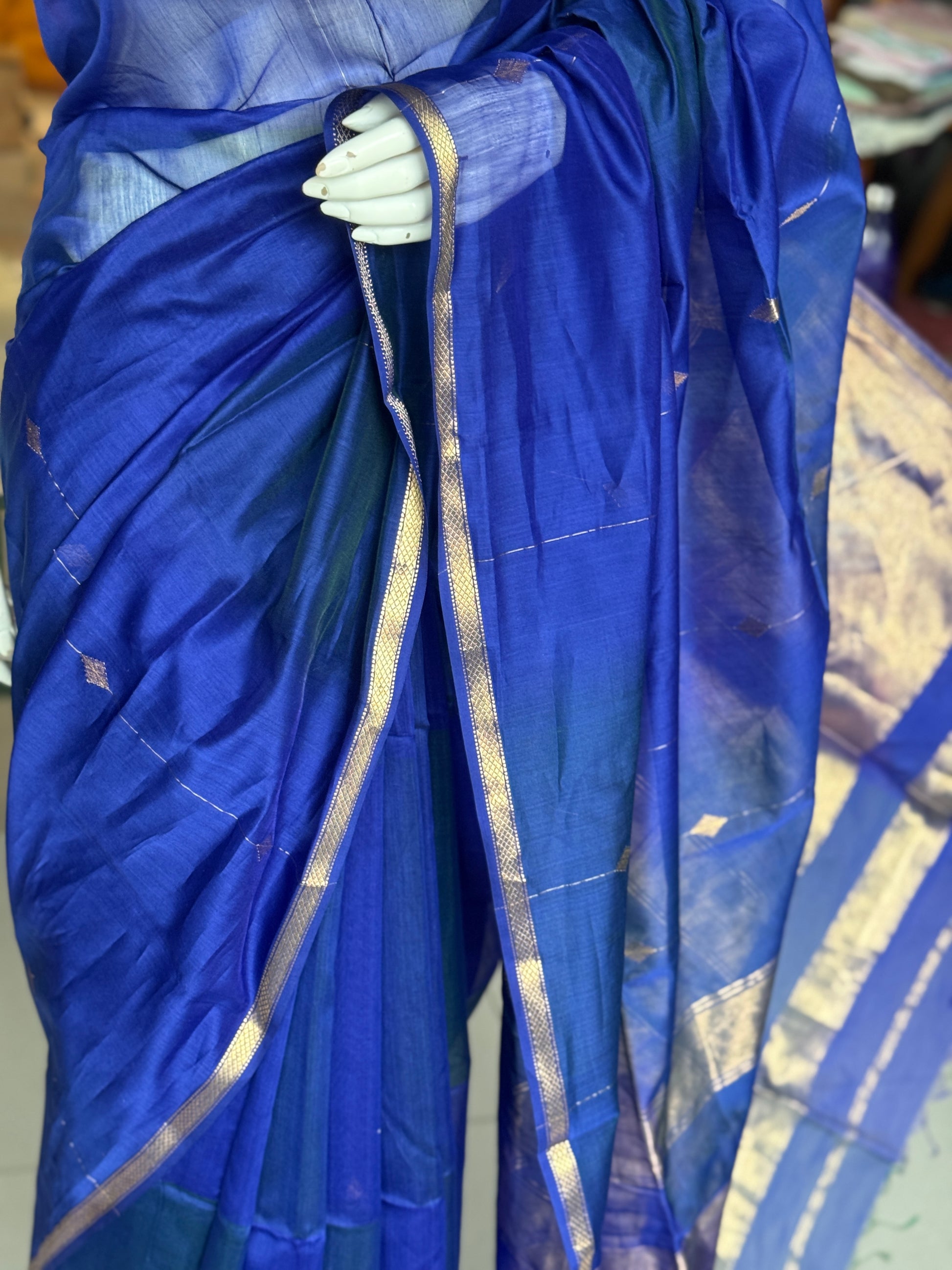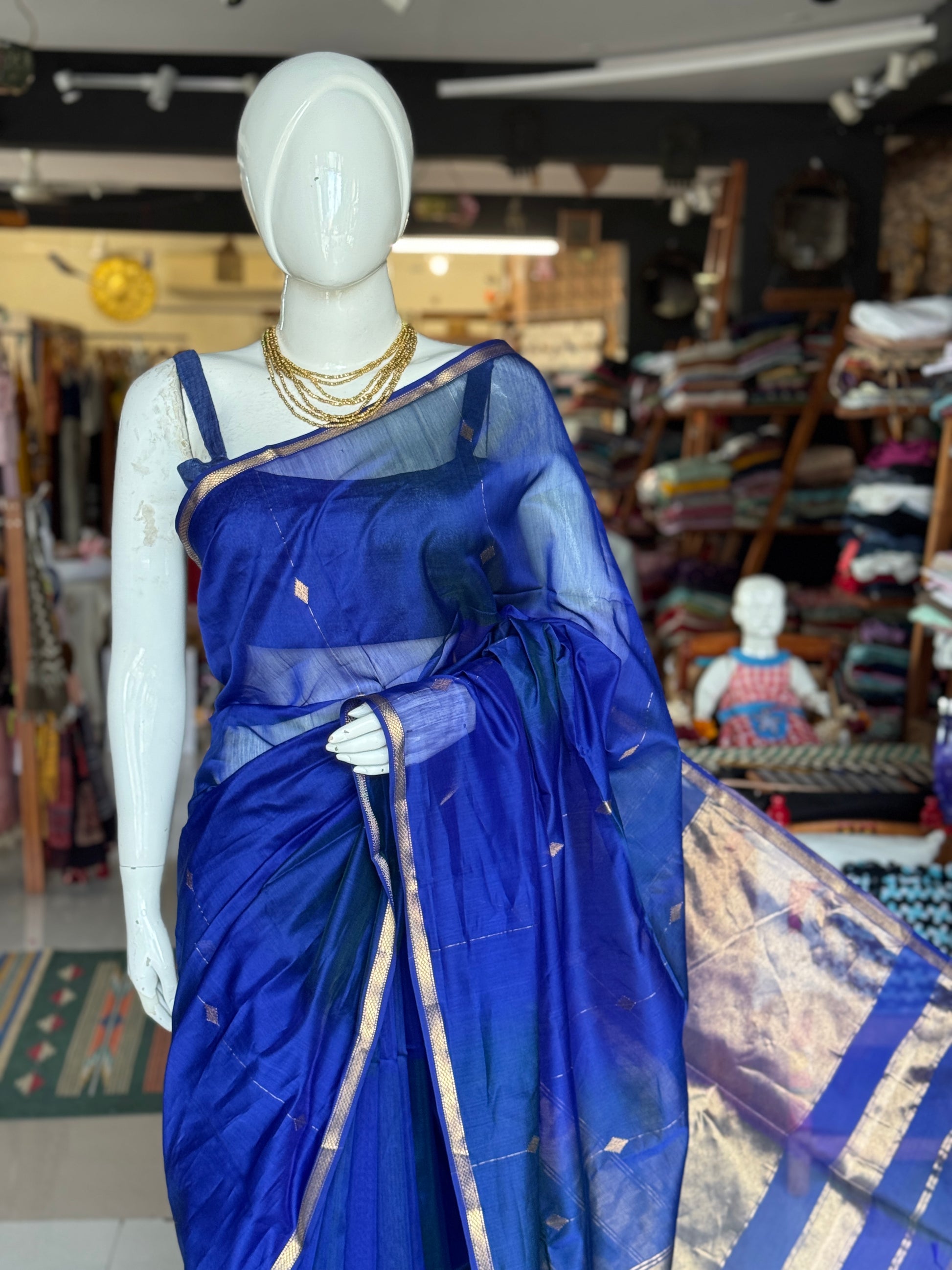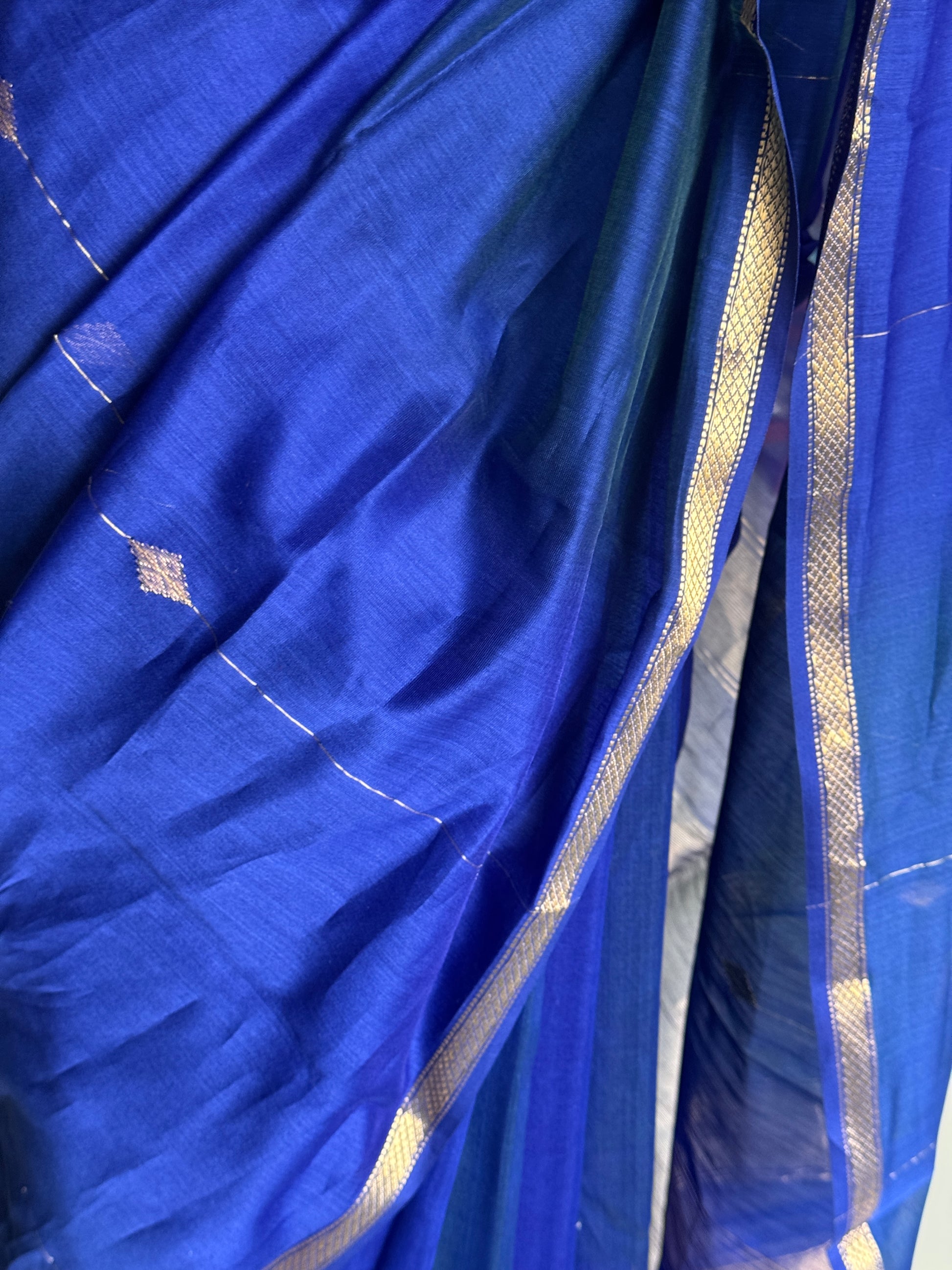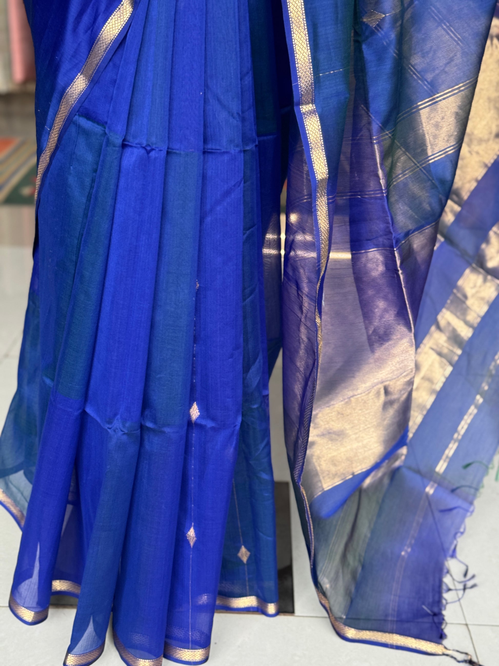 Blue all over stripes and butis silk cotton Maheshwari handloom saree
