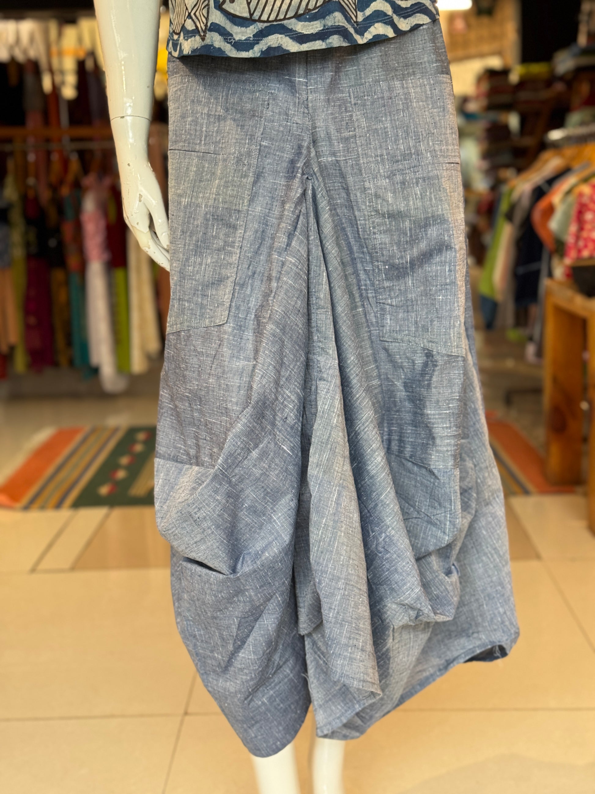 Blue chambray yarn dyed hand woven cotton designer skirt - with pockets