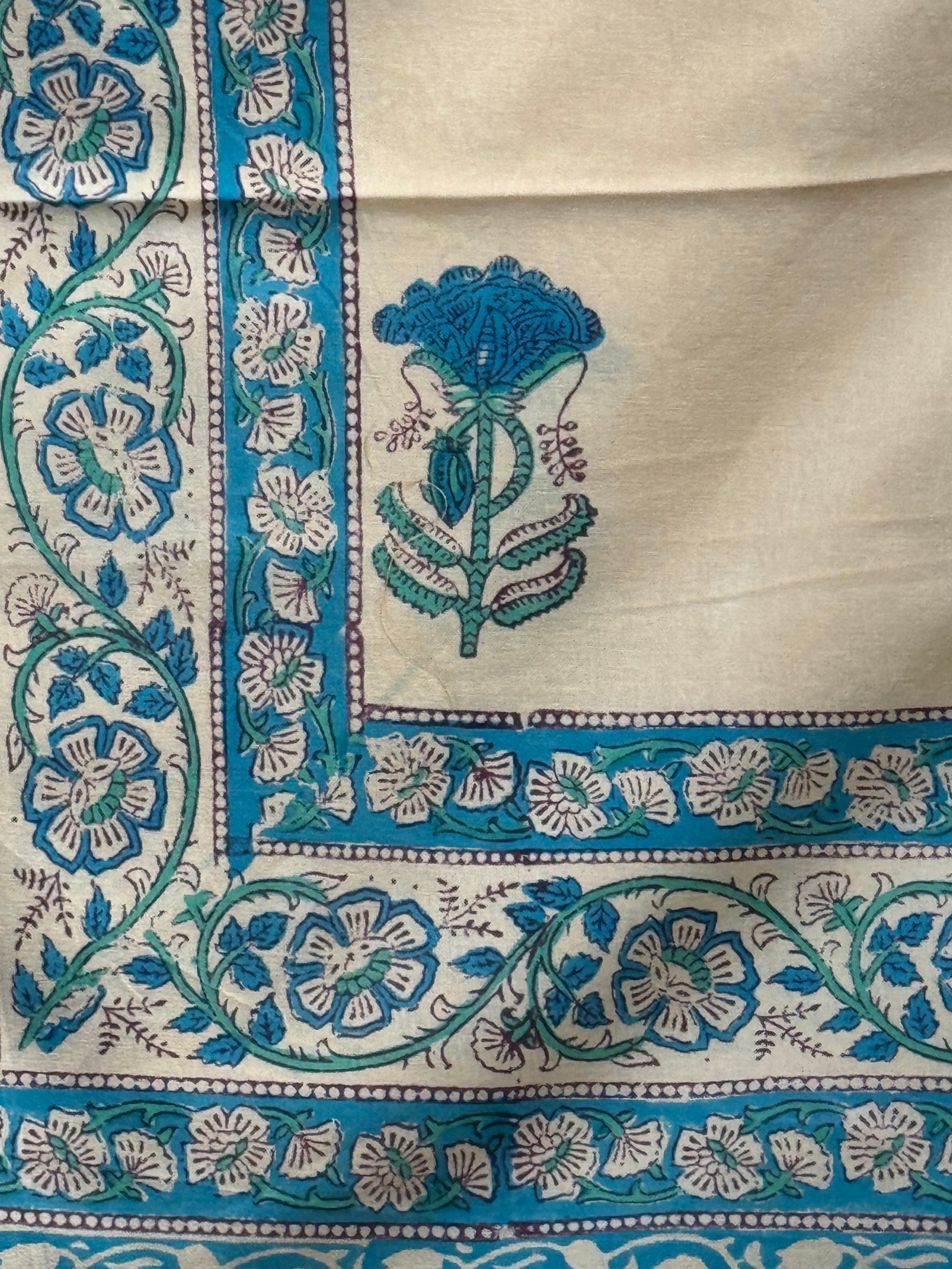 Blue floral hand block print on sandal base pure cotton super king size bedsheet