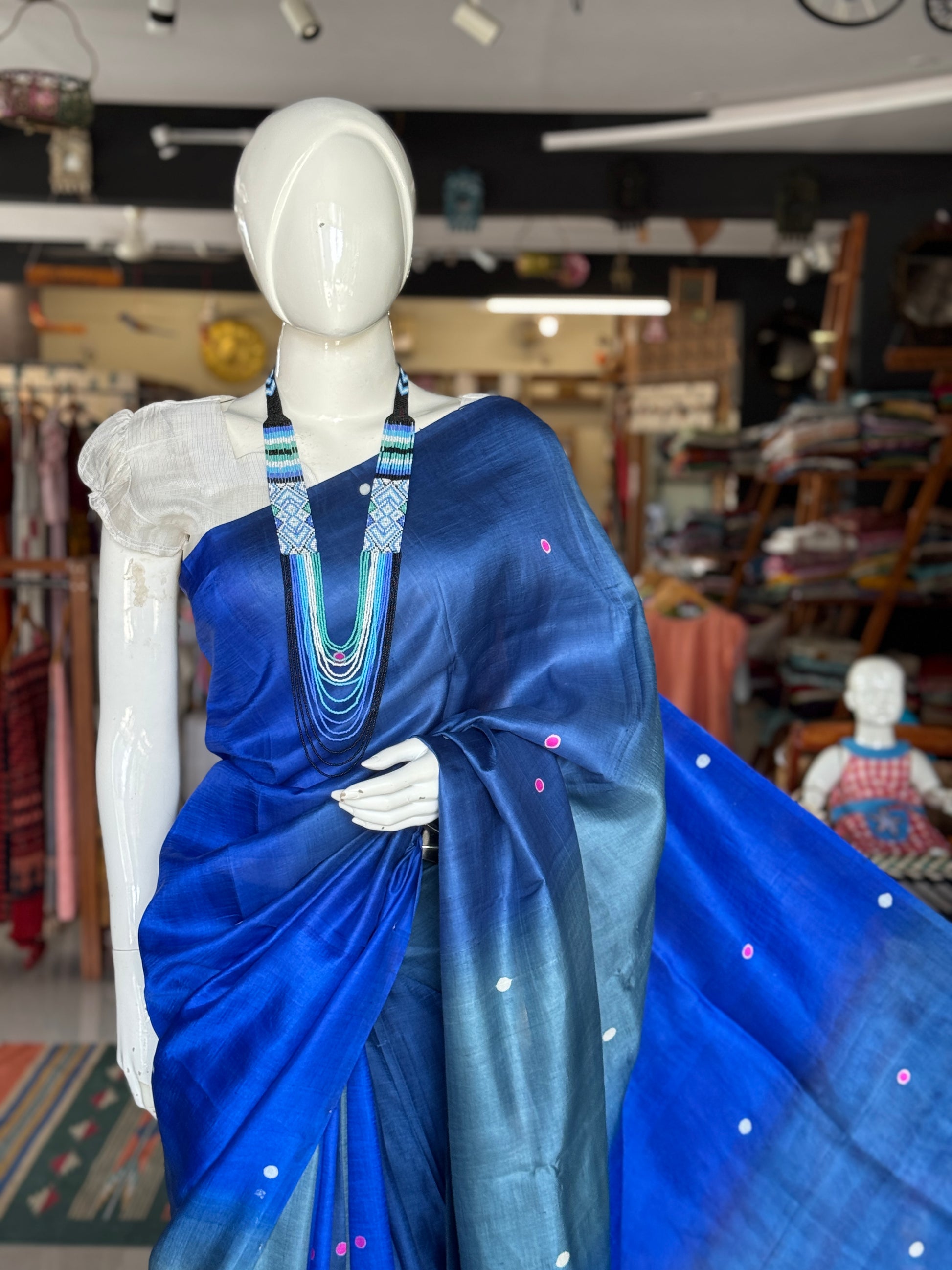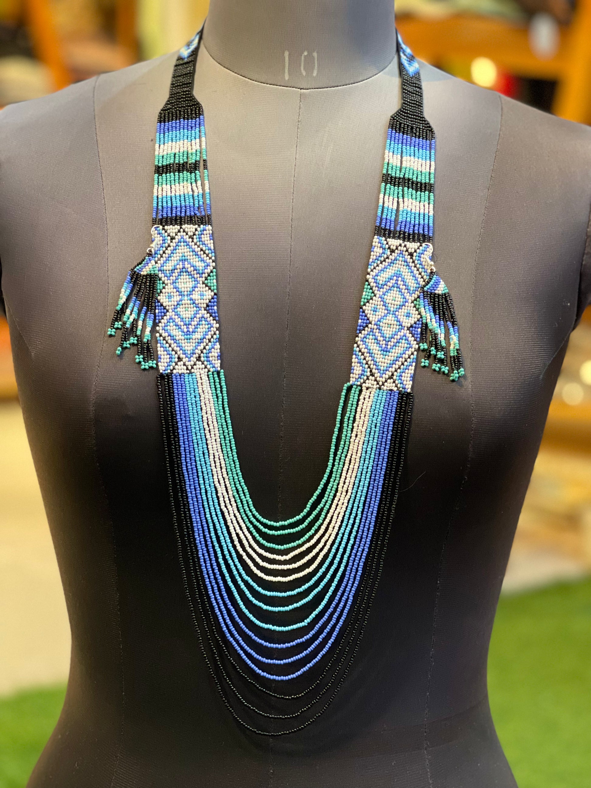 Blue multiple strands design- hand crafted glass seed beads neckpiece, earrings set