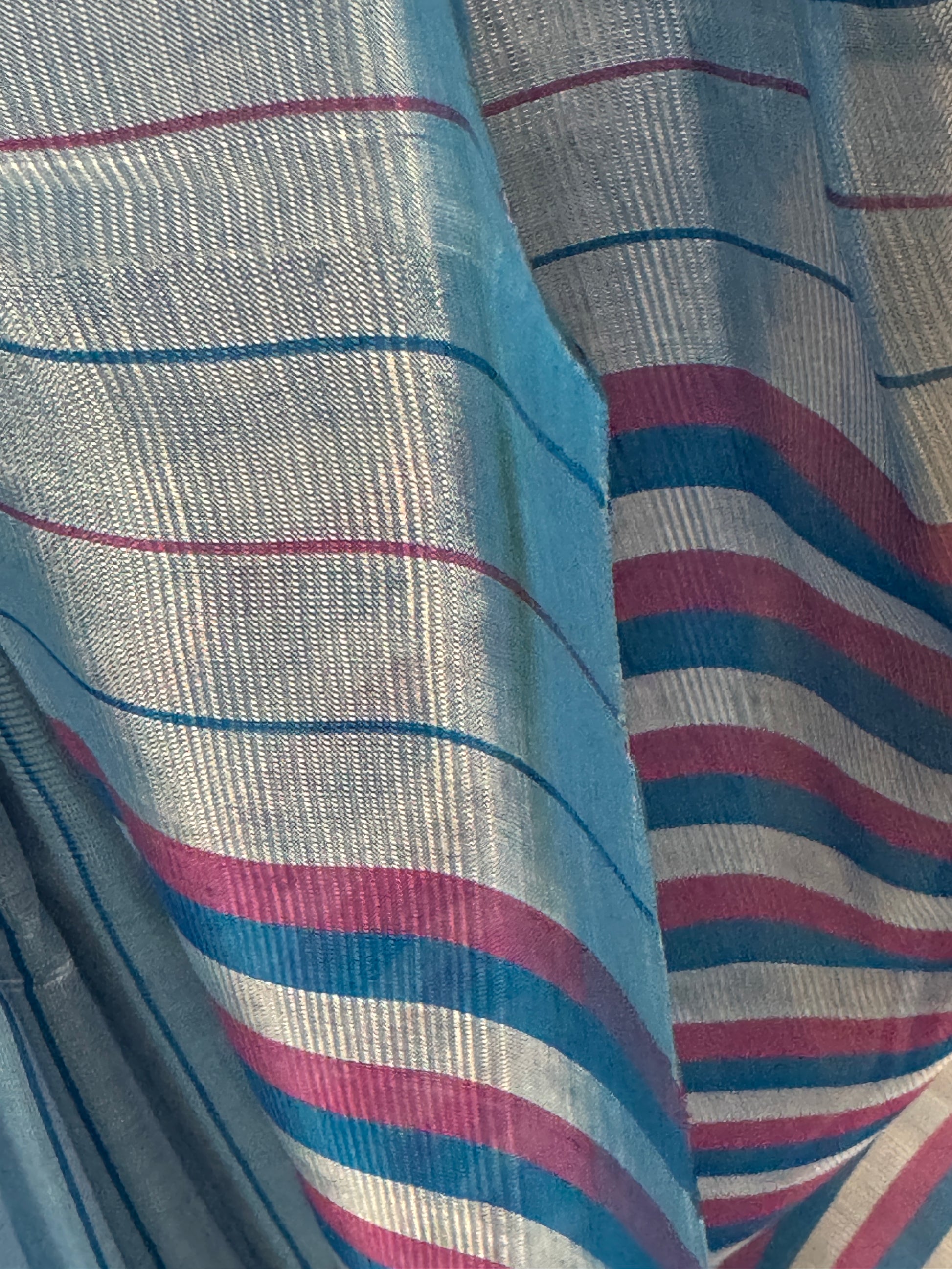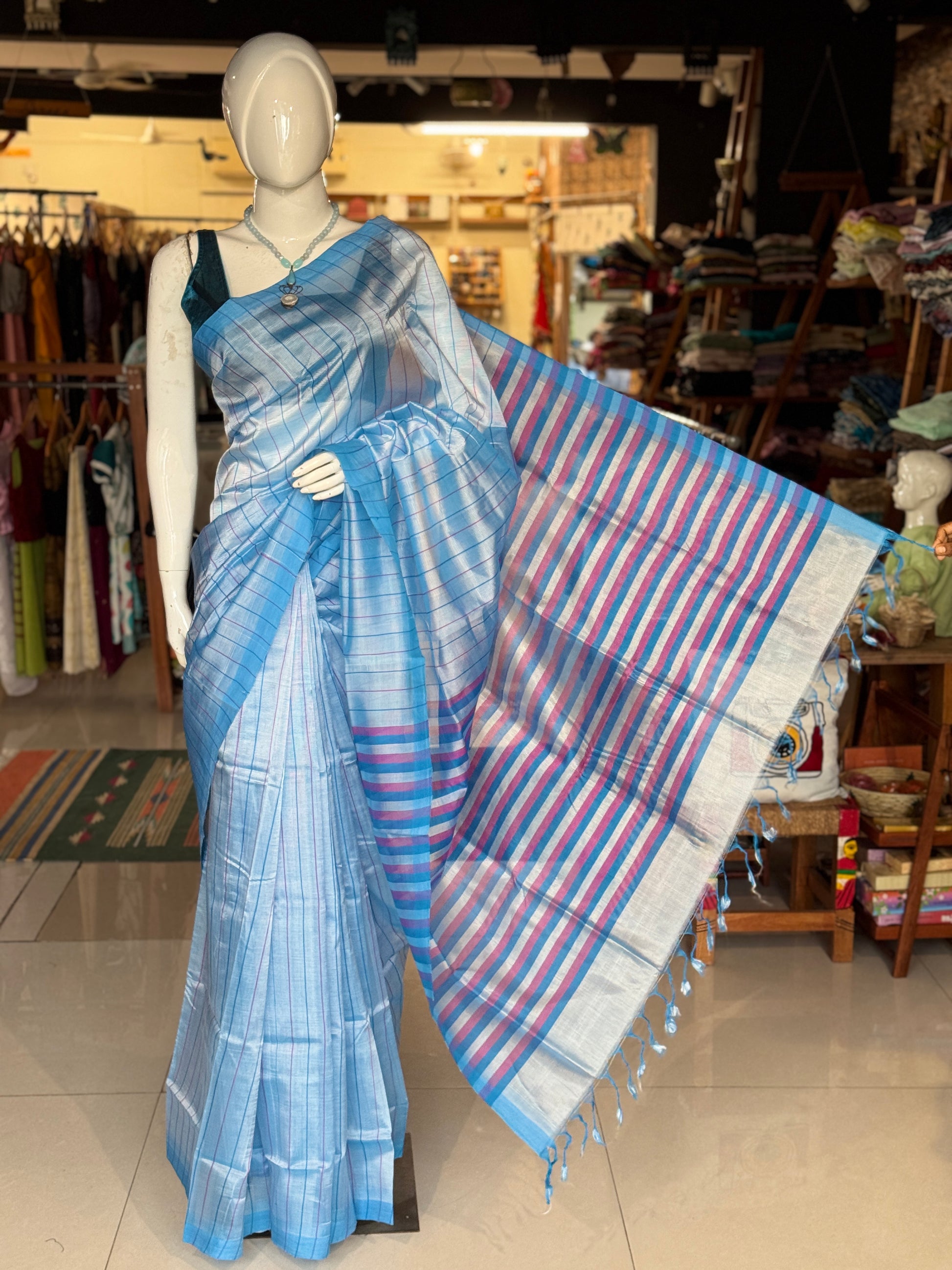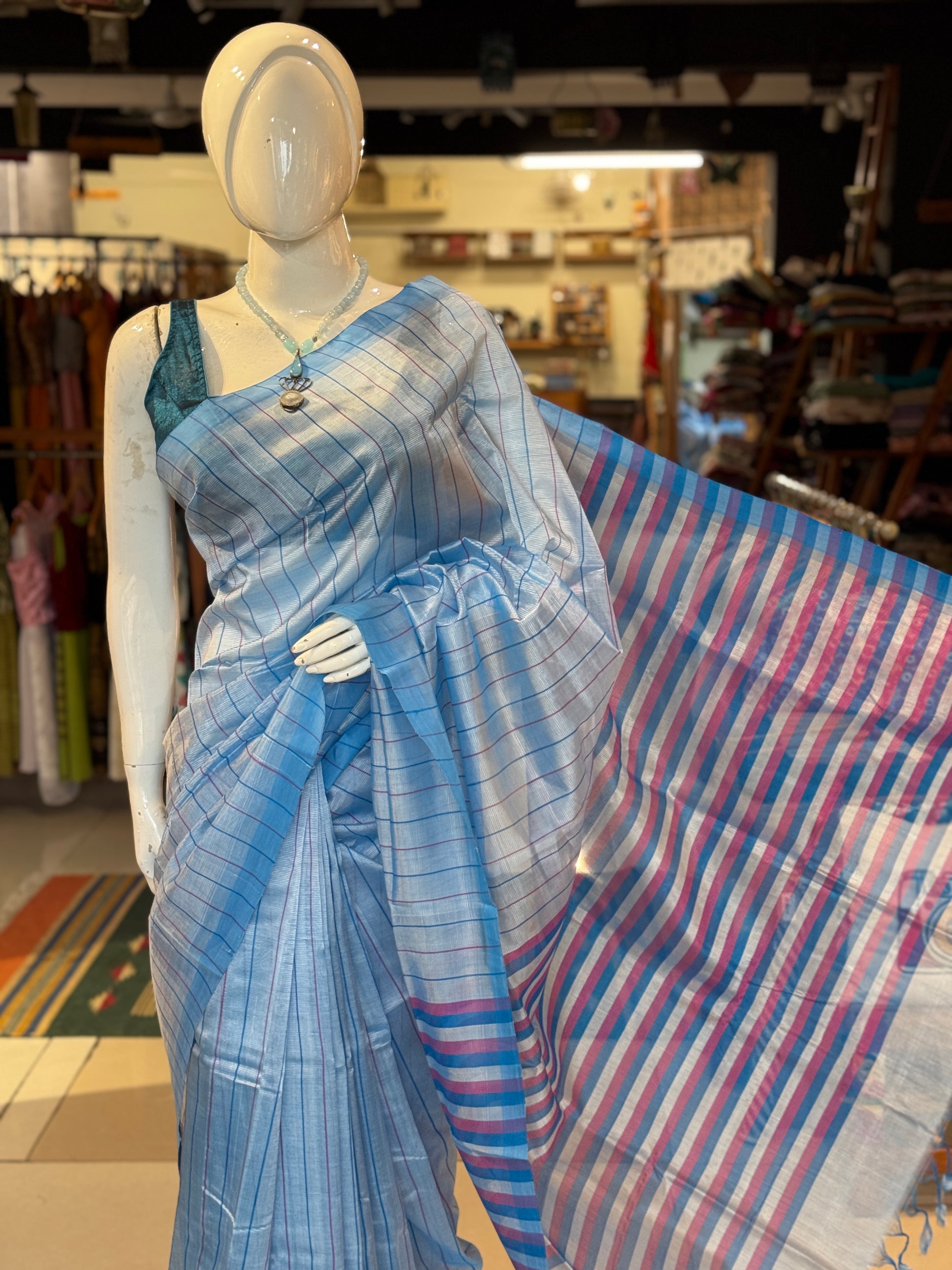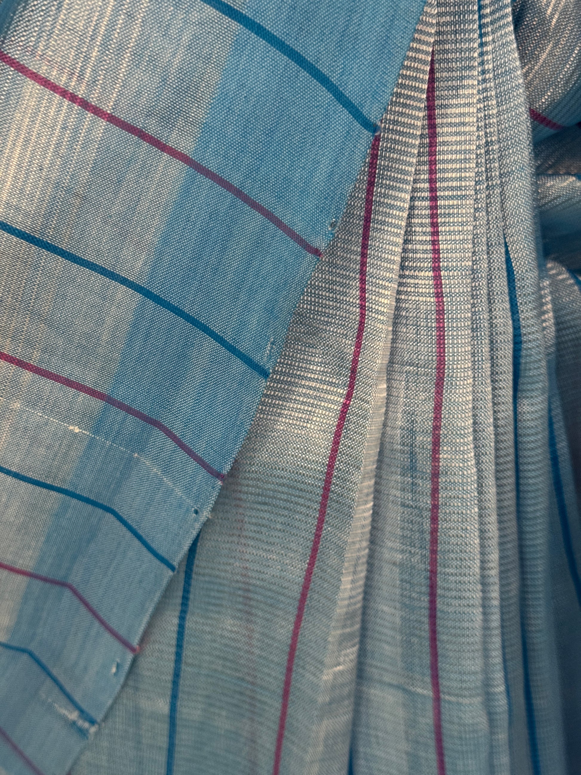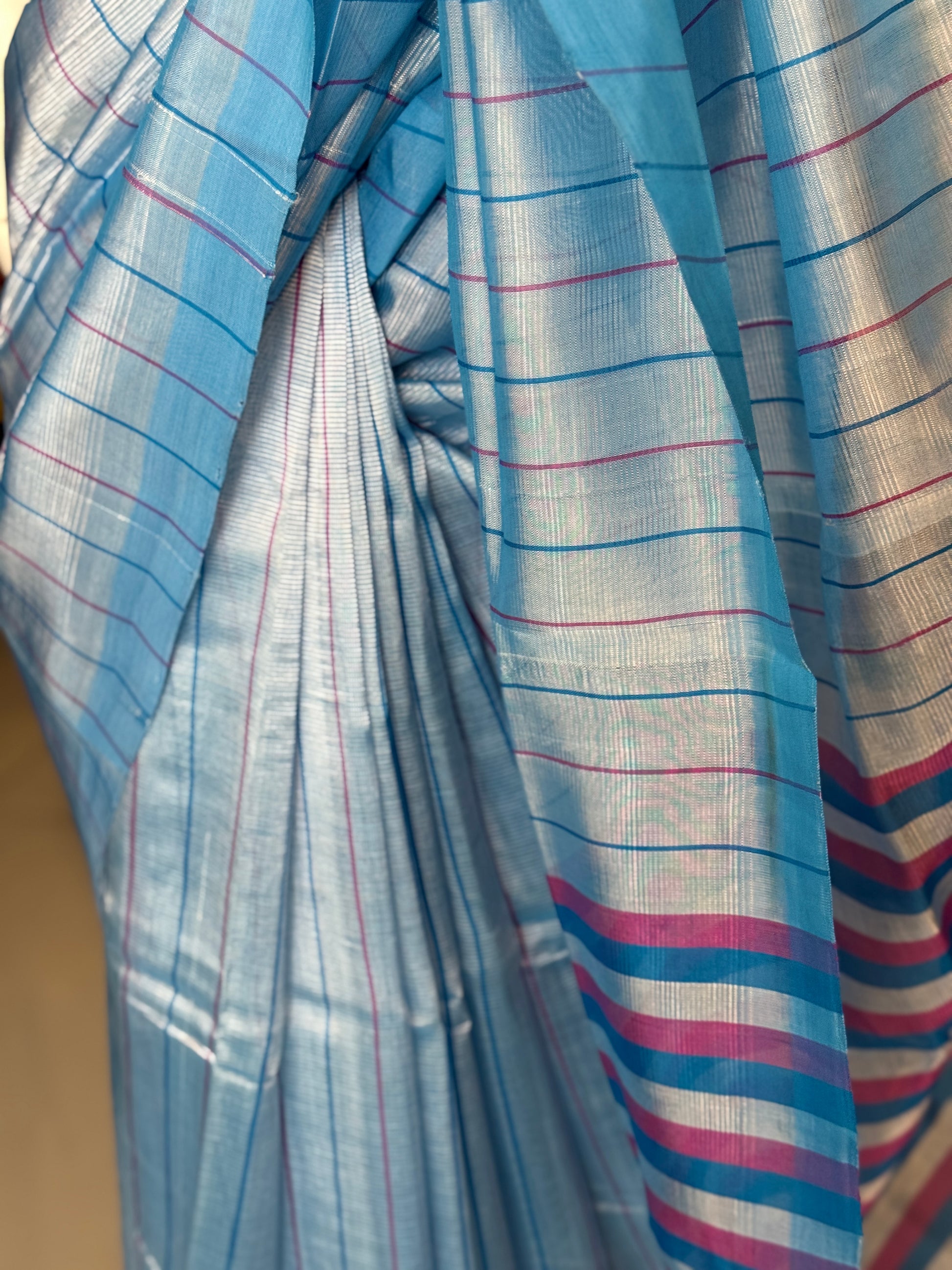 Blue stripes Mangalagiri handloom saree with contrast blouse