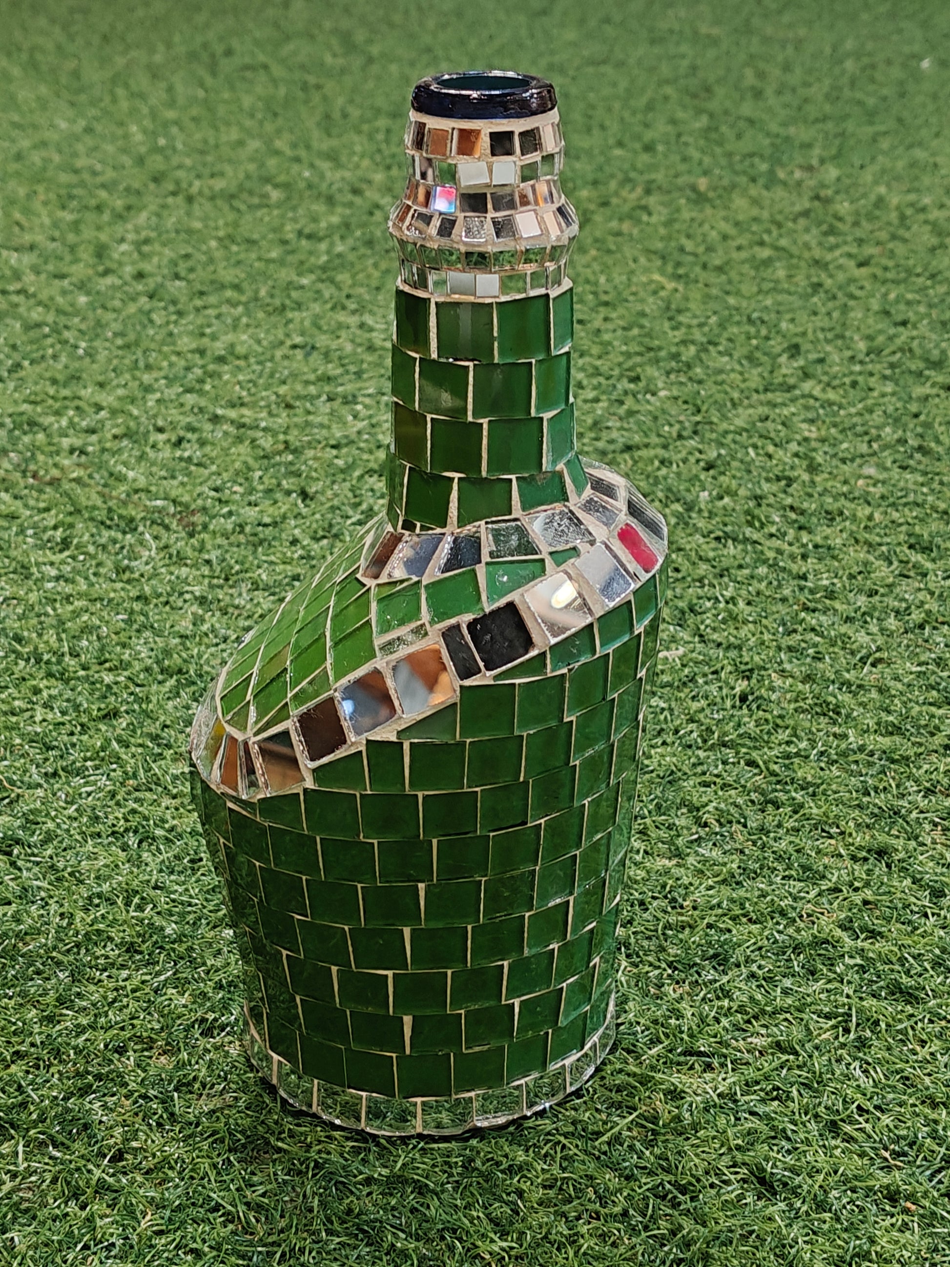 Glass bottle with green mosaic mirror work - Handcrafted decorative flower vase