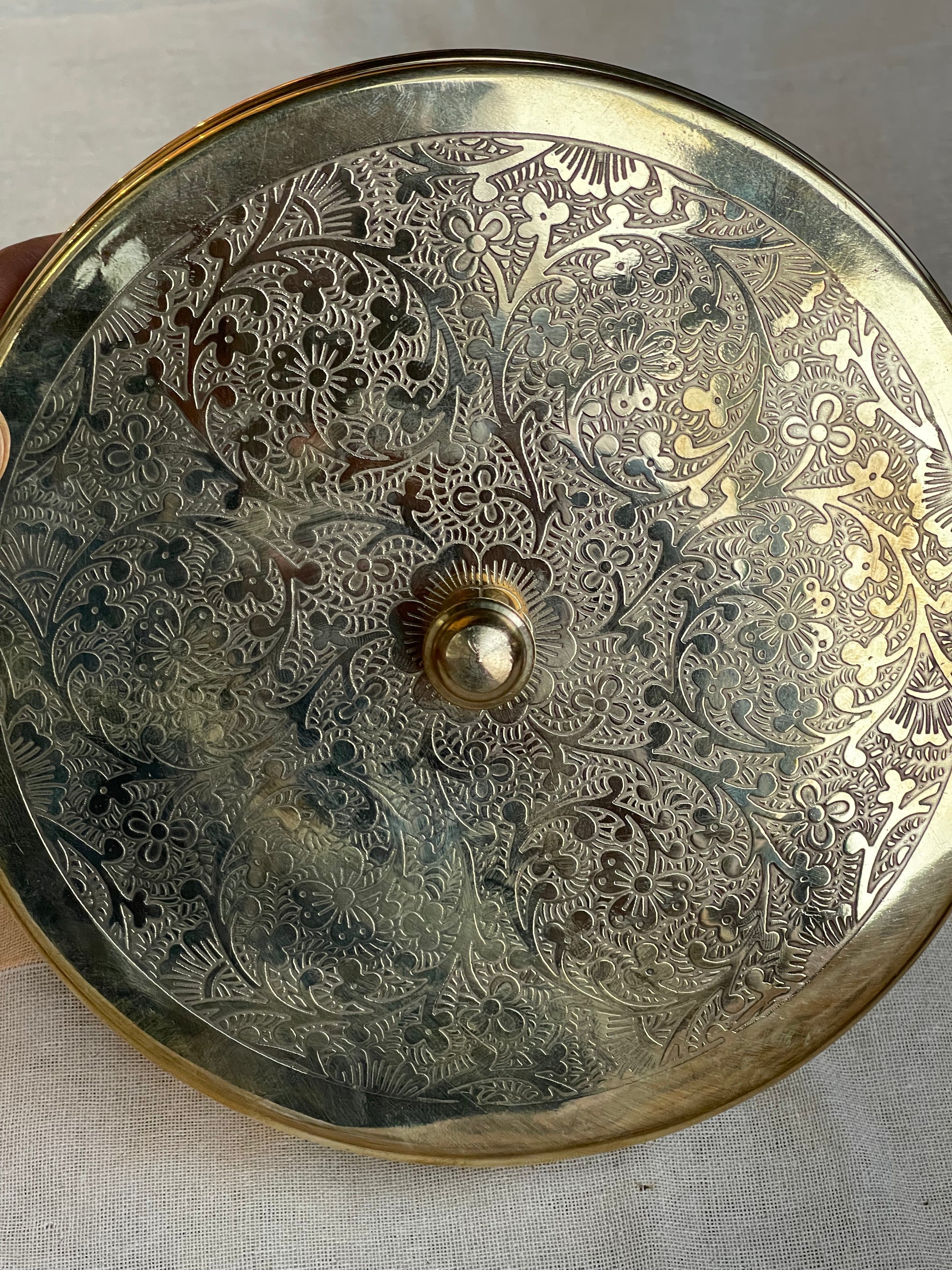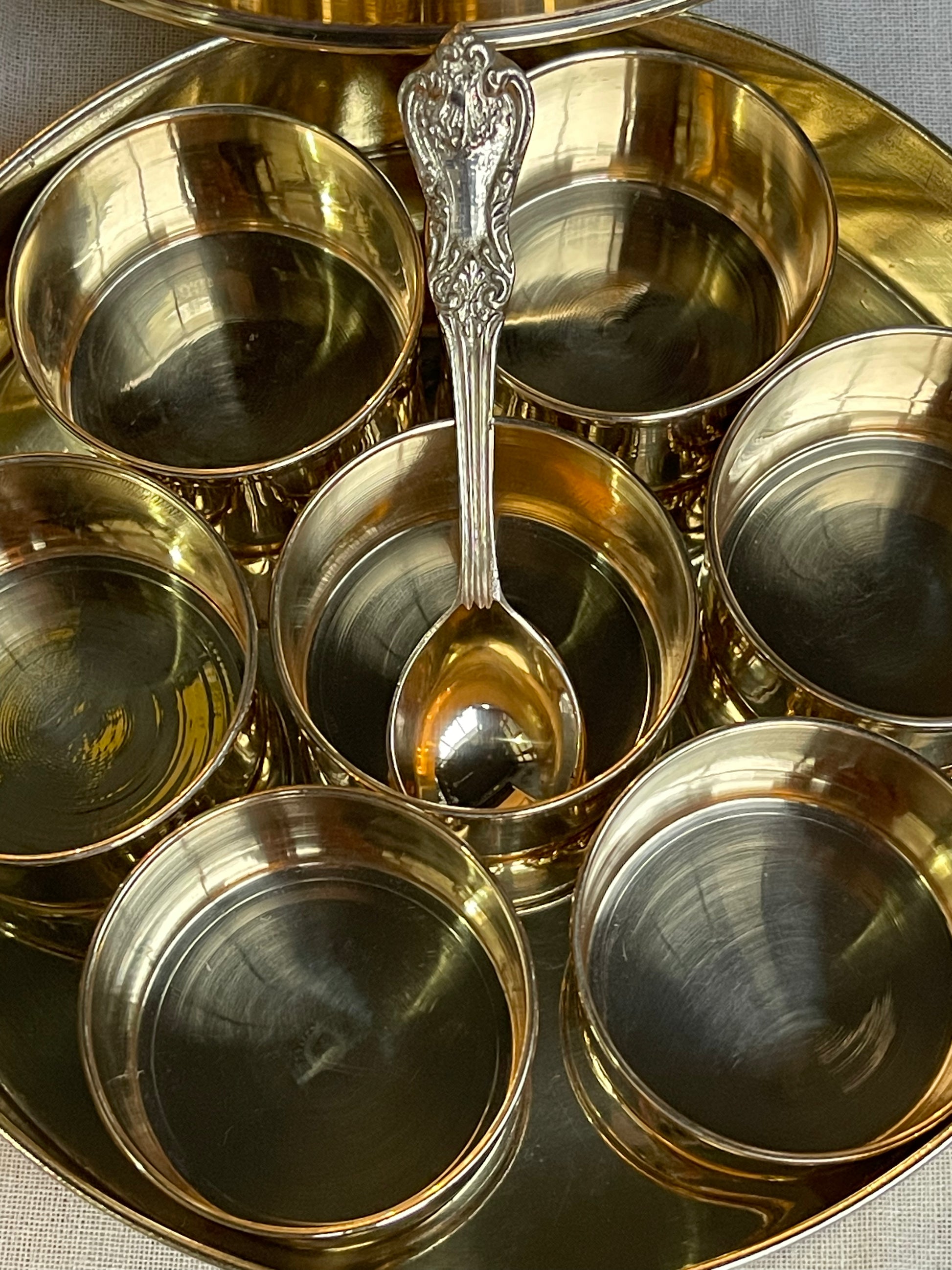 Brass 7 inches spice masala box - with 7 jars and a spoon