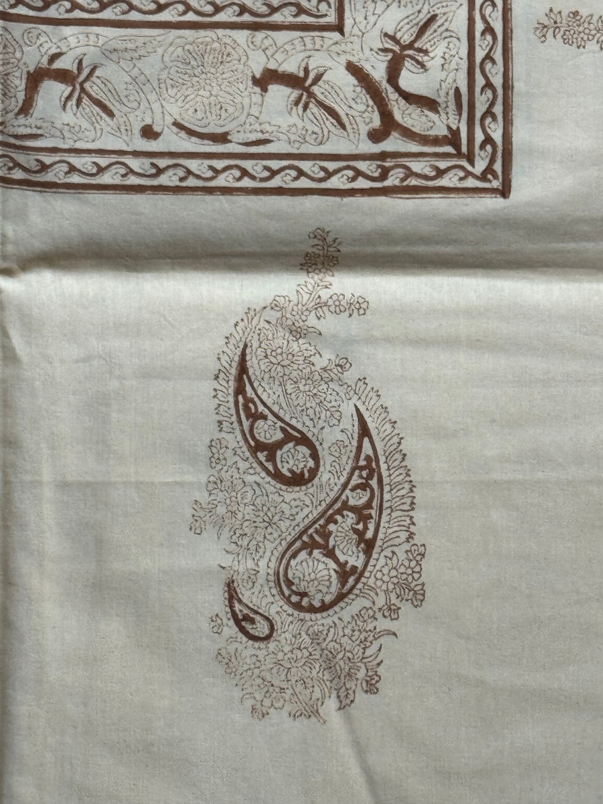 Brown floral print (brass hand block prints) on sandal base pure cotton king size bedsheet