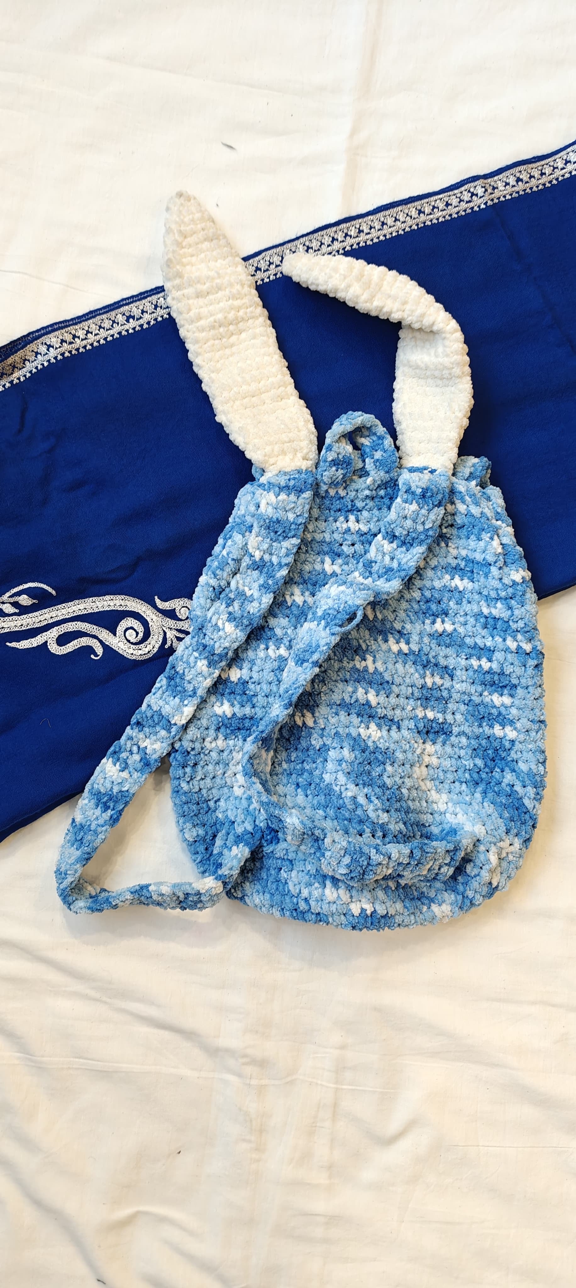 Bunny rabbit backpack bag in soft velvet yarn - hand crochet