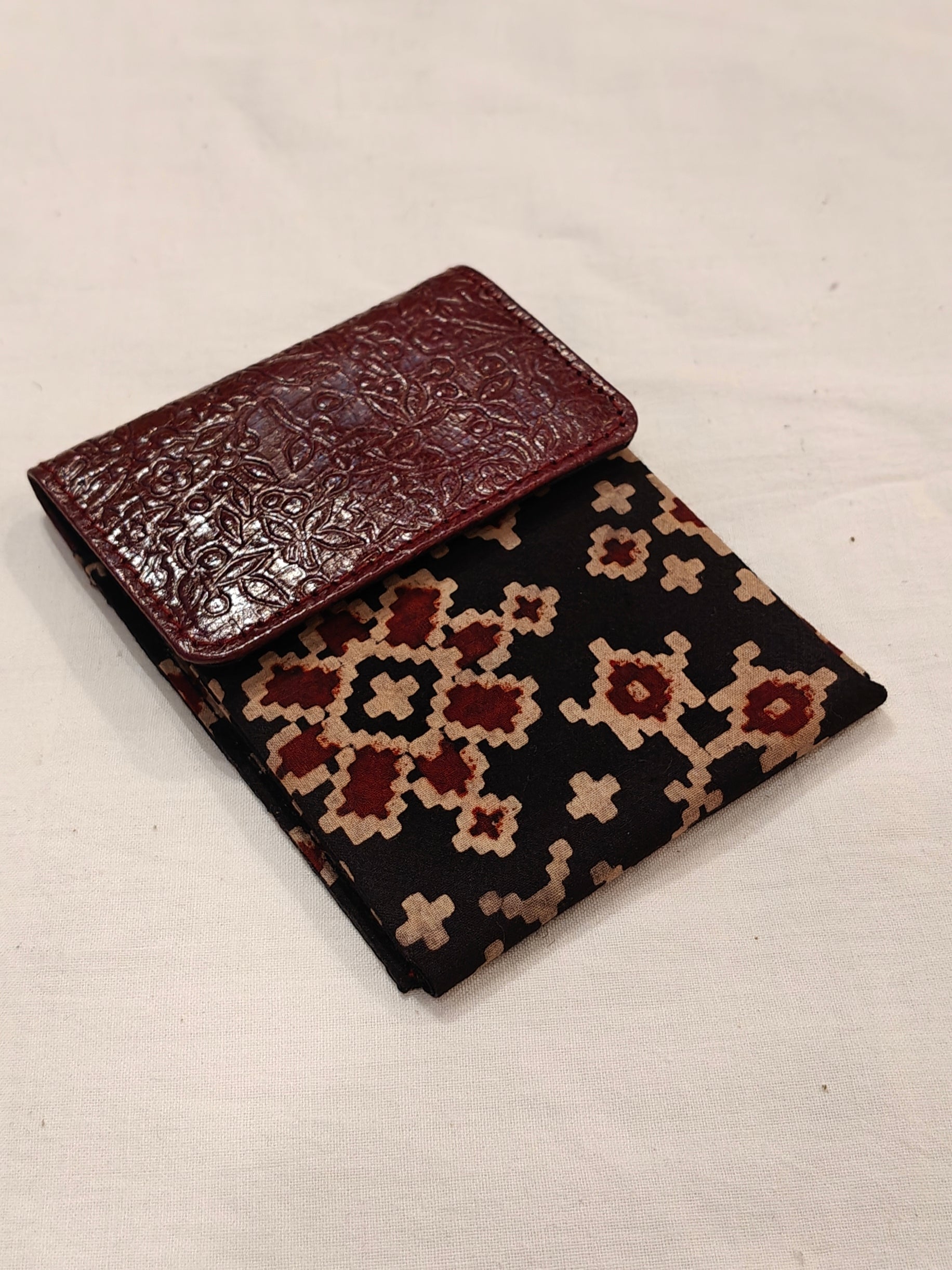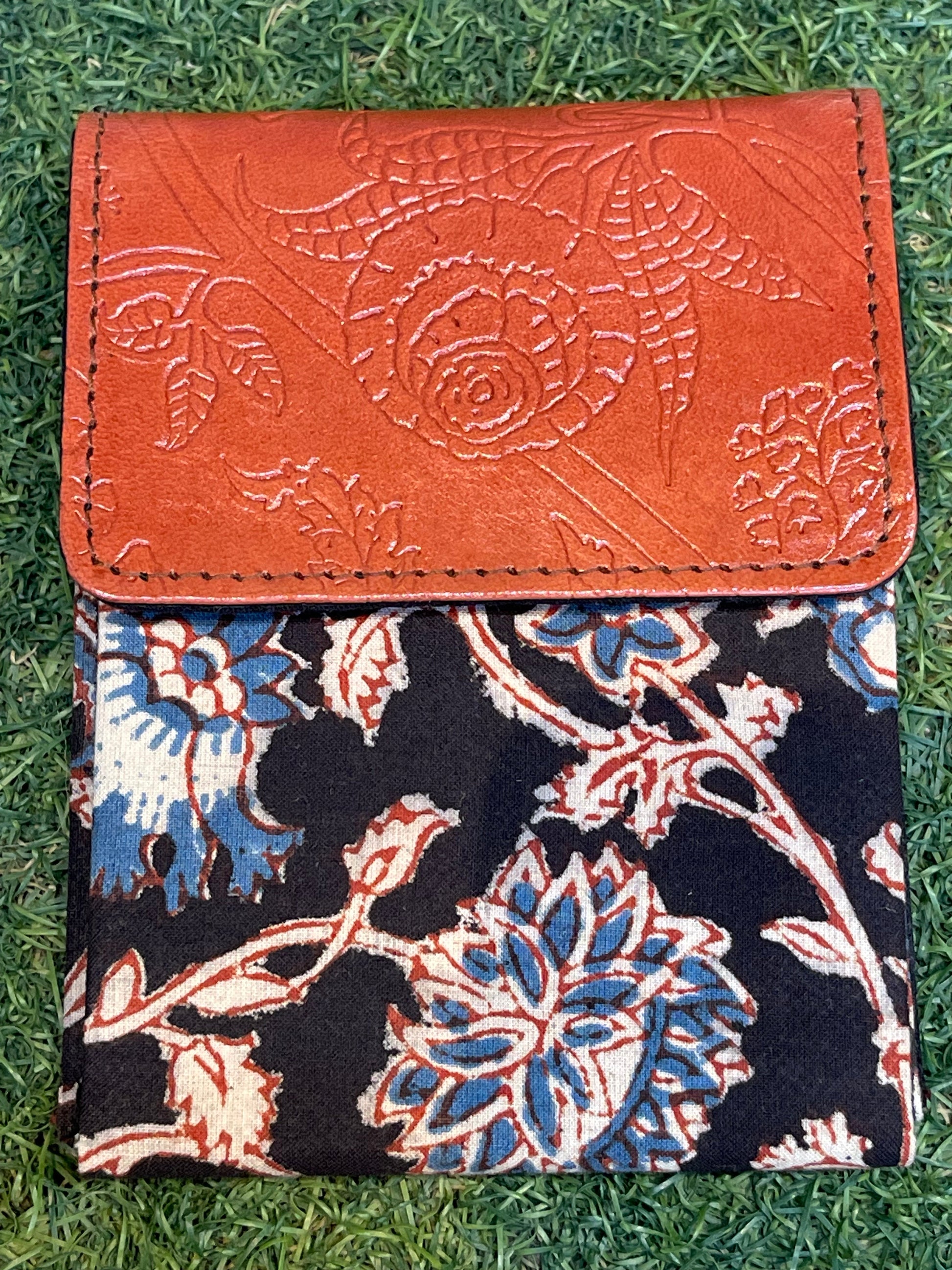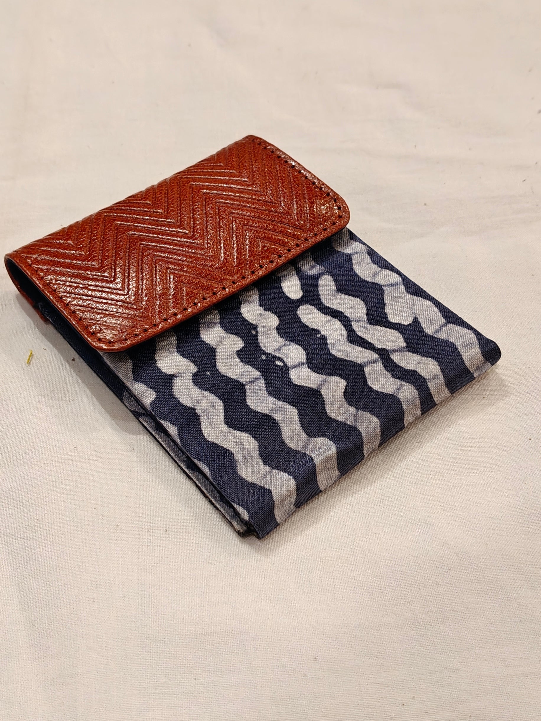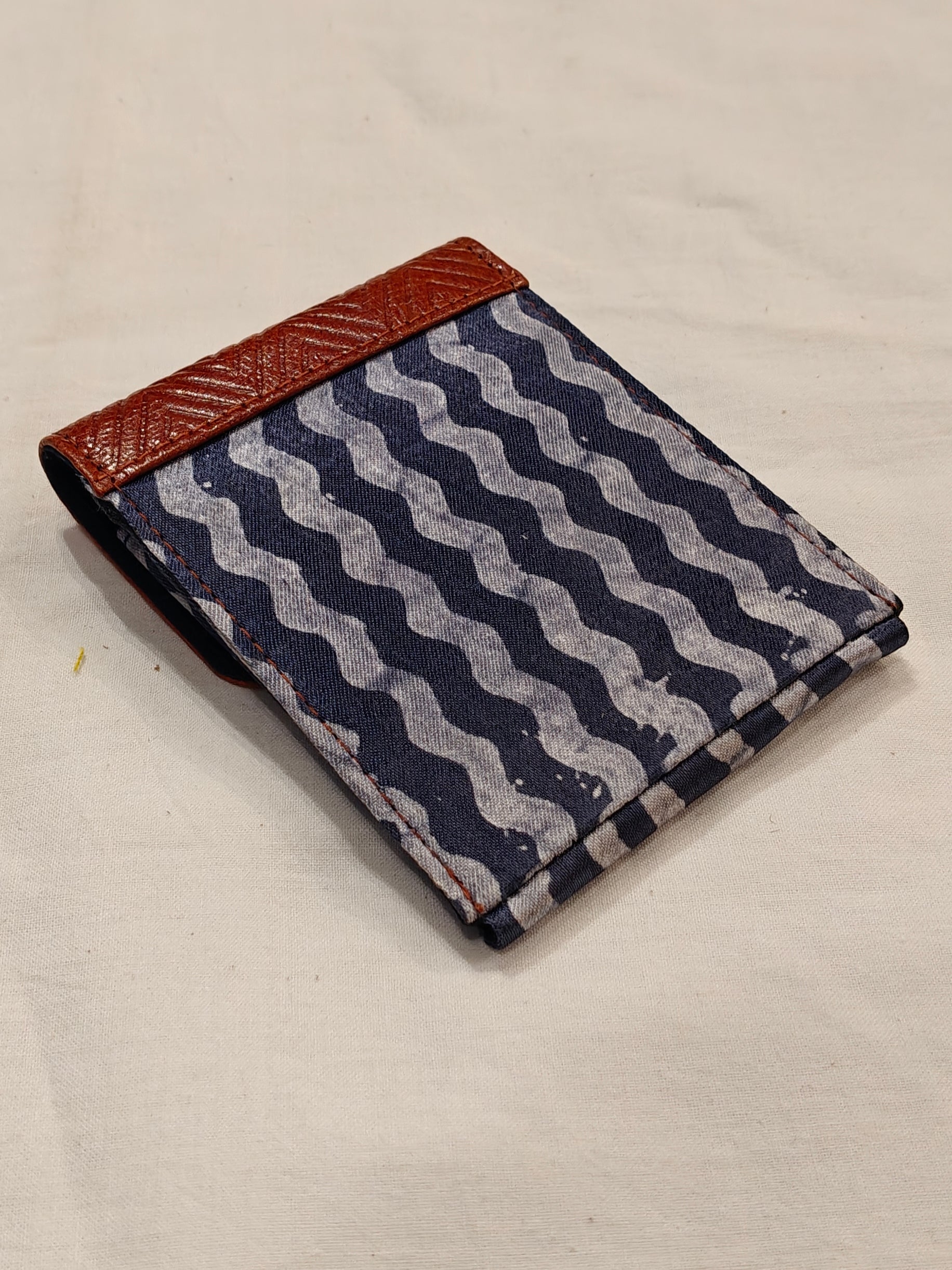 Cards and cash holder with 3 pockets - handcrafted fabrics and leather based