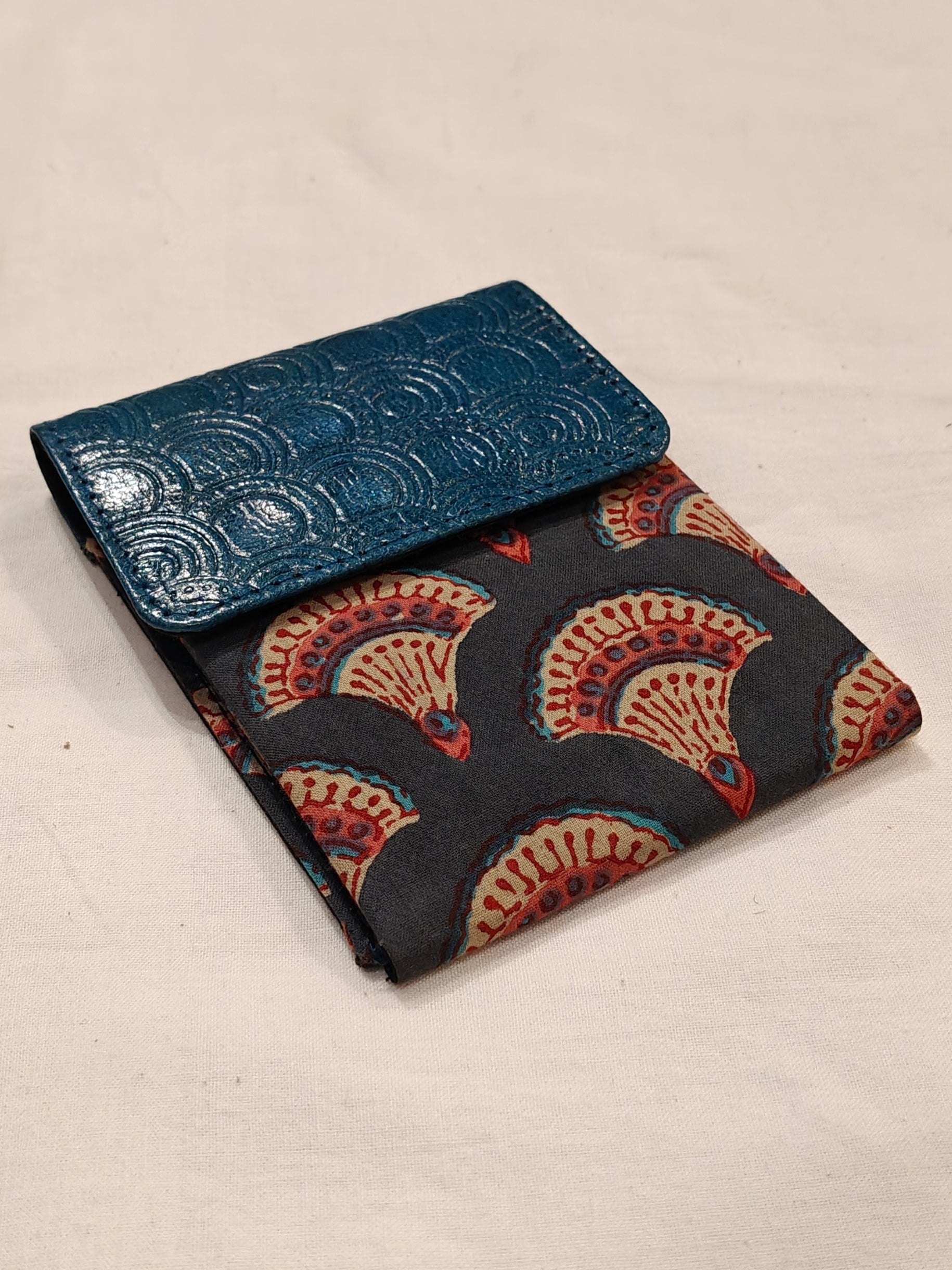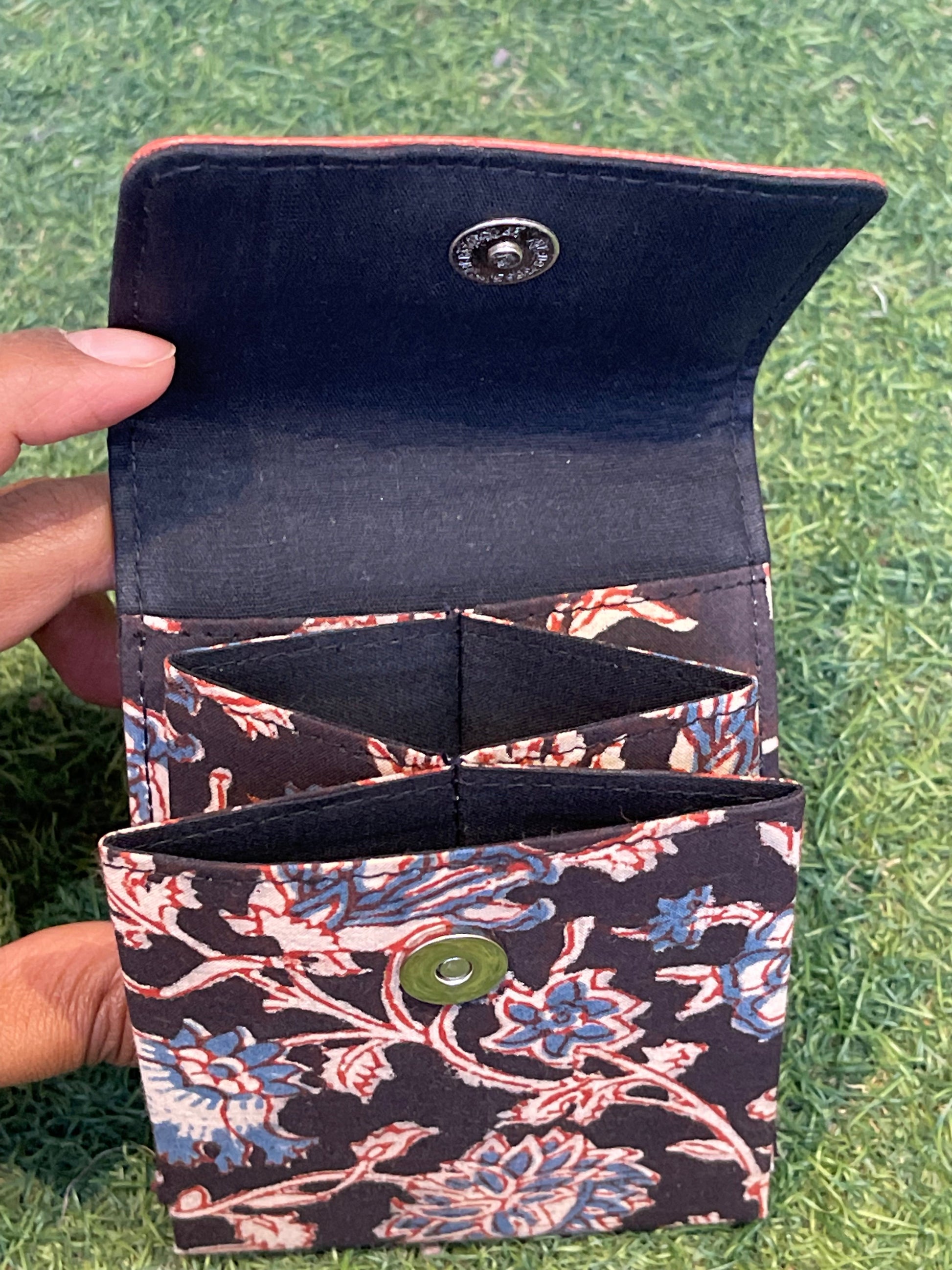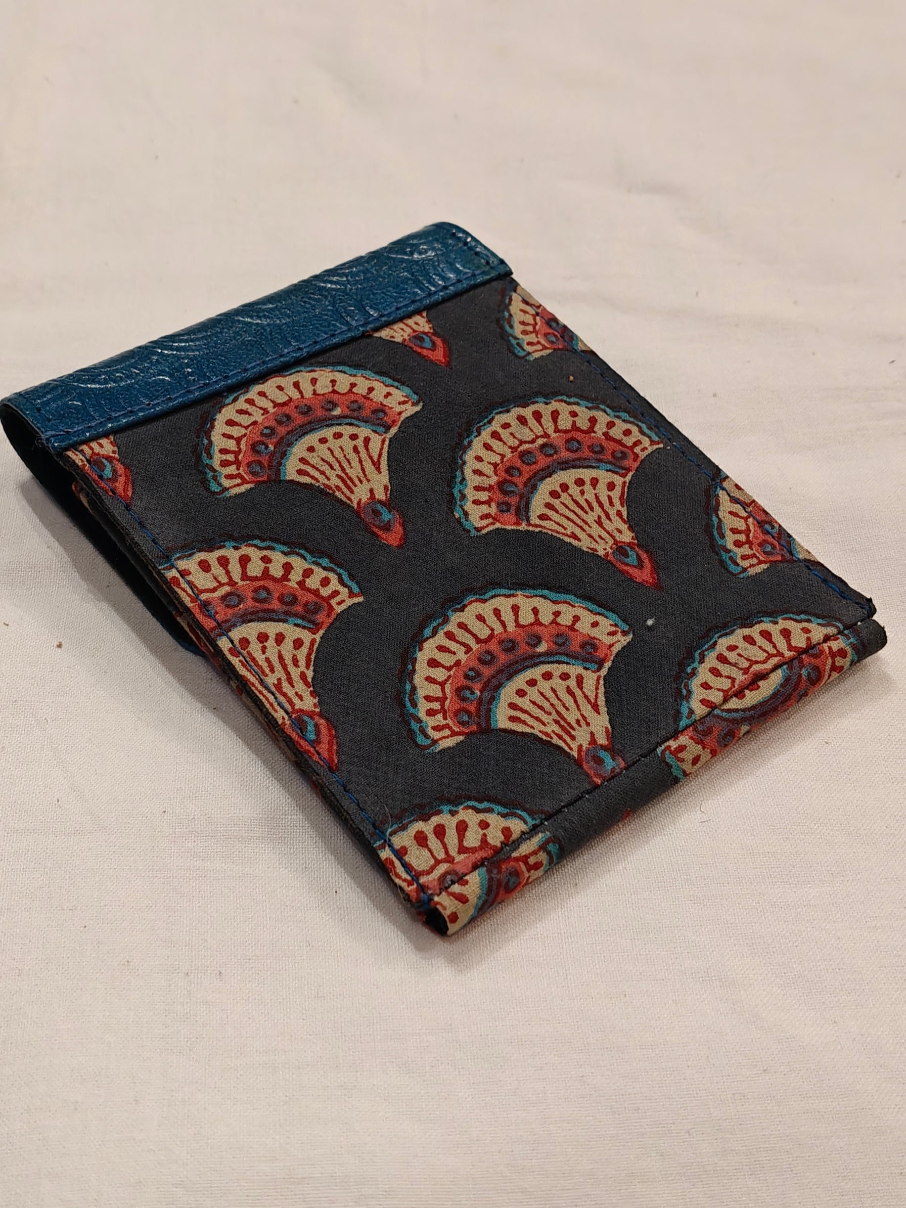 Cards and cash holder with 3 pockets - handcrafted fabrics and leather based