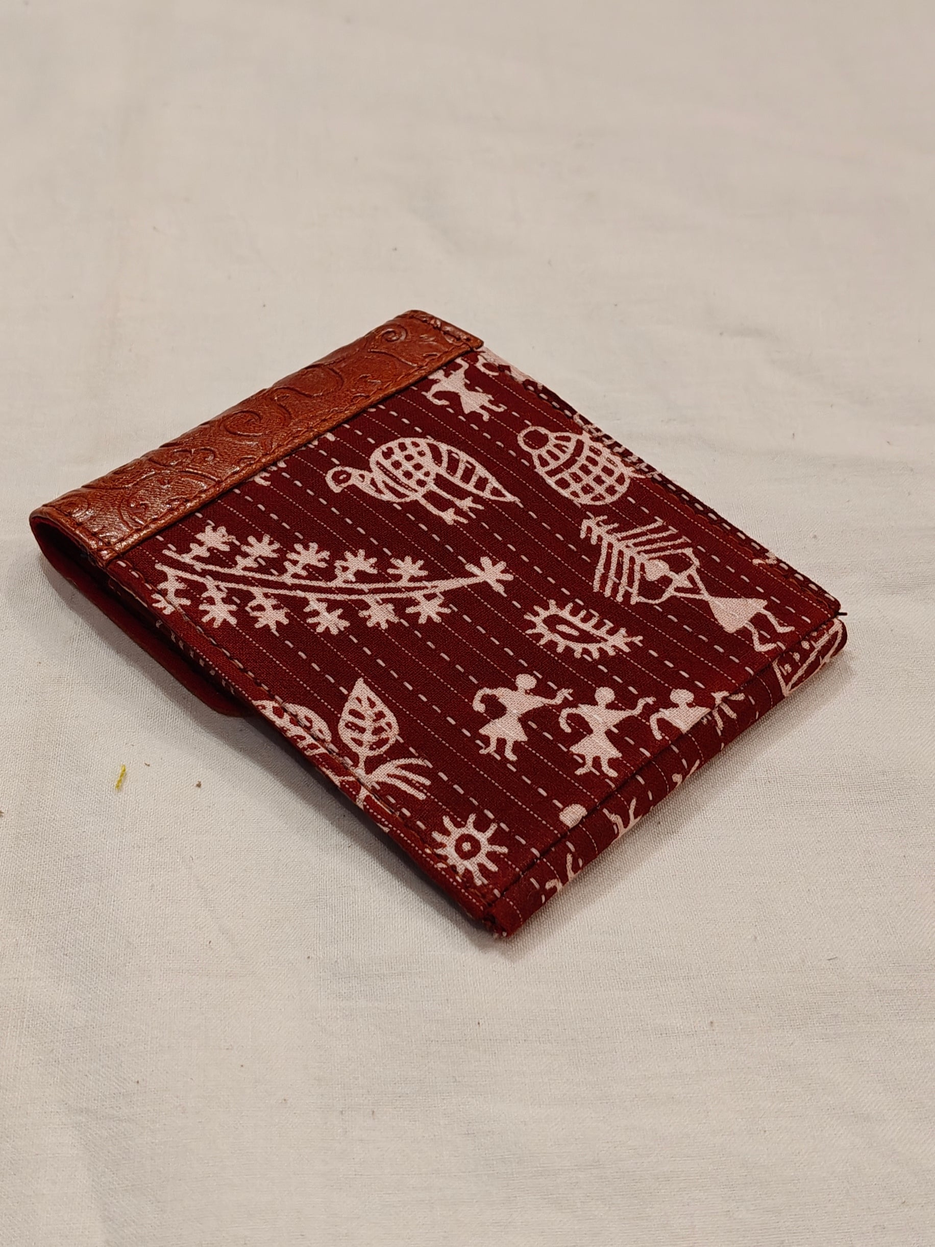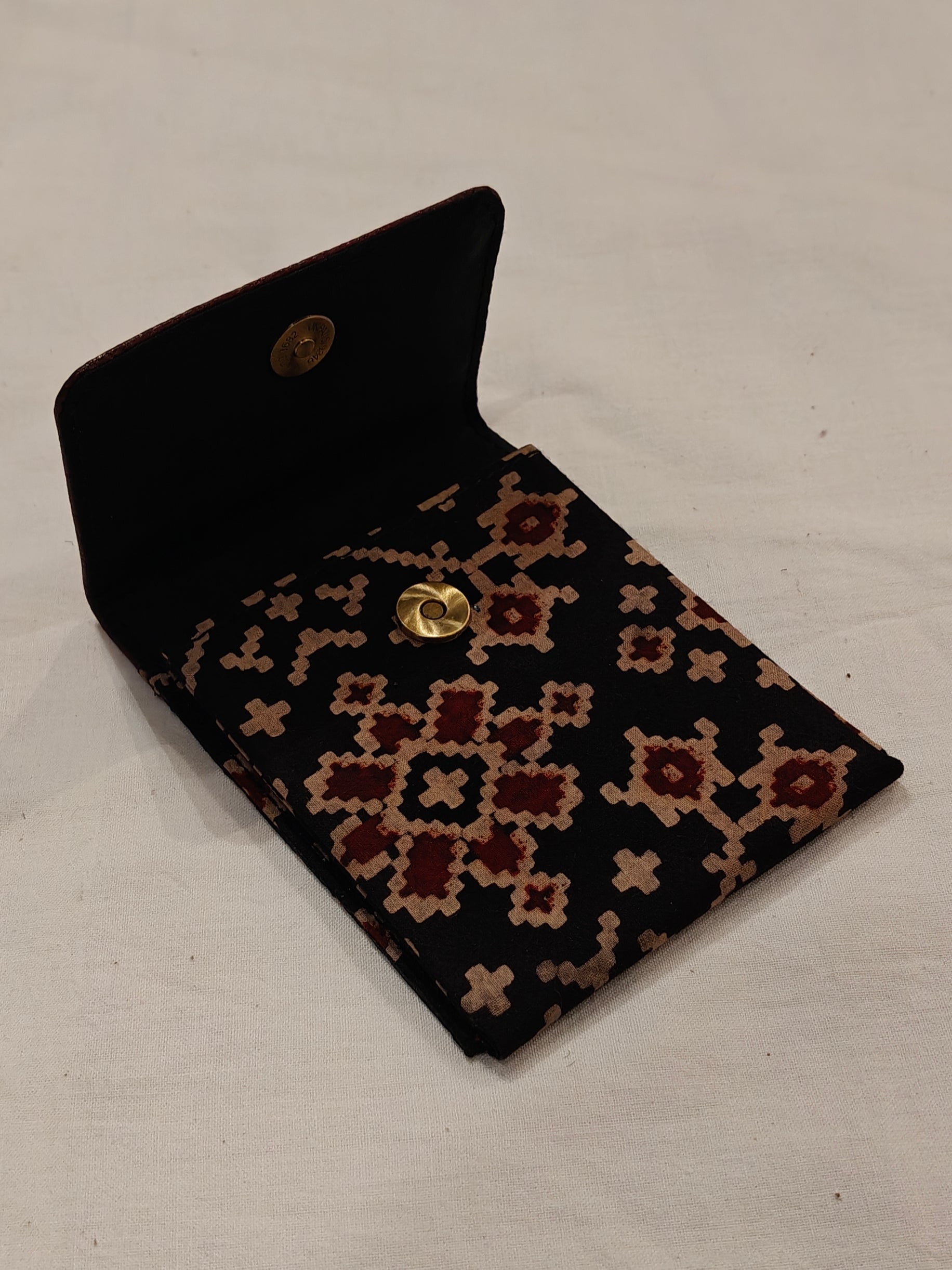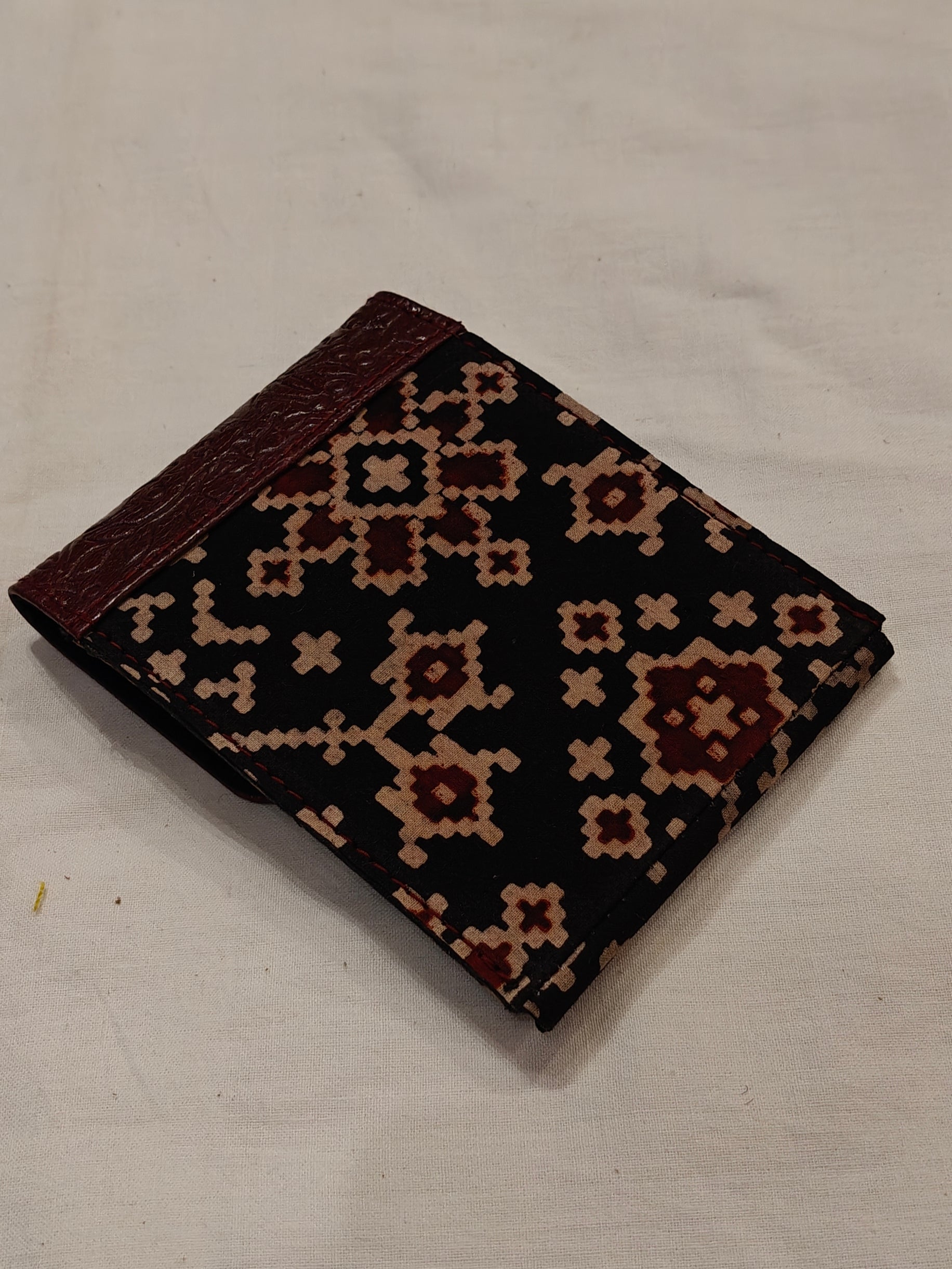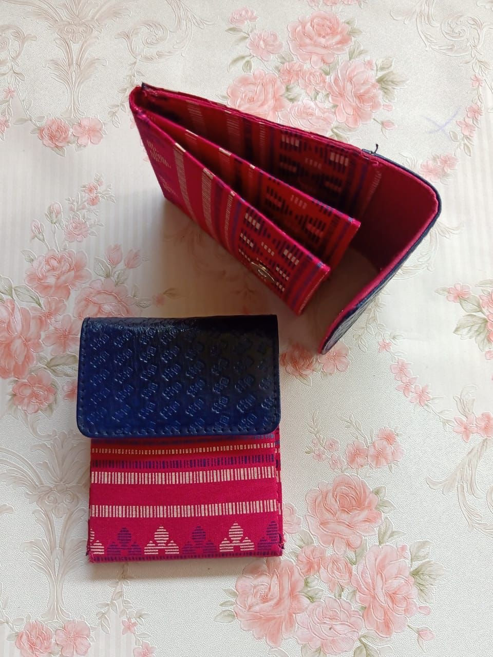 Cards and cash holder with 3 pockets - handcrafted fabrics and leather based