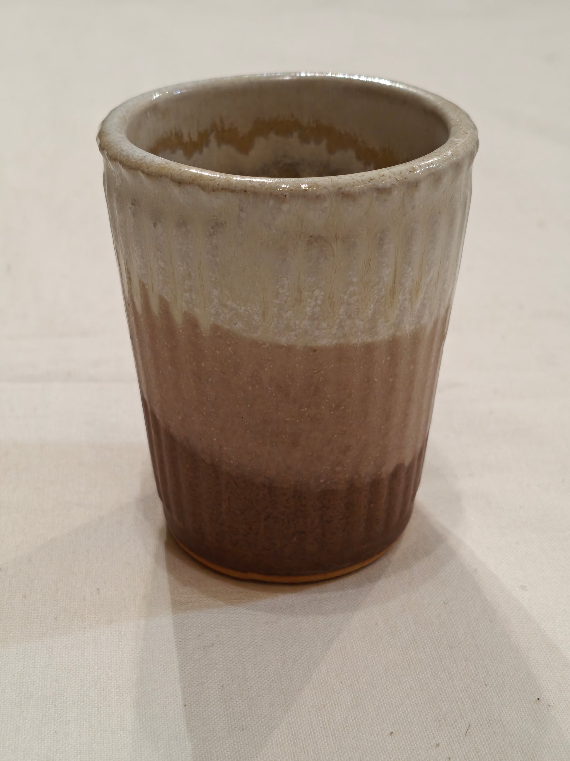 Ceramic white,cream and brown bands Handcrafted cutting chai tea tumbler