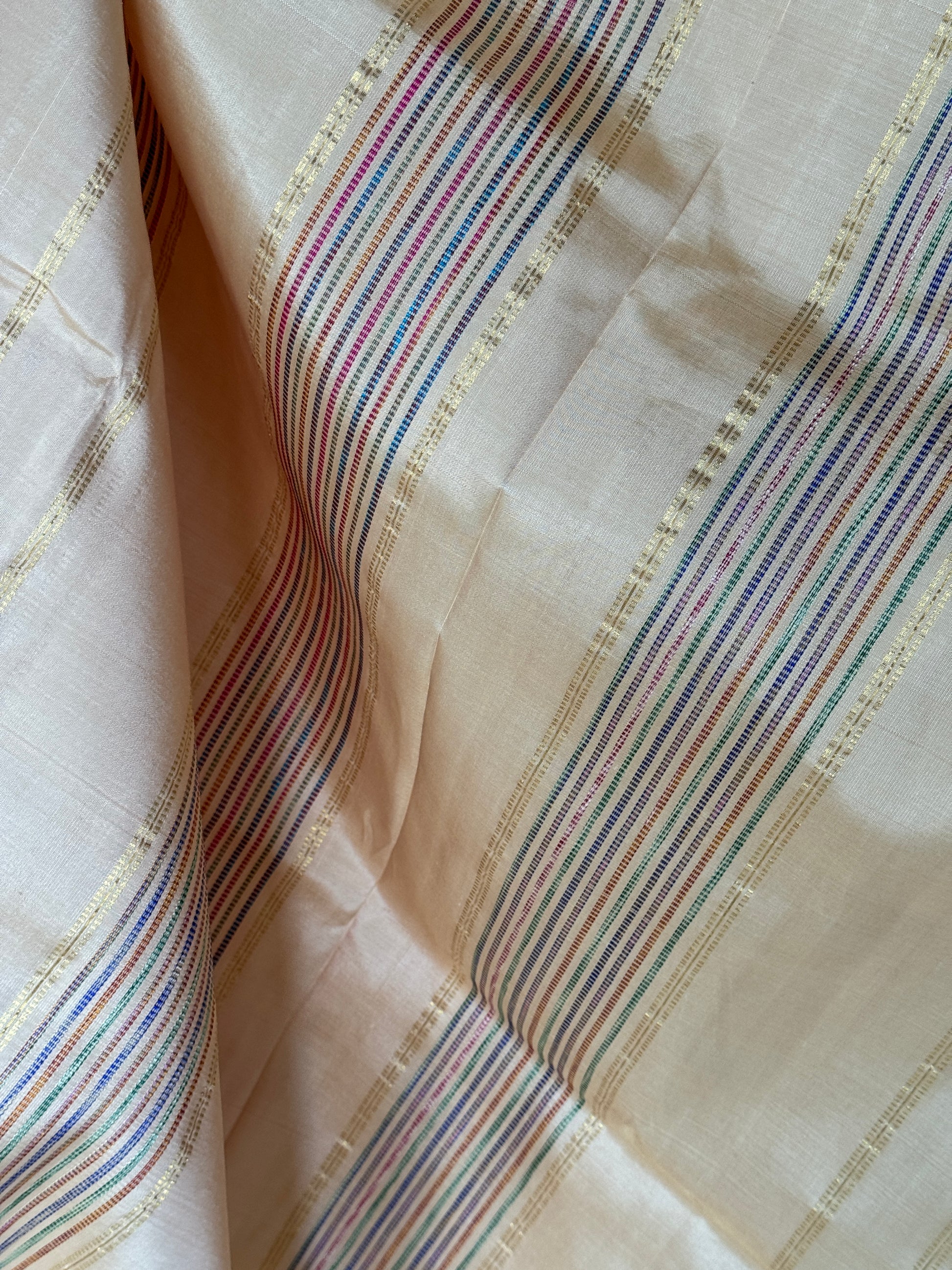 Classy cream pure silk handloom Kumbakonam pattu saree with colorful stripes palla
