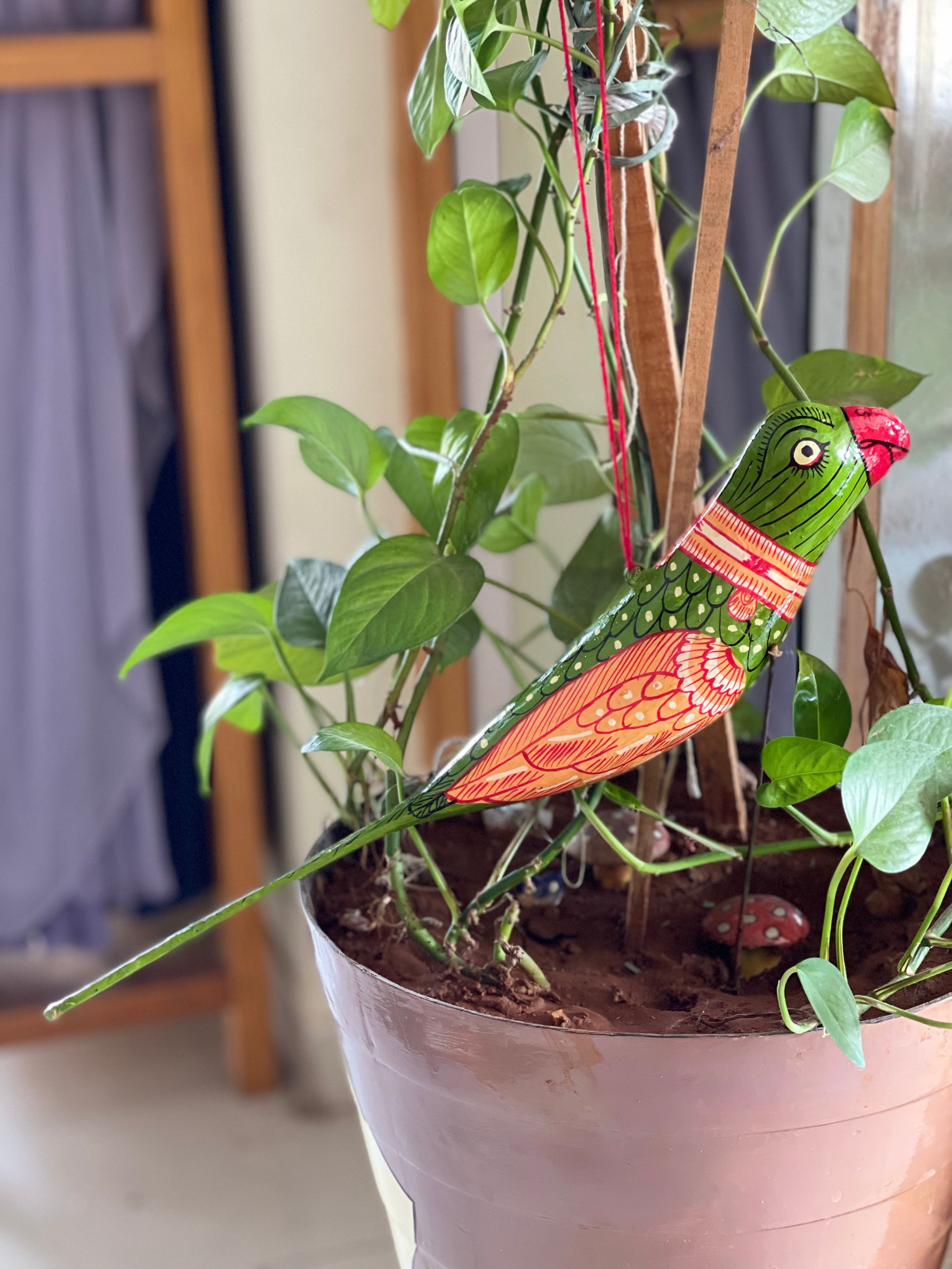 Colourful Papier mache patachitra hand painted bird hanging - big