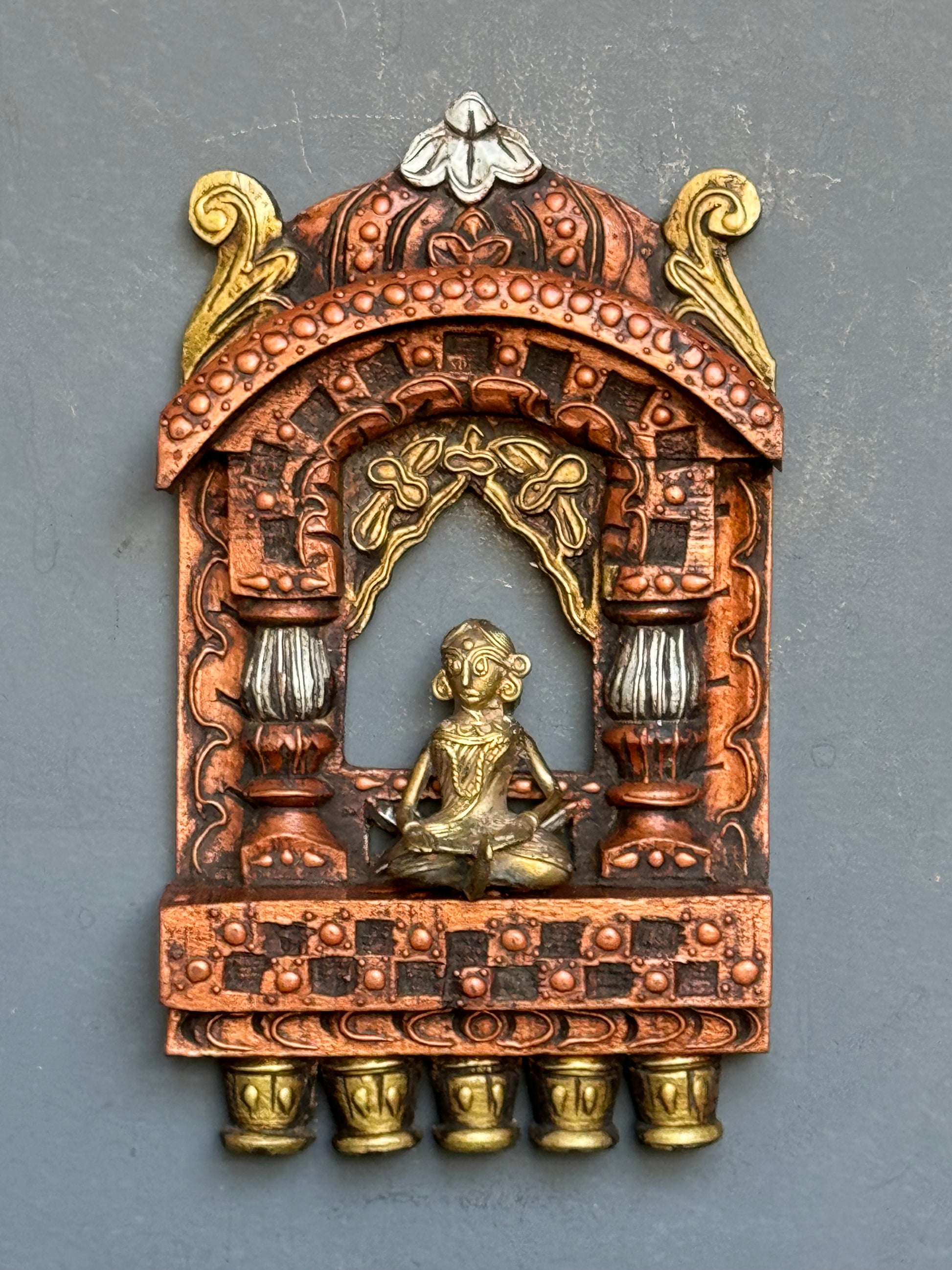 Copper, gold and silver tones Jharokha in wood - hand crafted wall decor