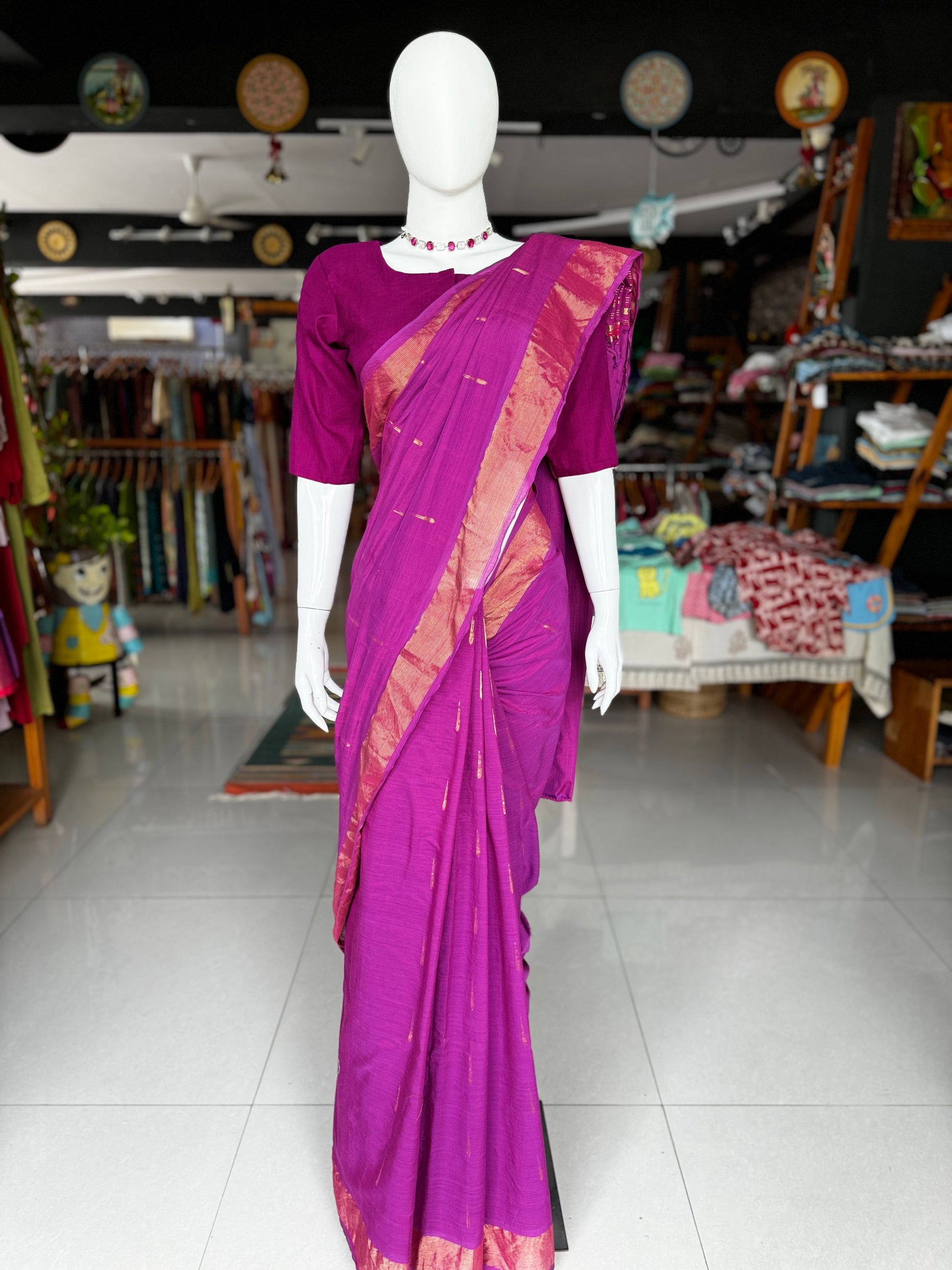 Comes with running blouse. Blouse shown in pic is not part of the saree.