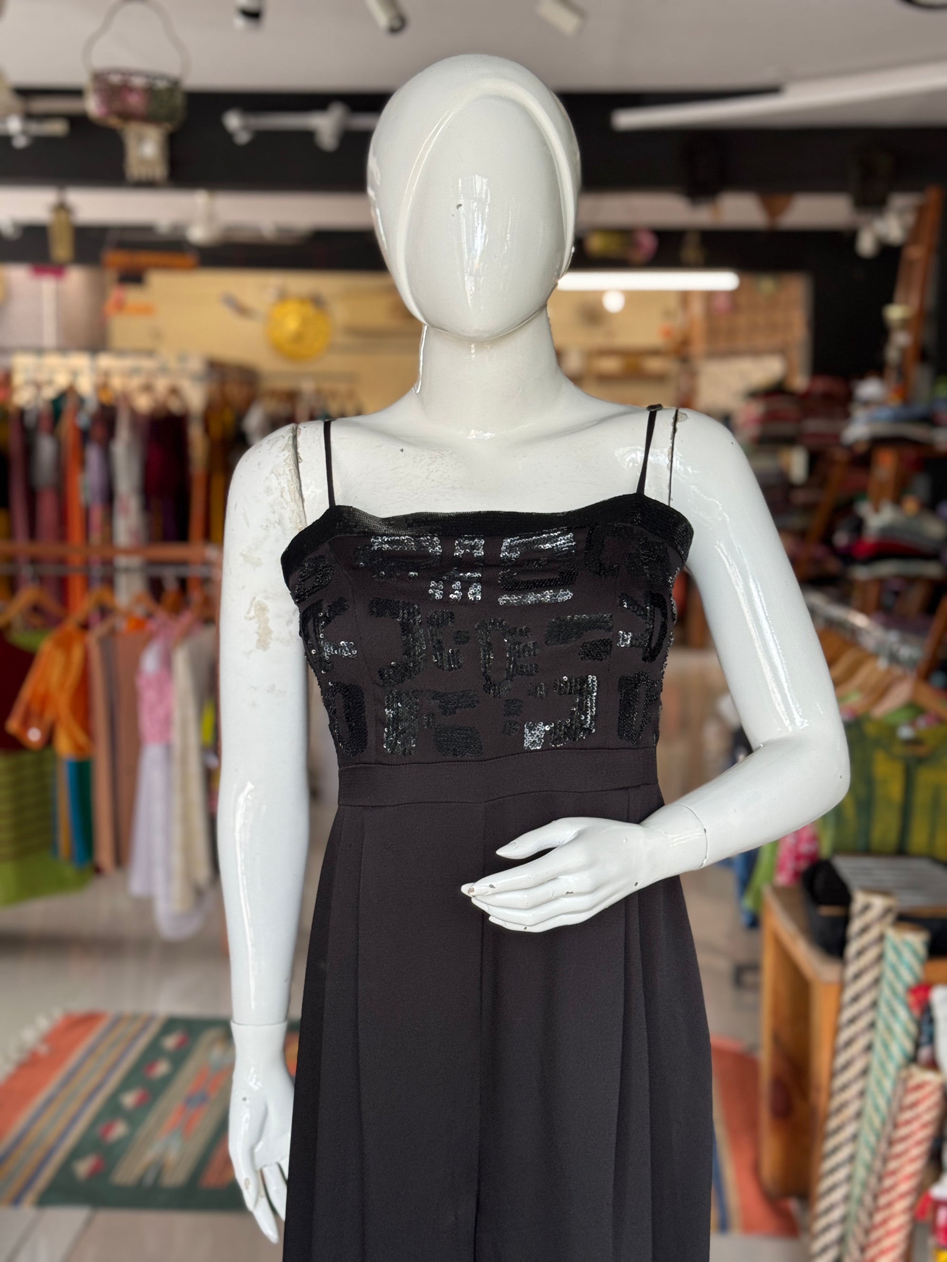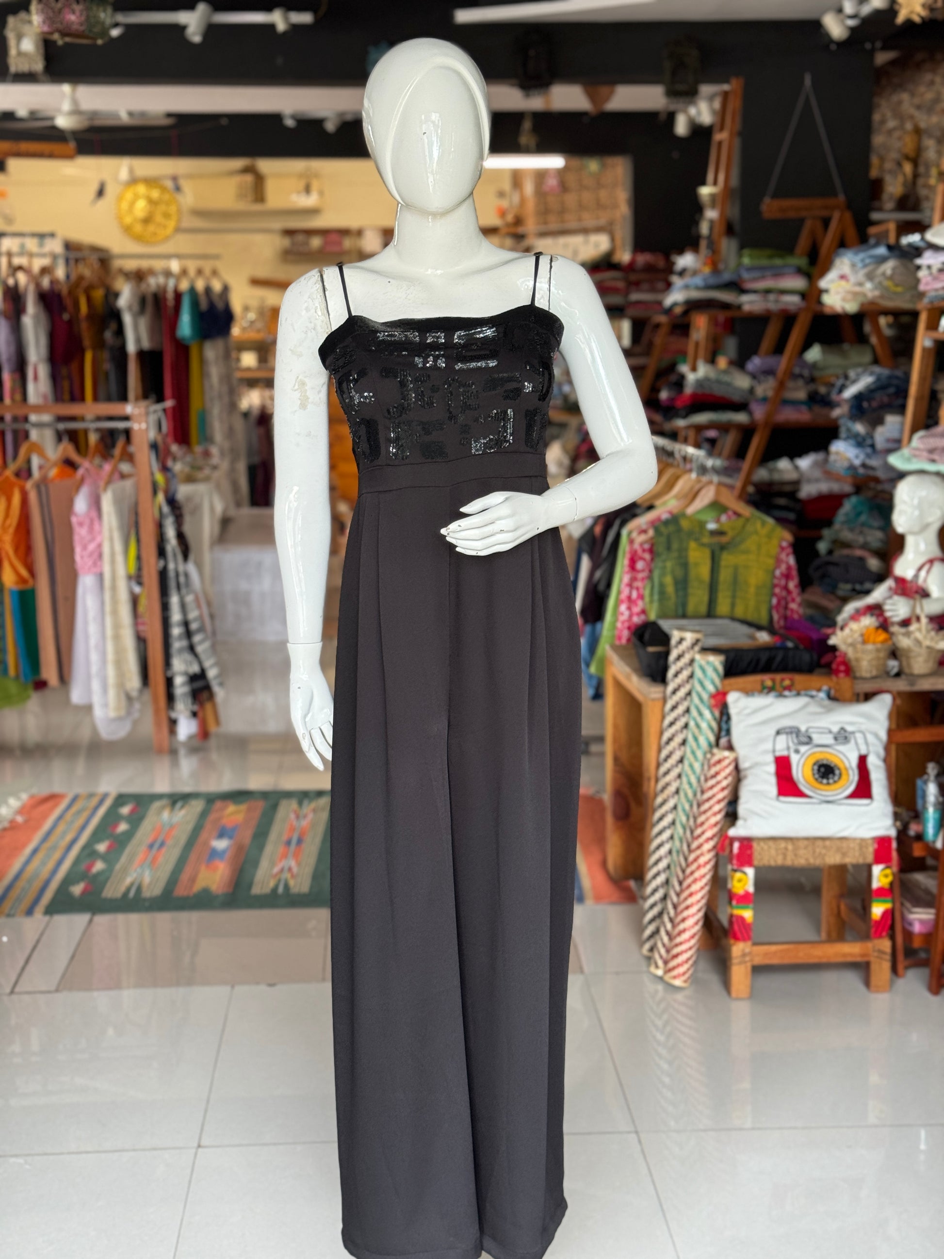 Crepe strappy jumpsuit with hand embellished yoke - color options available
