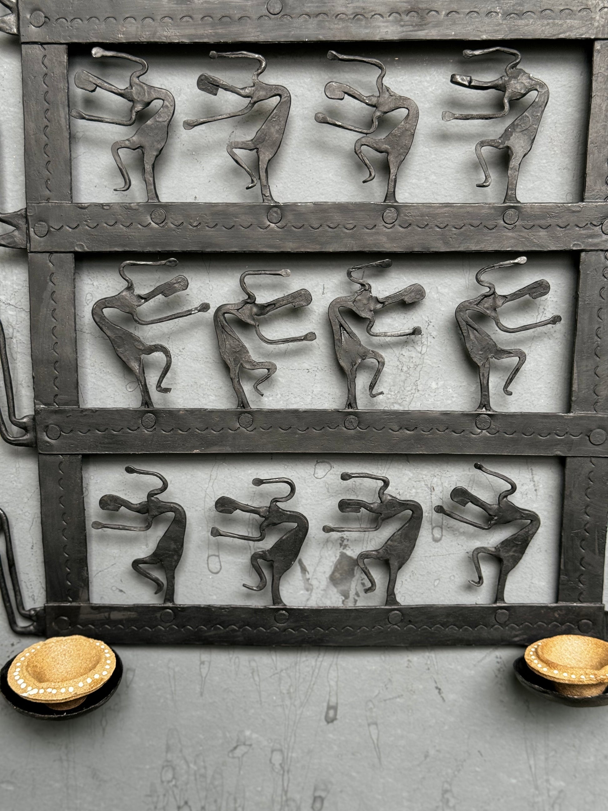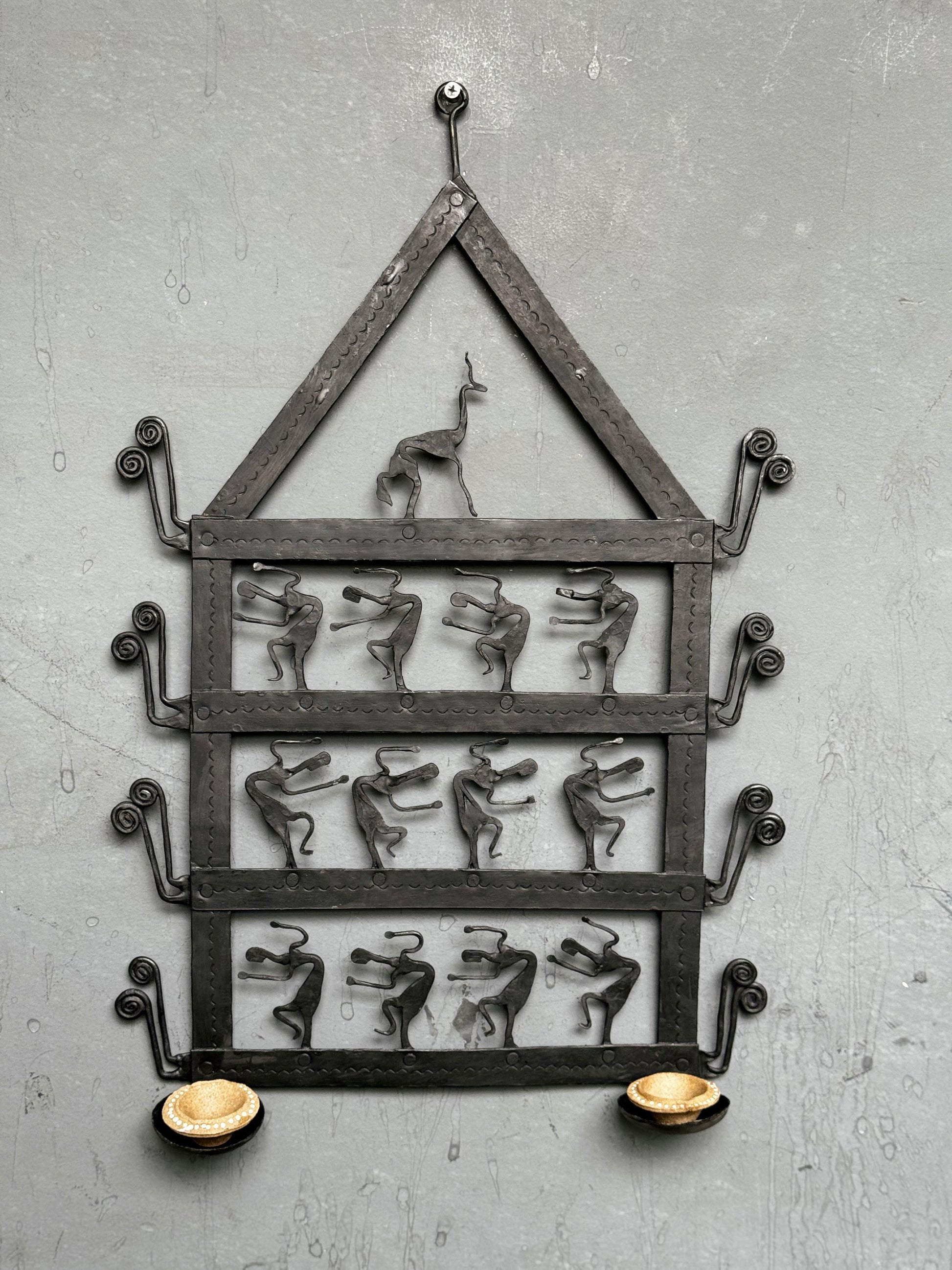 Dancing tribal design - double candle / diya holder - handcrafted wrought iron