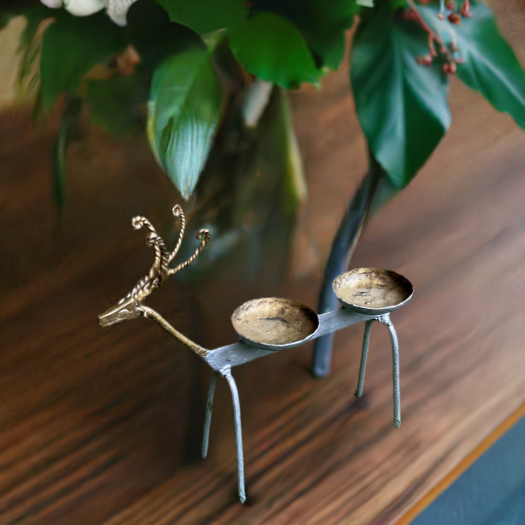Deer handcrafted wrought iron decor with 2 place holders