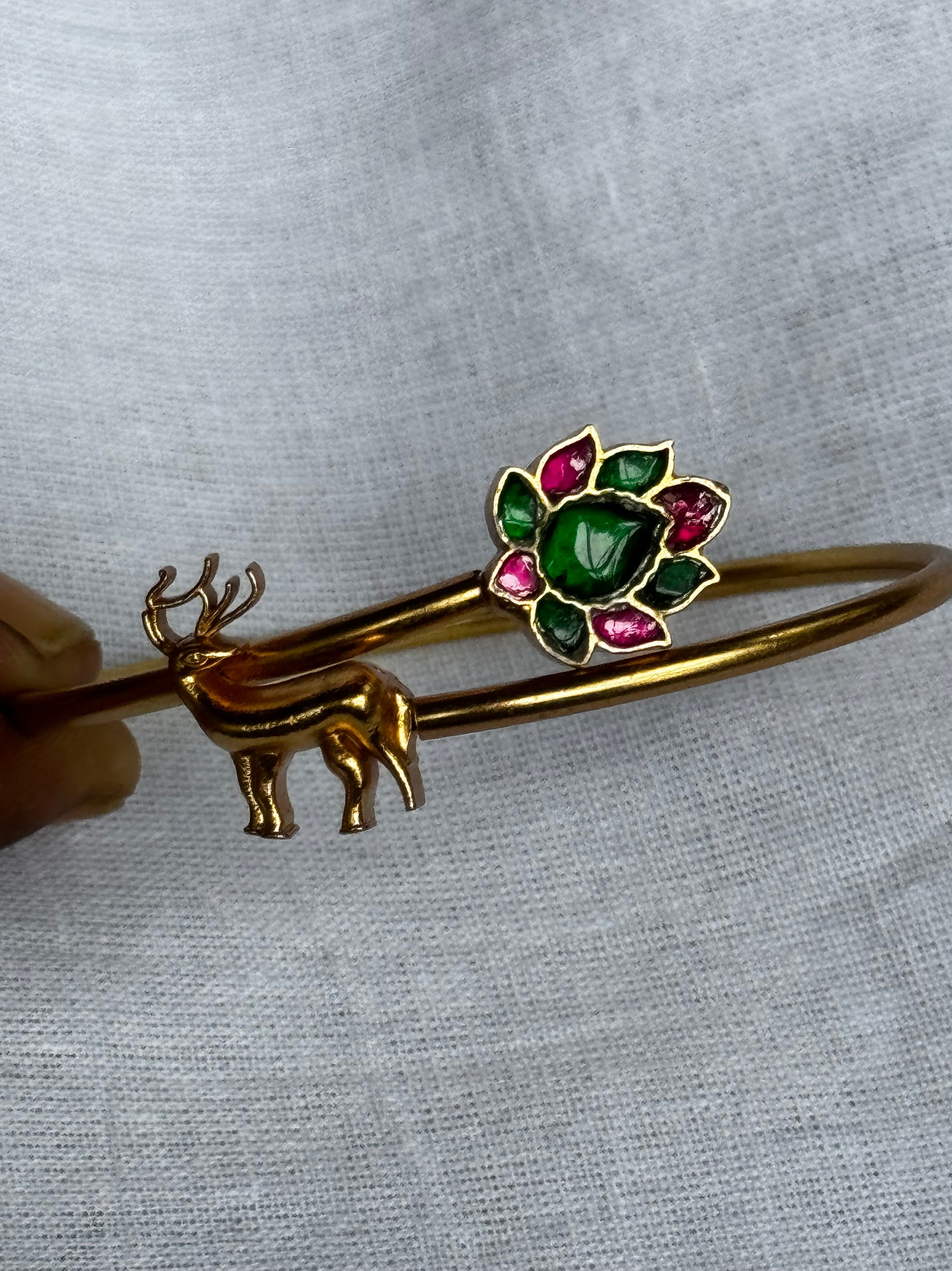 Deer with multi colored flower design sterling 92.5 silver adjustable size bracelet in gold polish