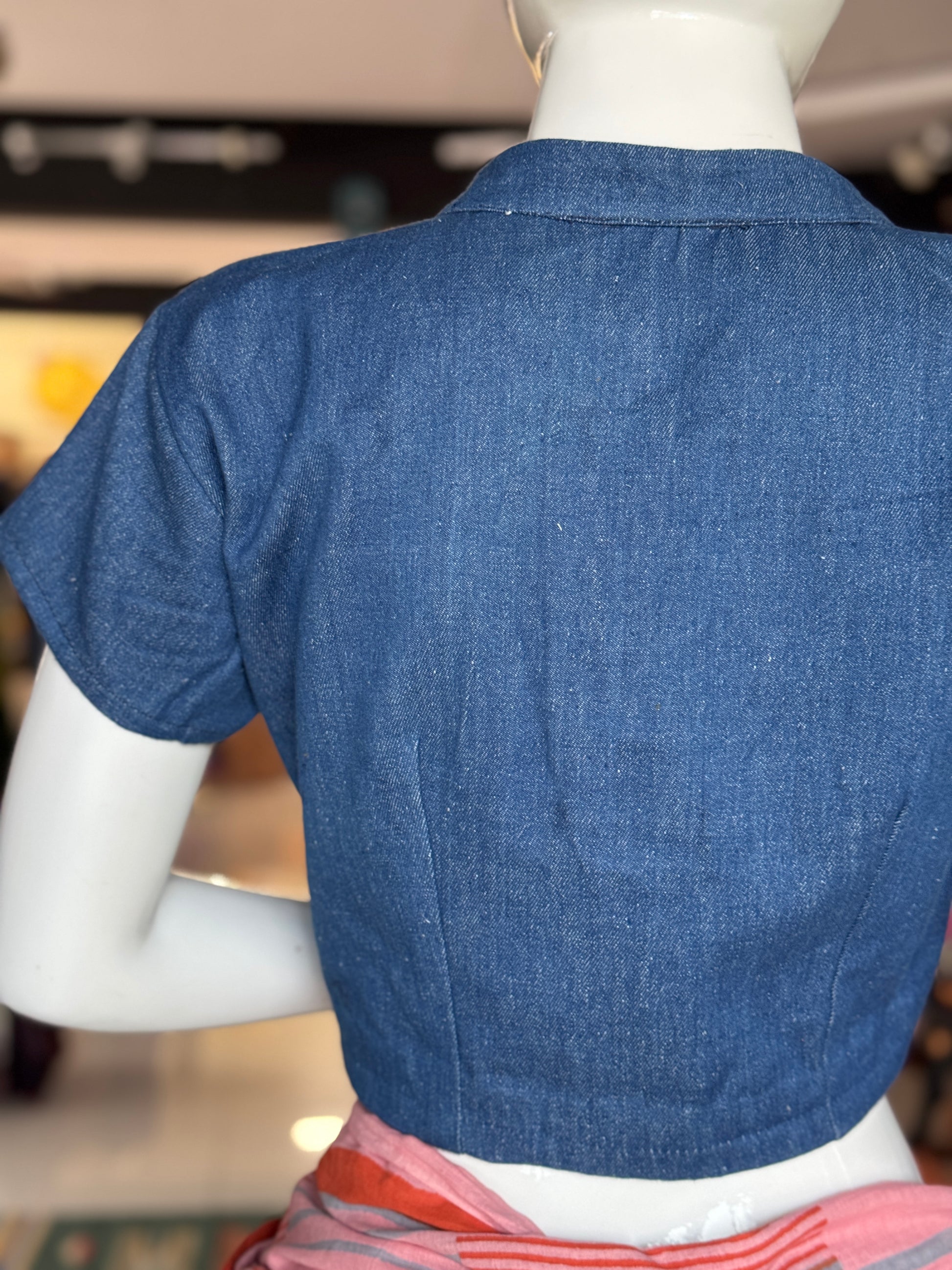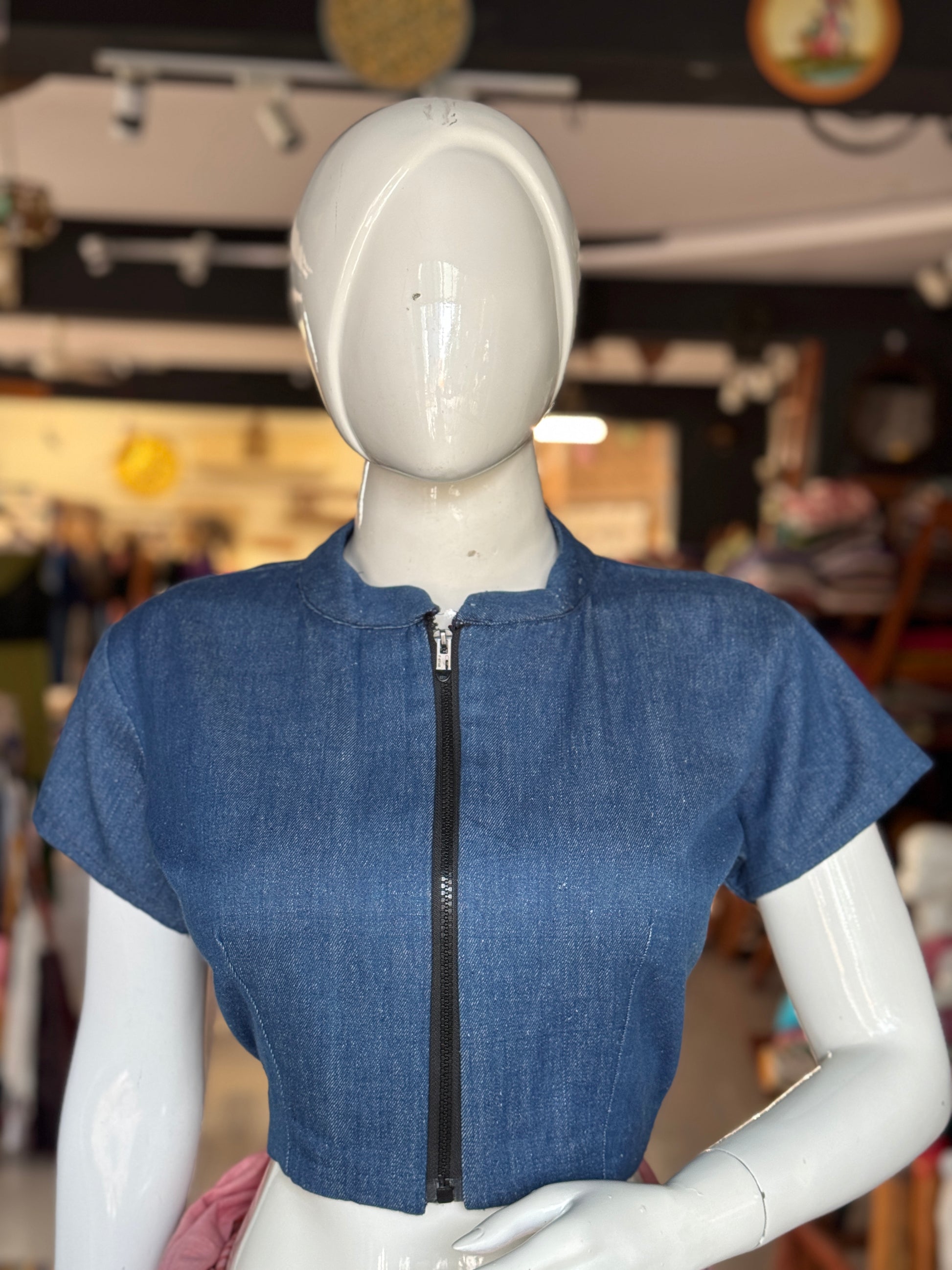 Denim jacket blouse - hand woven, natural dyed denim with zipper, wear it like a blouse, crop top or a jacket