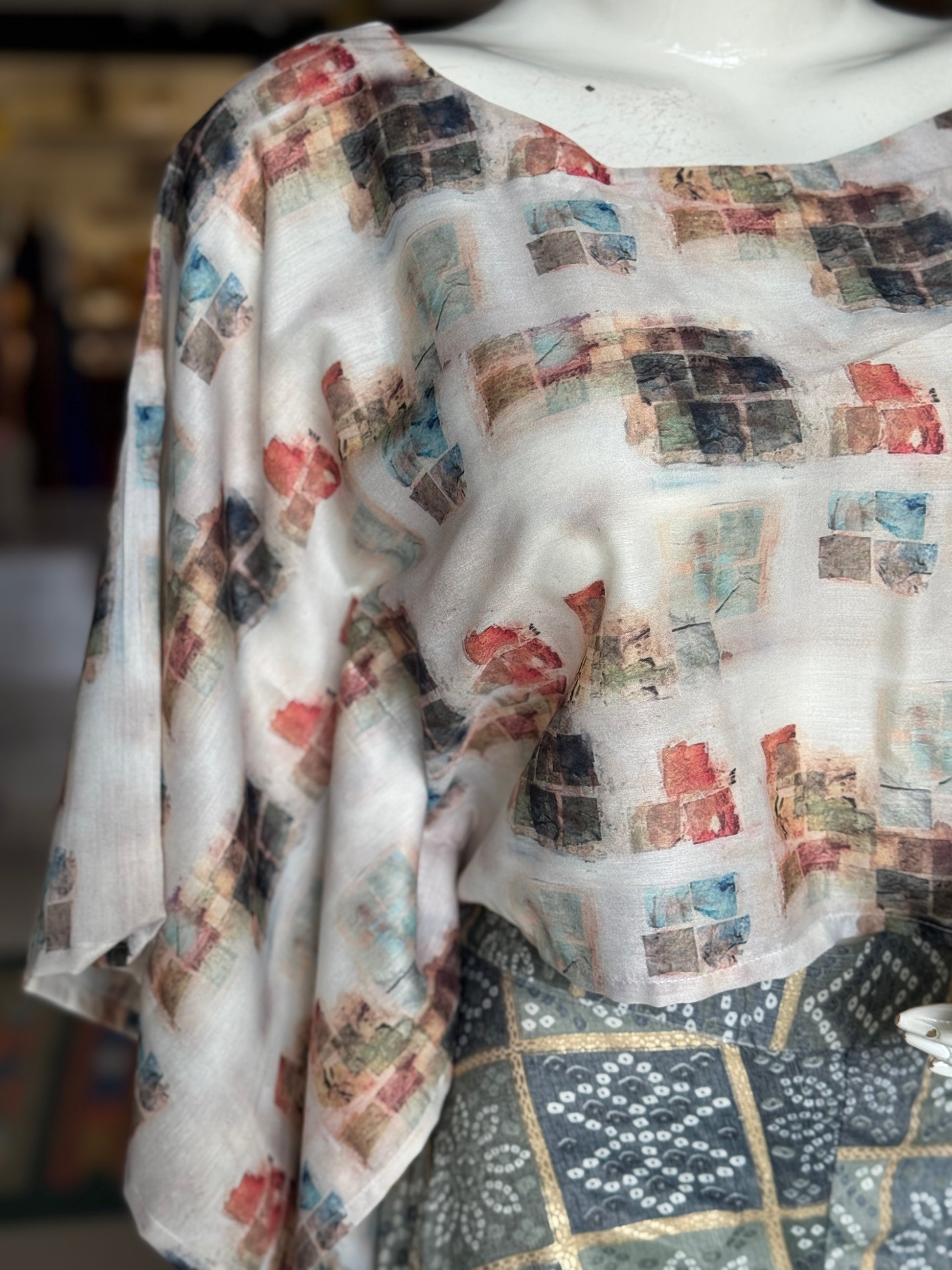 Digital printed geometric design mixed cotton kaftan crop top / blouse