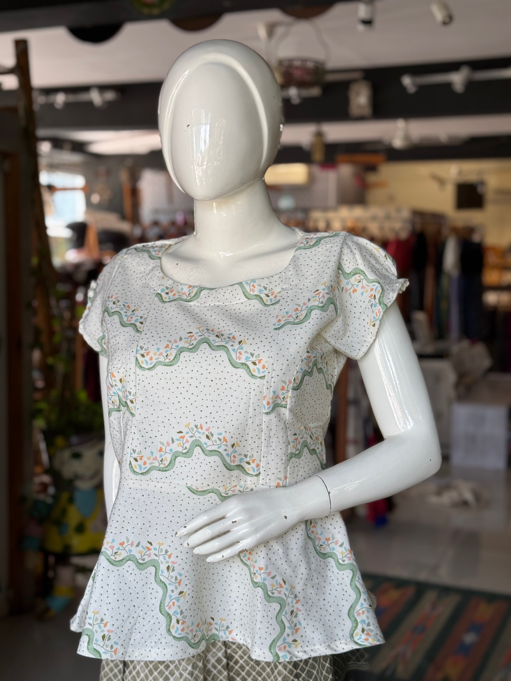 Dots n flowers handwoven digital printed cotton peplumtop