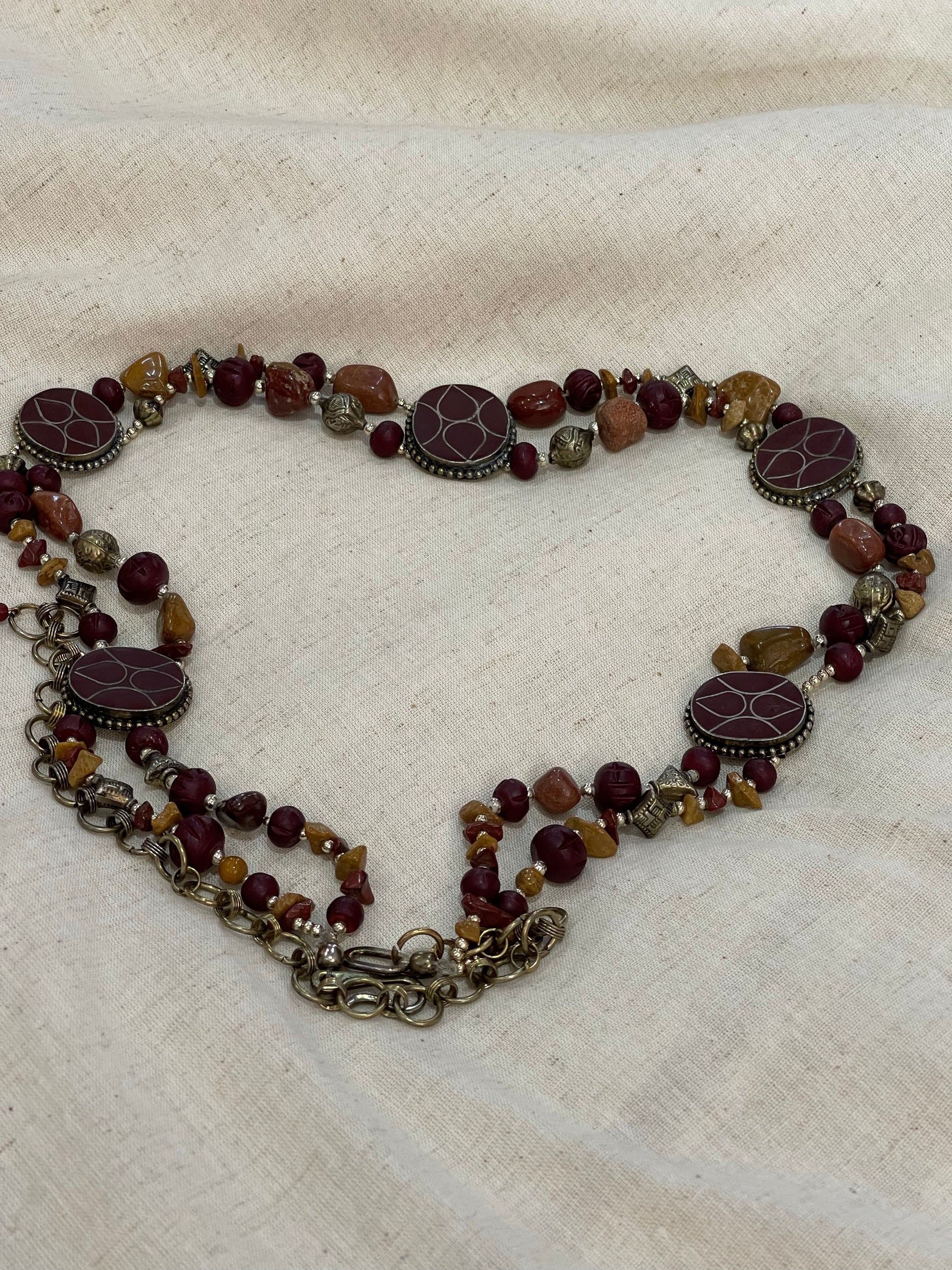 Double line brown beads n stone waist belt