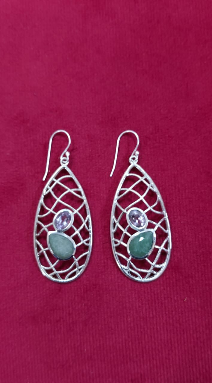 Drop shaped webbed hooks with semi precious stones in 92.5 sterling silver