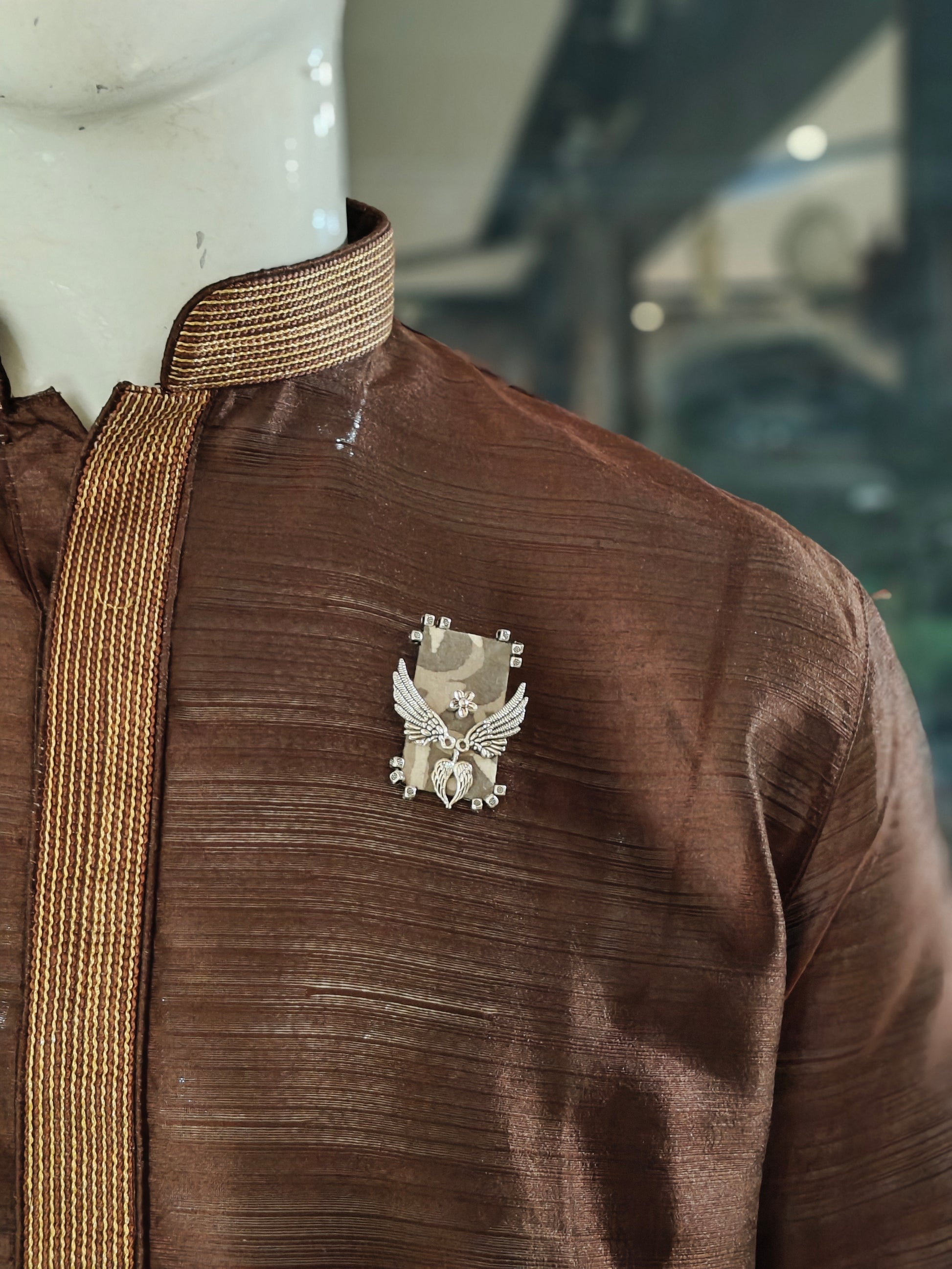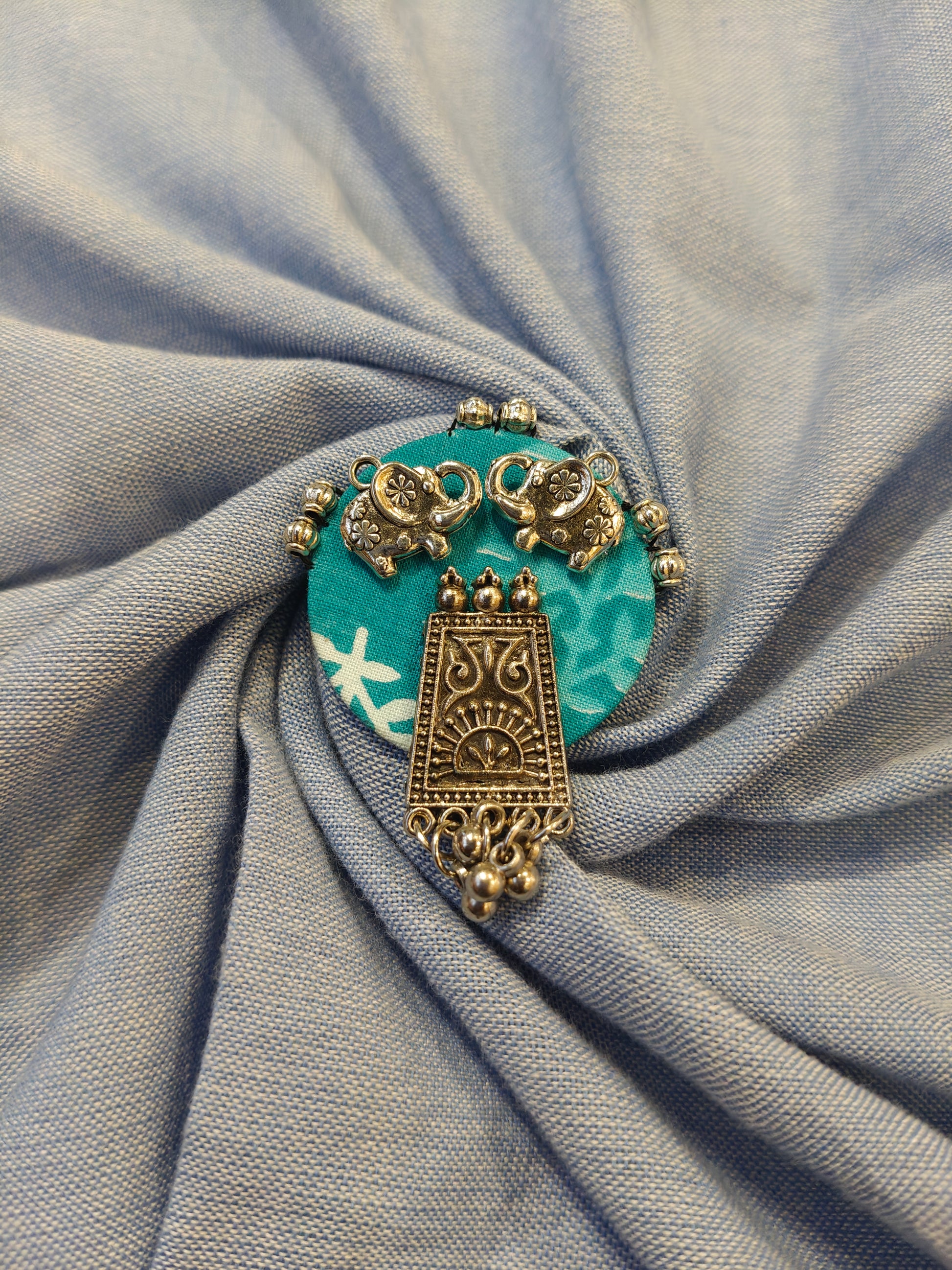 Elegant Ajrakh brooches with silver work - multiple colors and patterns