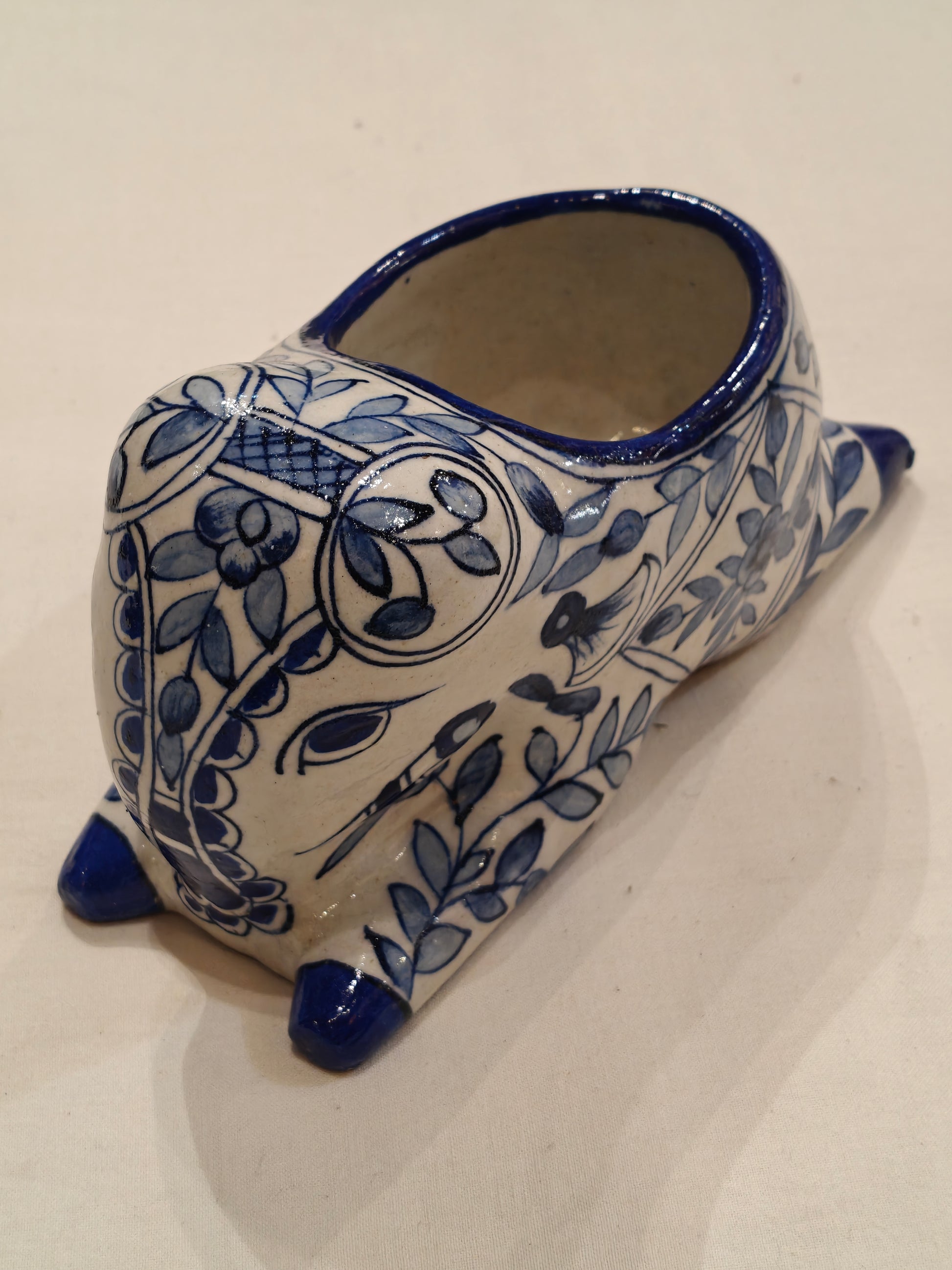 Elephant shaped White and blue color blue pottery handcrafted decorative planter / organizer
