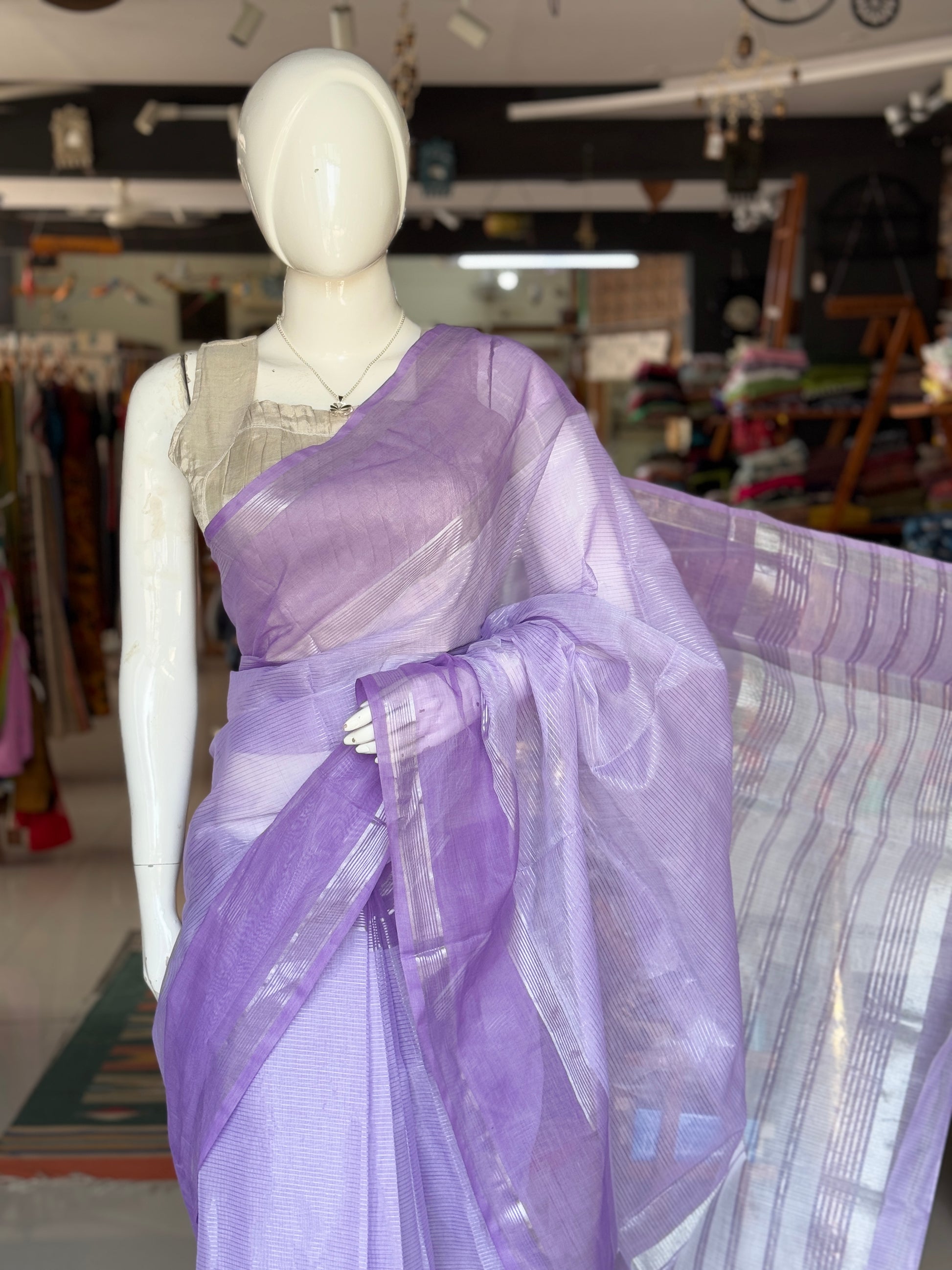 Fine silver stripes cotton Venkatagiri power loom saree