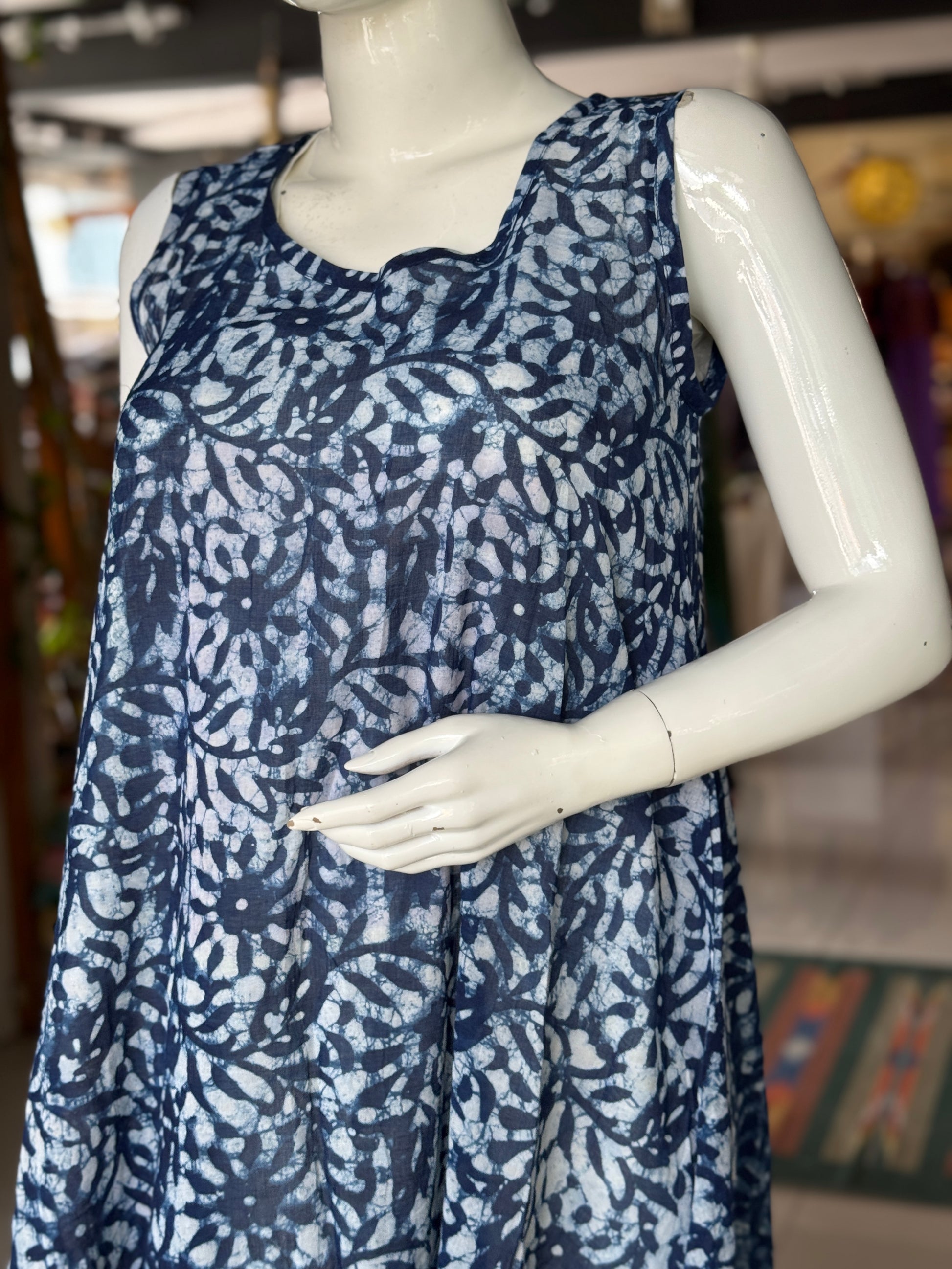 Indigo batik flowy soft hand block printed mul cotton sleeveless dress